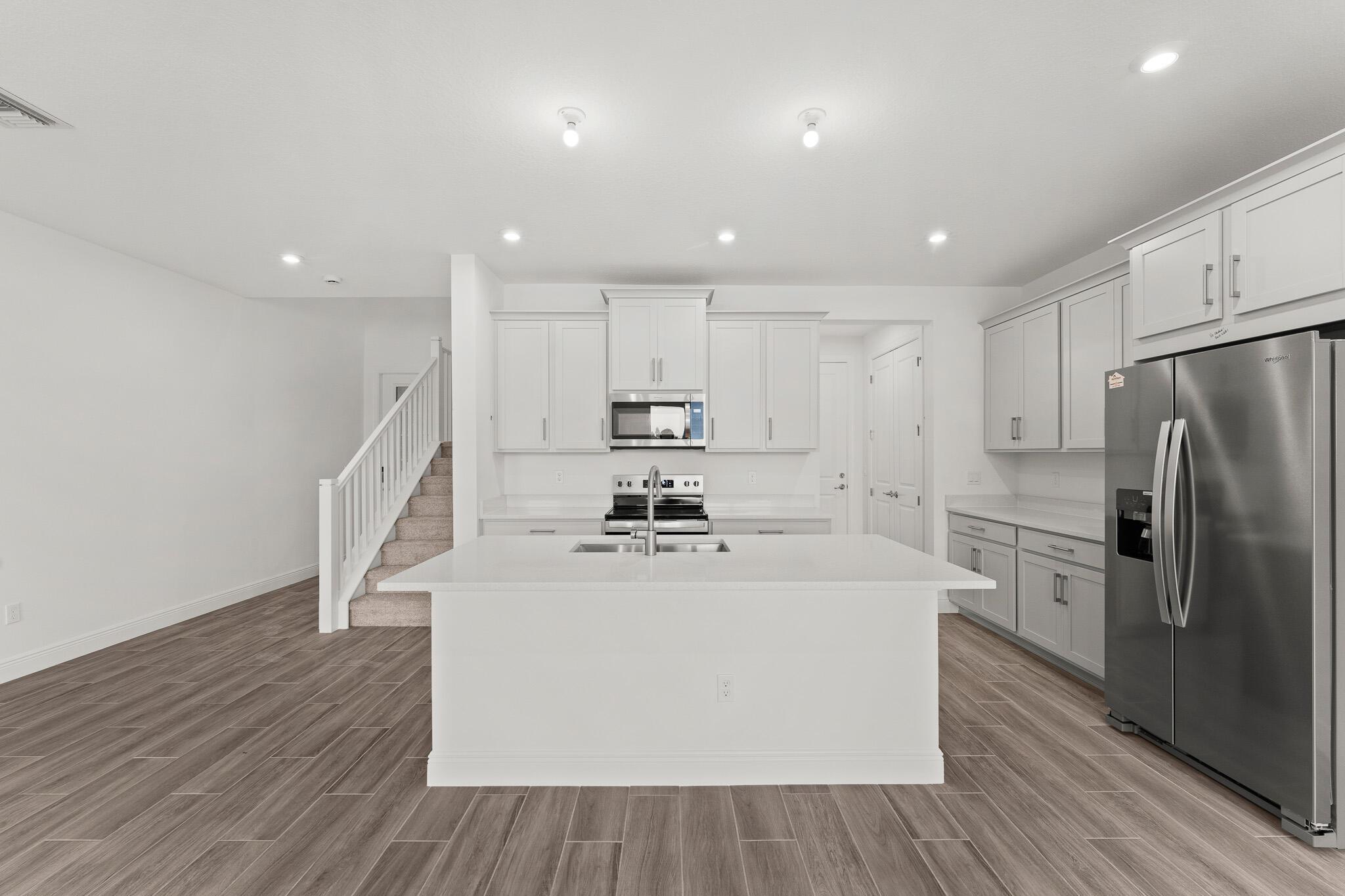 Step into the two story foyer of this exquisite 1,865 sq ft townhome and you are greeted by spacious comfort. As you make your way through the ground floor you will notice the open living space of the great room/dining area and kitchen. Perfect for entertaining or sneaking a peek at the sparking lake outside, the location of the kitchen island lends itself to a great vantage point while cooking. Upstairs, you will find a loft, situated in between the generously sized owner's suite and bath with double vanity, large walk in shower, and oversized walk in closet. Just down the hall you will find the two secondary bedrooms in addition to the second full bath. Overall, this 3 bedroom and 2.5 bathroom home will fit your families needs for years to come.