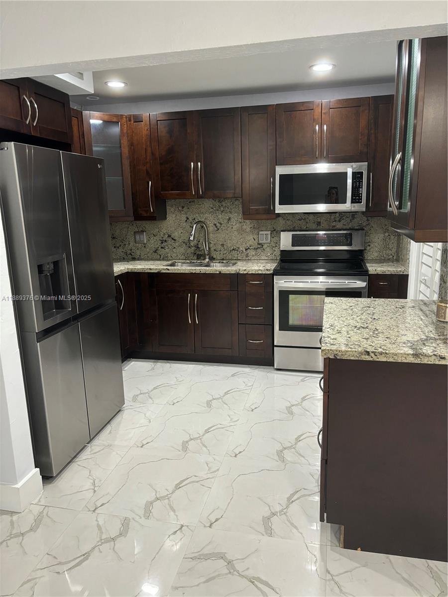 Rarely available 1st FLOOR CORNER UNIT located in the Great & Quiet ROYALE GREEN CONDO. Completely Remodeled with porcelain white Carrara floors in the main areas & ceramic title floors in the bedrooms. Nice Updated Kitchen with customs wood cabinets, granite stone countertops & backsplash plus new Saintless steel appliances. New AC. Shutters for the Inssurance discounts. Separate Laundry room with washer/dryer. All of the 3 bedrooms with a nice size closet are perfect for a family! Prime Location just minutes from the expressway and near to Top Rated Schools, FIU and restaurants, plazas! This Condo has a refreshing pool, Low HOA that covers Roof and exterior areas. It does have a 3 years renting restrictions & 25% down is needed. Text me for showings! It won't last long!