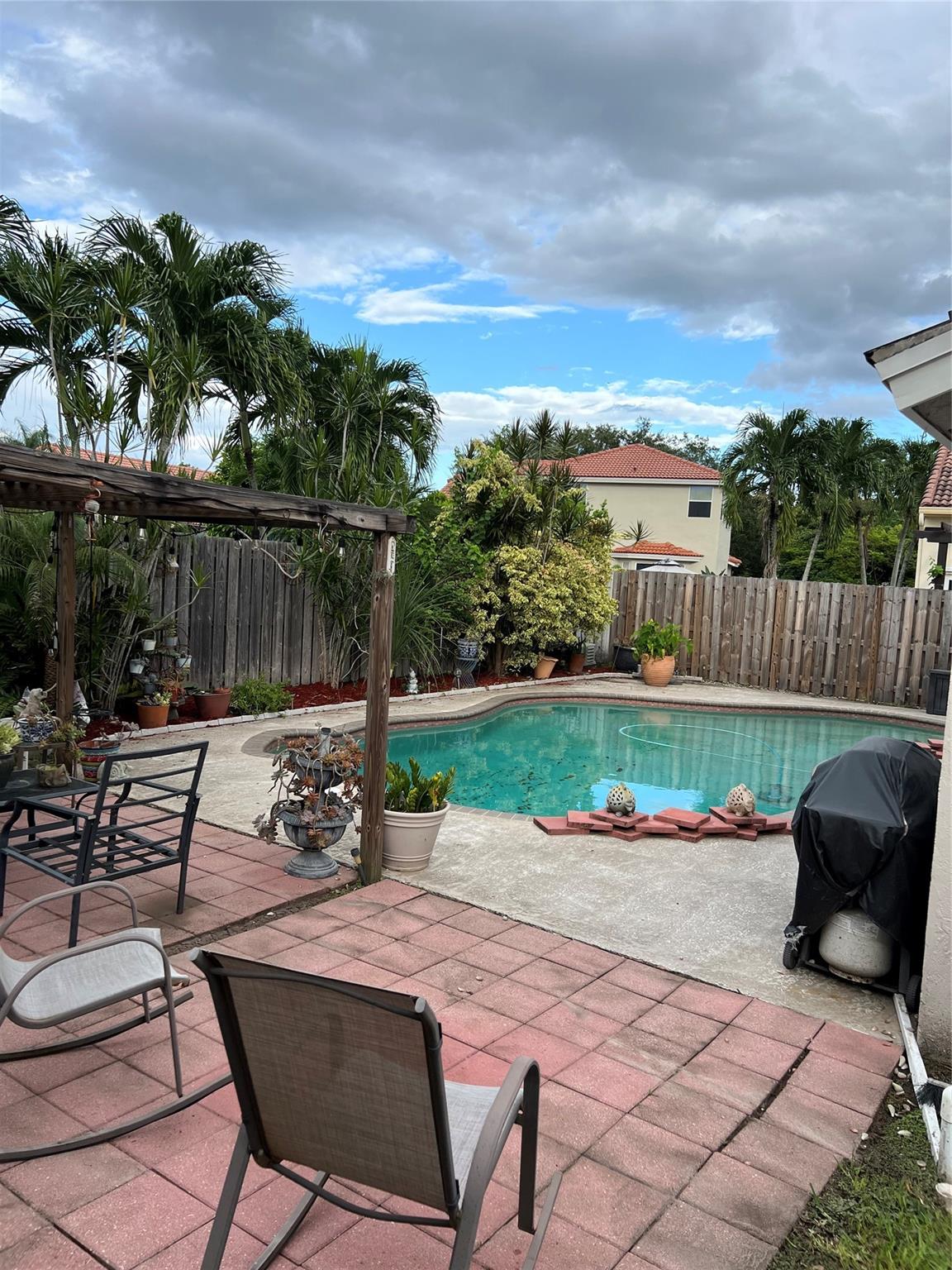 Osprey North Sawgrass Mills development. Easy to be 5th bedroom. Option for 5th bedroom upstairs loft area now is TV office area has opening for closet just needs the doors /one wall it was a Builder option when purchased. Master bedroom upstairs with lg walk in closet. One bedroom downstairs. Private back yard with Large Open freeform pool. Spacious Sitting covered area Pergola covered for entertaining outside. Wood cabinets, Black stainless, & Granite kit w/built in wine Frig. Tile floors. ONE OWNER HOME. Move in ready. Near Great Schools, Sawgrass Mills shopping Mall, Major highways, Low HOA $200 per month covers lawn & community maintenance. (some furniture for sale) Home alarm system. Accordion shutters upstairs & panels downstairs. Extra cabinets for storage in garage.