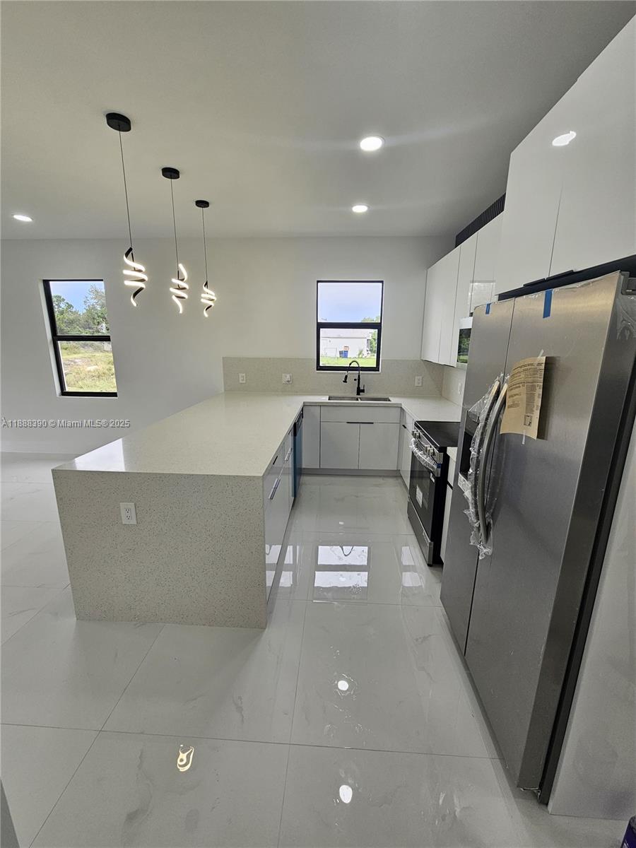New Construction Home truly a must see ! Seller will contribute to closing cost !!! READY to MOVE IN. Beautiful 3 bedroom 2 bathroom home, located in a fast growing area in Lehigh Acres with canal. This home has an OPEN floor plan, porcelain tile floors throughout the entire home, stainless steel appliances, Impact window and doors. Beautiful white cabinets and QUARTZ counter tops. Schedule your showing today and come see this beautiful home!