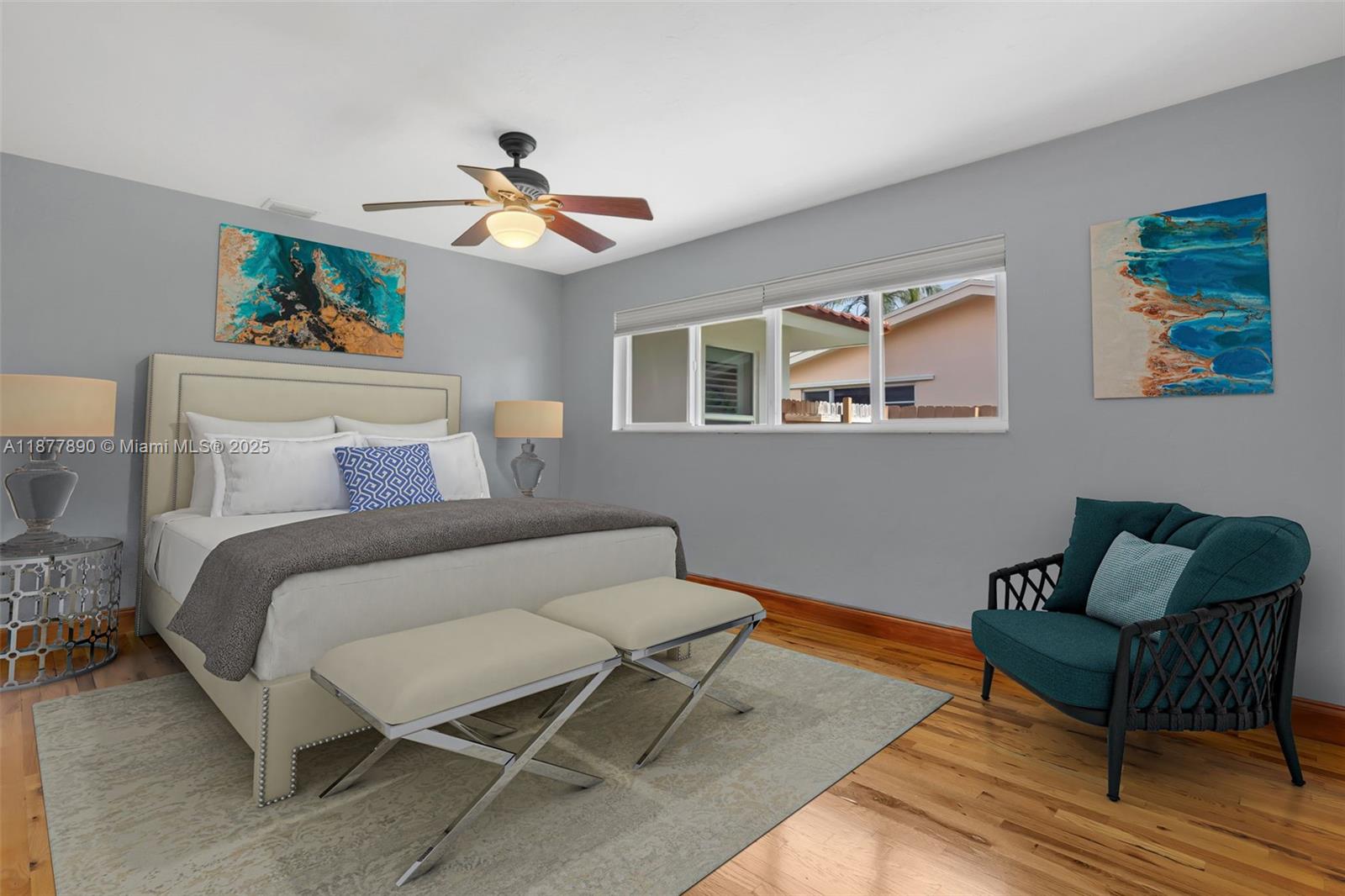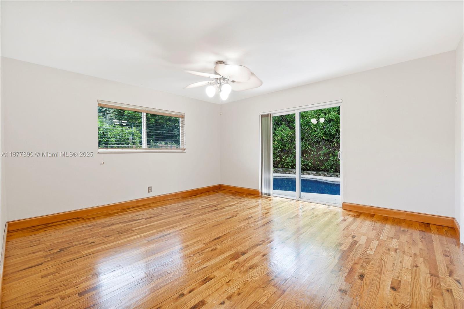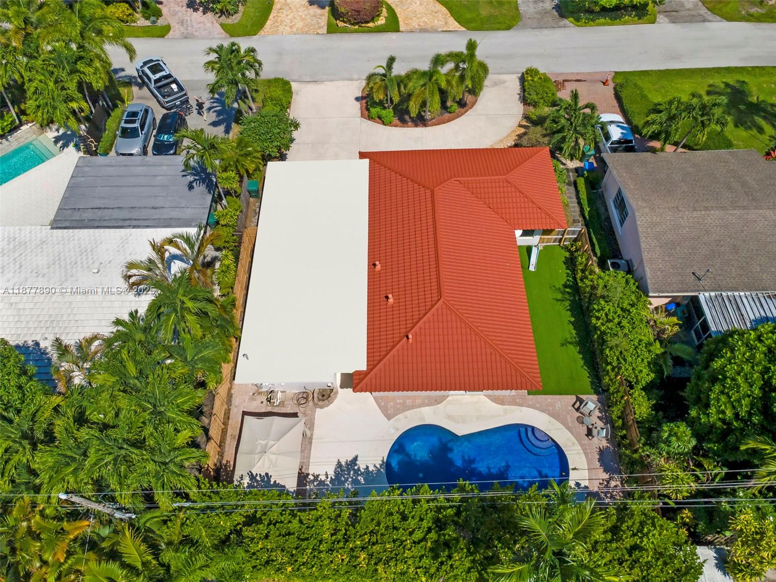 All about LOCATION! This large 3-bedroom (OVER 2000 SQFT), 3-bathroom home features spacious split bedrooms and a large dream kitchen with butler's pantry. Redwood flooring throughout and an open-concept design create spectacular living space. The large backyard is your private resort featuring a fully tiled, heated saltwater pool and large grassy area with cabana. Recent major updates include new metal roof (2021), new A/C (2020), and $30,000 whole-house gas-piped GENERAC generator. Additional premium features include impact hurricane-rated windows and doors, tankless water heater, 2-zone AC, and fully insulated attic. This move-in ready home combines luxury amenities with energy efficiency and storm protection. Motivated seller has already relocated north. Furniture photoshopped!
