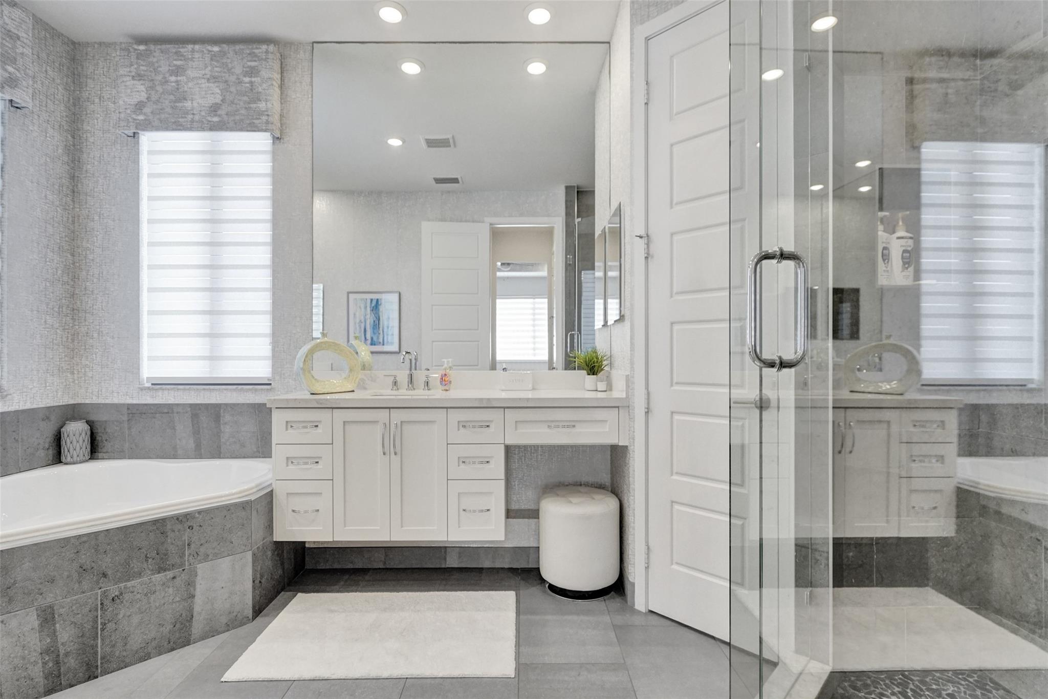 • Característica Interior:BedroomOnMainLevel, BreakfastArea, DualSinks, EatInKitchen, FirstFloorEntry, KitchenIsland, LivingDiningRoom, CustomMirrors, SeparateShower, UpperLevelPrimary, VaultedCeilings, WalkInClosets
