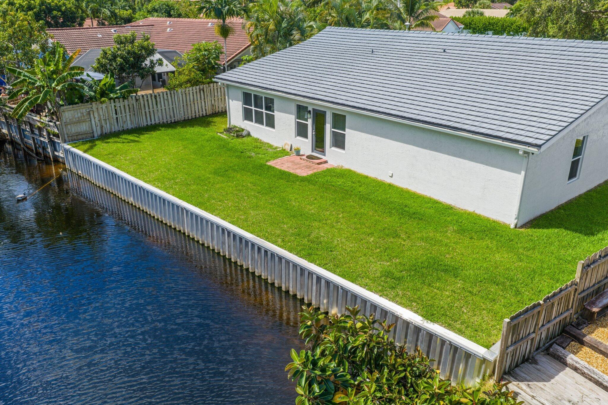 Beautifully renovated 2BR + Den home with fenced yard and brand new seawall, serene canal views, full impact windows/doors, and roof (~10 yrs old). Immaculate kitchen with new stove top & dishwasher, stainless appliances, and instant hot water above range. Spacious primary suite with walk-in closet and expanded bath; 2nd bedroom featuring a loft. Tranquil backyard perfect for entertaining. Additional features: (2023) water heater, new washer/dryer inside + extra set in garage, pet washing station, 2 A/Cs, electric fireplace, and extra-deep 2-car garage with pull-down stairs and hurricane-rated door. Low HOA and just minutes to Mizner Park, FAU, beaches, Delray's Atlantic Ave, and top-rated schools. Hidden Lakes Park with a playground, two tennis courts, a pavilion, and picnic area!
