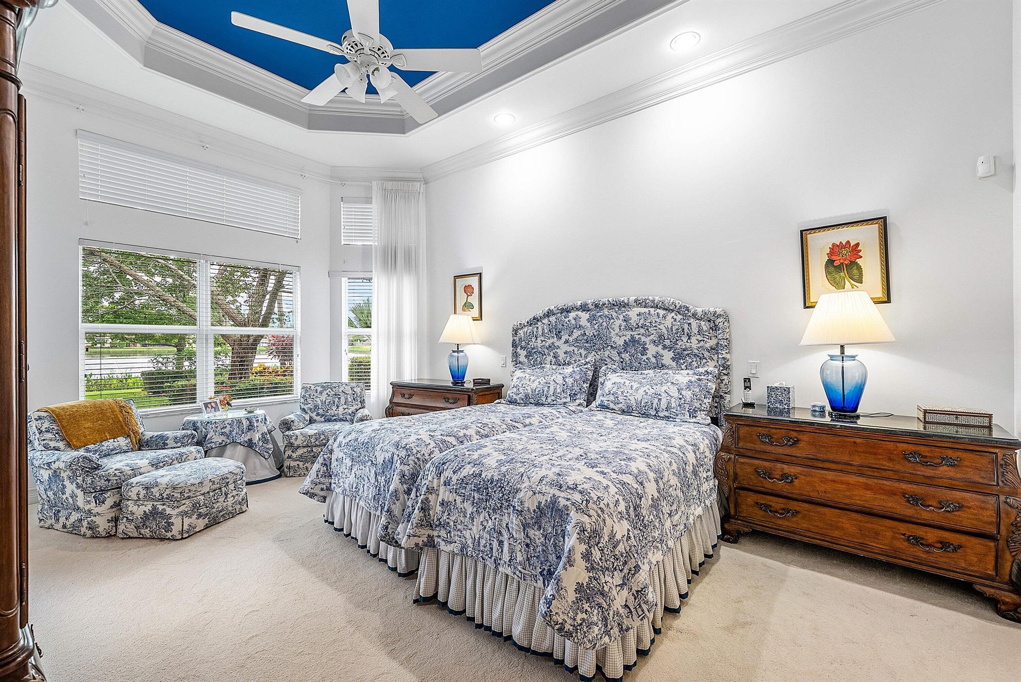 Elegant Charleston Grande on a south-facing lakefront lot with a spacious screened patio. This home offers 2 bedrooms, library, club room (both convertible to bedrooms), 3 baths, and a 3-car garage. Features include porcelain tile, crown moldings, custom closets, upgraded baths, and a gourmet kitchen with white glazed cabinets, quartz counters, stainless appliances, island, snack bar, and so much more. Valencia Cove's 55+ lifestyle includes a 39,000 sq. ft. clubhouse, resort pools, tennis, pickleball, fitness, dining, clubs, and more. HOA includes lawn care, alarm monitoring, cable and internet. Call for a full list of upgrades.
