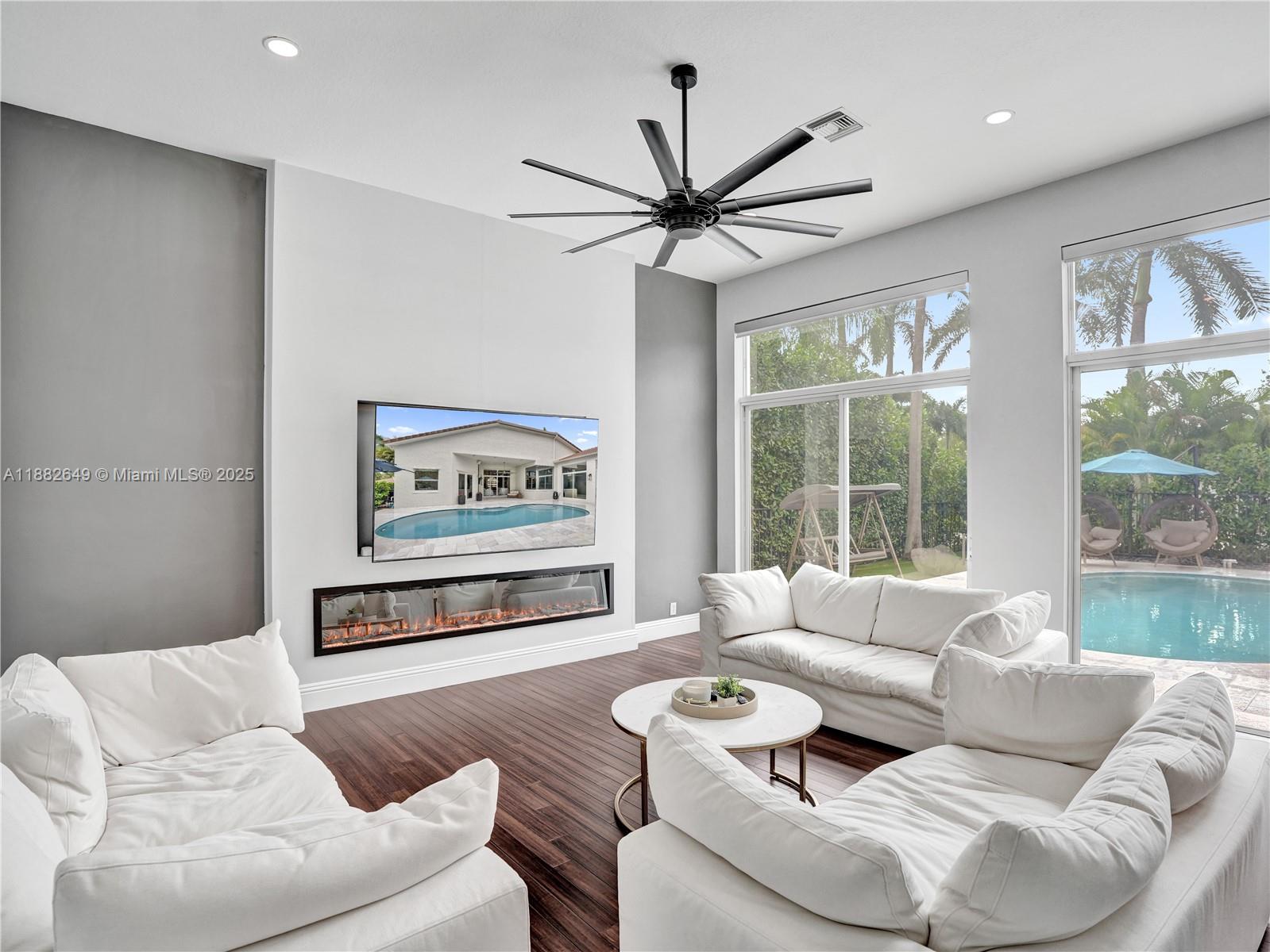 Exquisite 5BD/4.5BA/3CG nestled on a generous 10,000 sqft corner lot in the exclusive enclave of WHCC. Updated open floor plan includes showpiece remodeled gourmet kitchen at the heart of the home w/ huge quartzite island/countertops, high end appliances + eat in nook, custom dry bar w/ wine fridge, Cali Bamboo & Eucalyptus floors, modernized bathrooms, flush LED lighting, electric fireplace + smart electric shades in fam room, 20K designer chandelier in liv room. Additional updates incl new AC (2025), 2nd unit (2022), hybrid water heater (2024), Aug 2019 roof. Heated saltwater pool w/ marble tile deck, pool heater (2025), variable-speed pump (2024). Smart tech includes security cameras, EV charger, and app-controlled shades. Exterior freshly painted (2025). Move-in ready luxury!