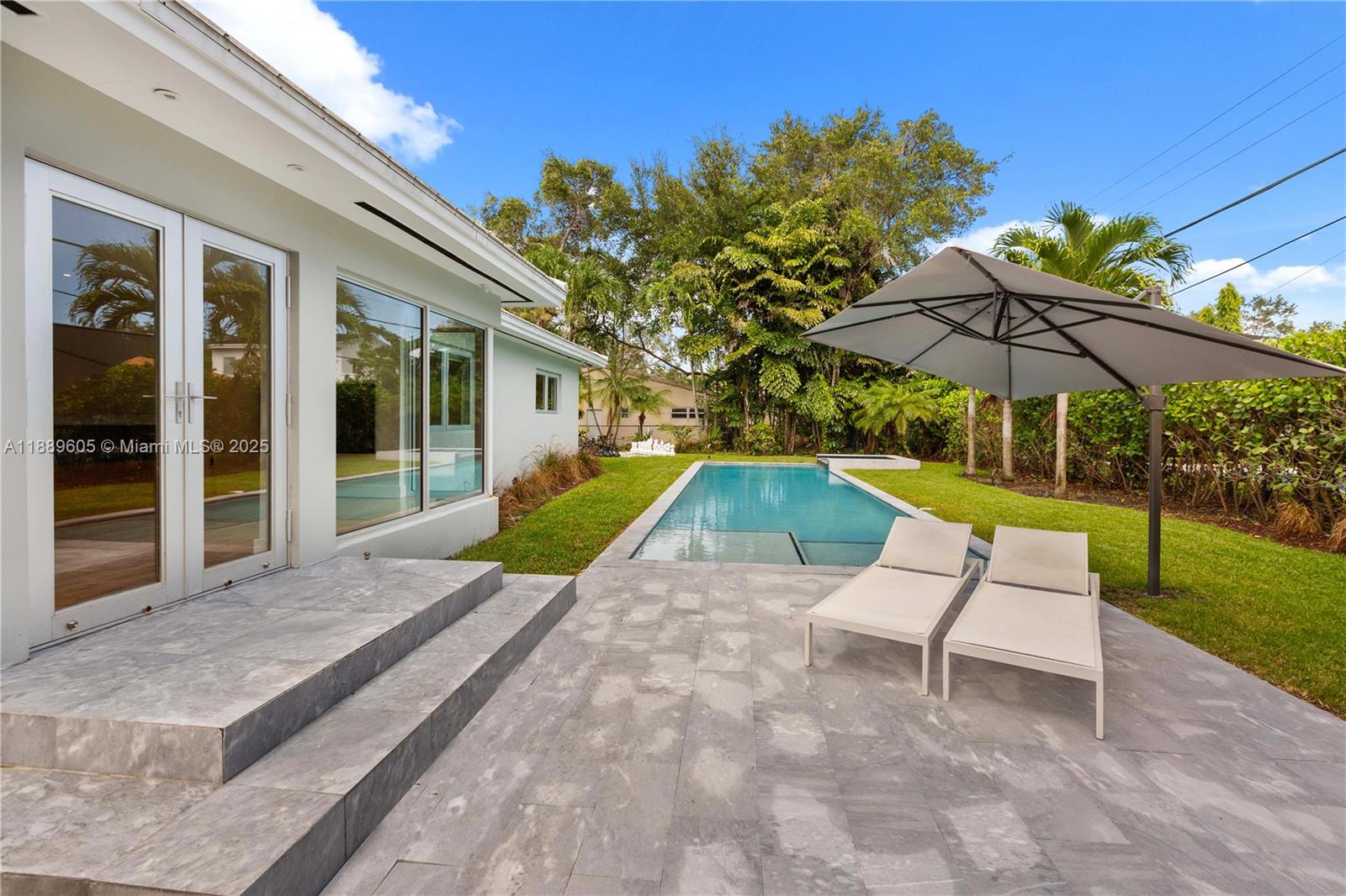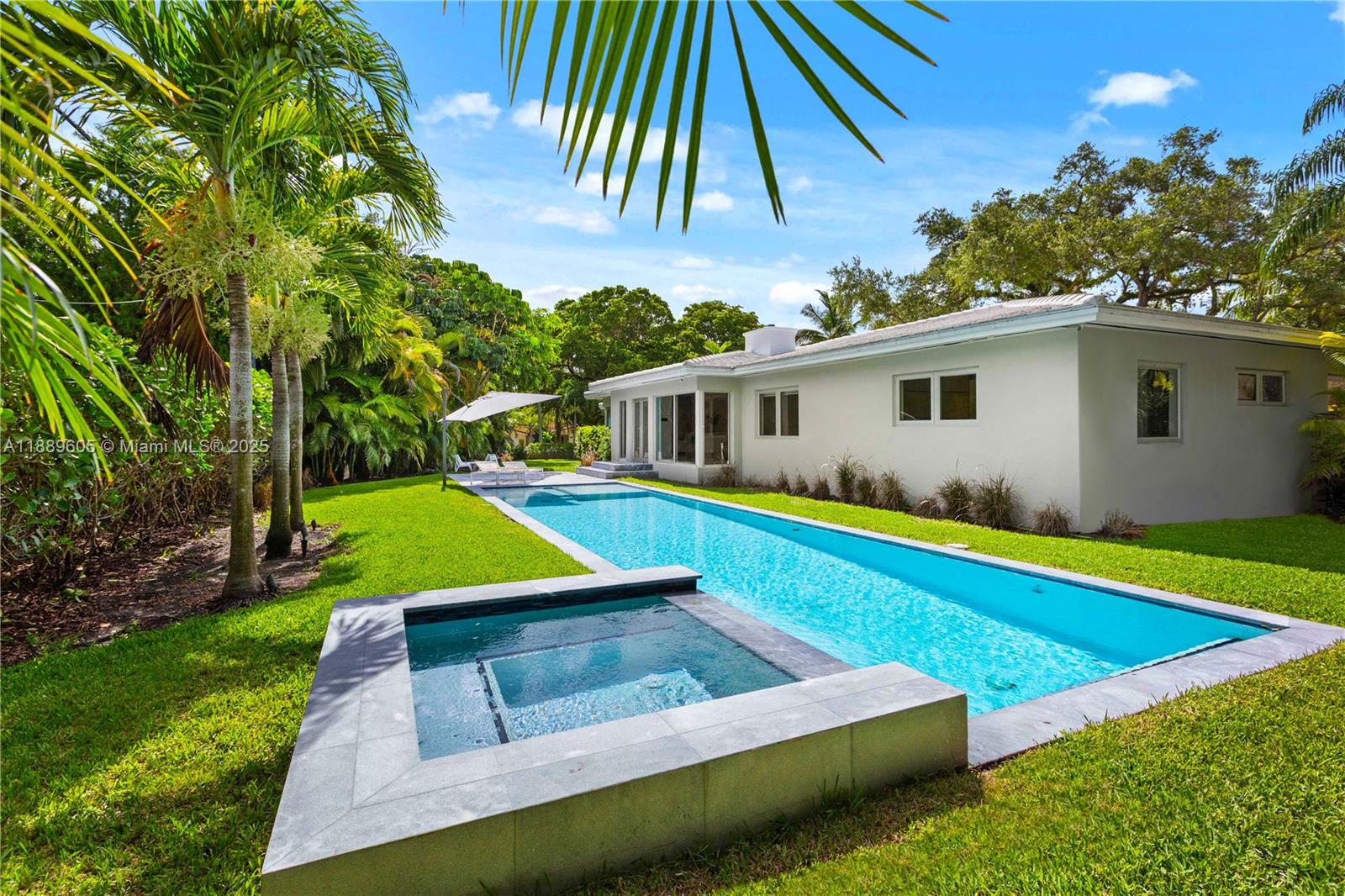 Beautifully updated & thoughtfully redesigned, this 3-bedroom, 2-bath home sits on a 14,000 sq ft corner lot in one of Coral Gables’ most desirable neighborhoods. Blending classic charm with modern sophistication, the home features refinished hardwood floors, a chef’s kitchen, designer European fixtures, and a bright, open-concept layout. Designed by a leading smart home, AV, and lighting specialist, it offers seamless integration of comfort, convenience, and security. Step outside to enjoy a stunning pool and hot tub, outdoor shower, and a lush, private yard ideal for entertaining. With impact windows and doors, European-style bathrooms, high-end finishes, and a two-car garage, this move-in-ready residence is the perfect blend of style and substance, smart, stylish, and built to impress.