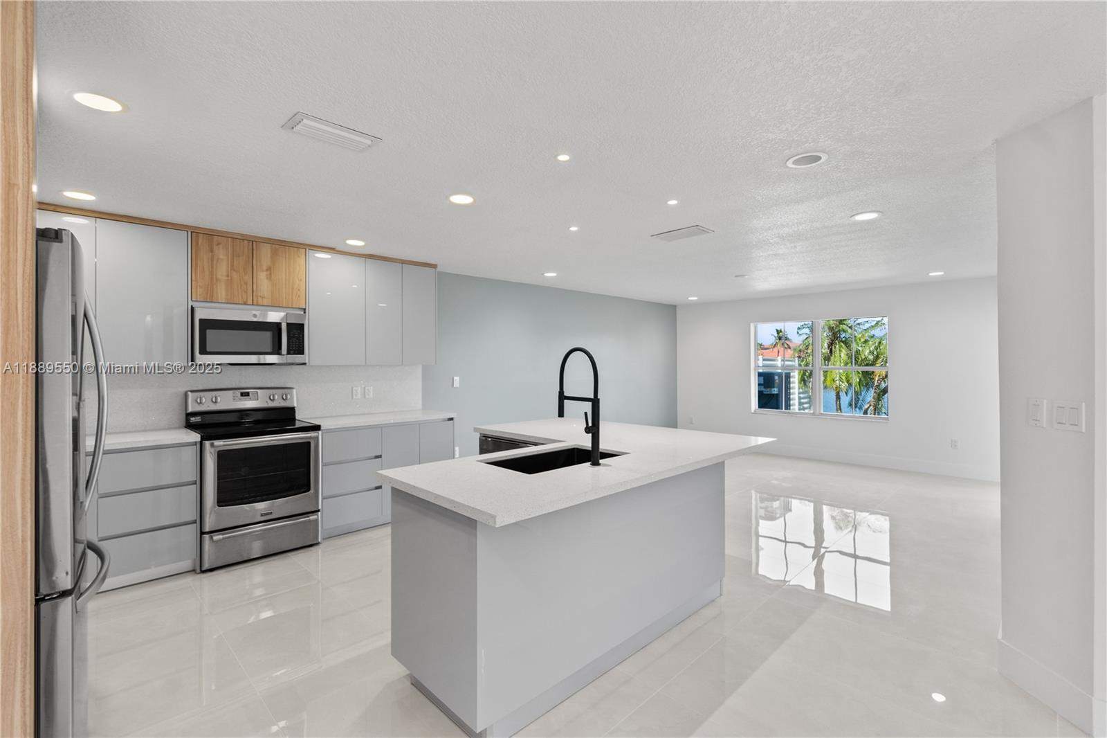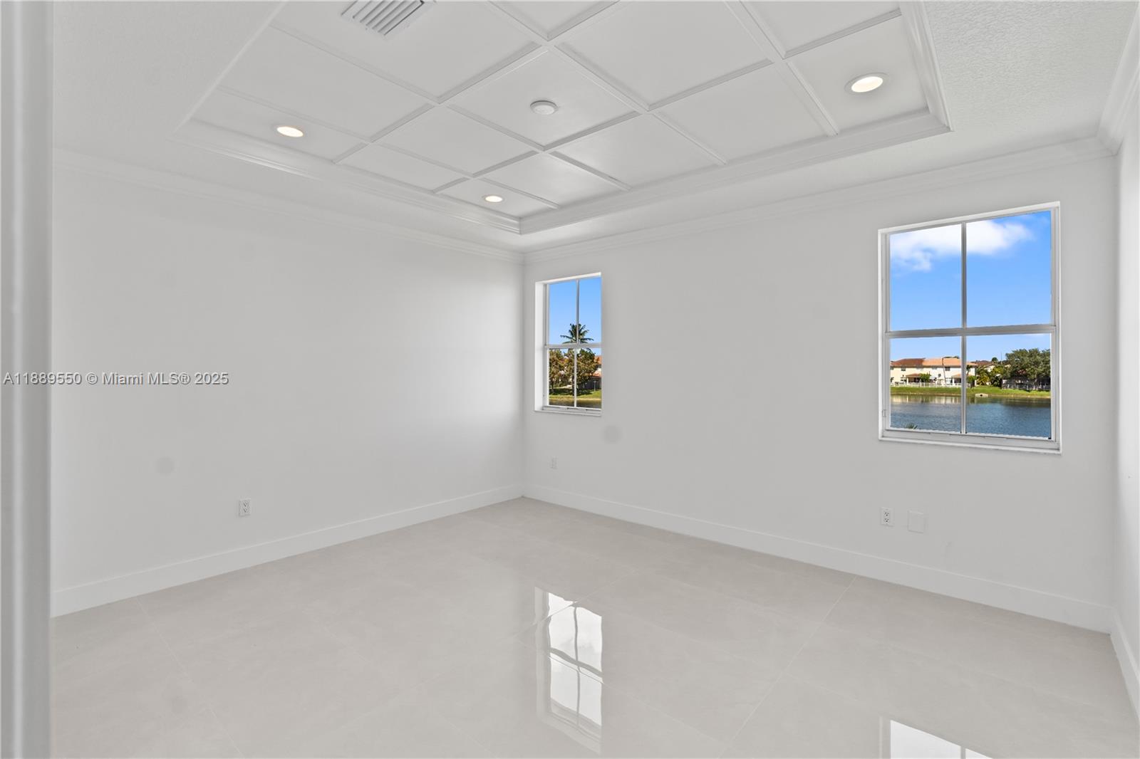 Welcome to this renovated lakefront residence in the gated community of Melrose Point at Park Lakes. This 4-bed, 3-bath home features soaring ceilings, expansive windows, and panoramic lake views. The open layout highlights a new designer kitchen with quartz counters, sleek cabinetry, and stainless steel appliances. Bathrooms include modern finishes, frameless glass showers, and custom vanities. A first-floor bedroom with full bath is ideal for guests. Upstairs, the primary suite offers a spa-inspired bath and serene water views. Additional features include porcelain tile flooring, wood accents, and a 2-car garage with laundry area. Private patio overlooking the lake and fountain — perfect for entertaining or sunsets. Community amenities include pool, recreation facilities, and security.