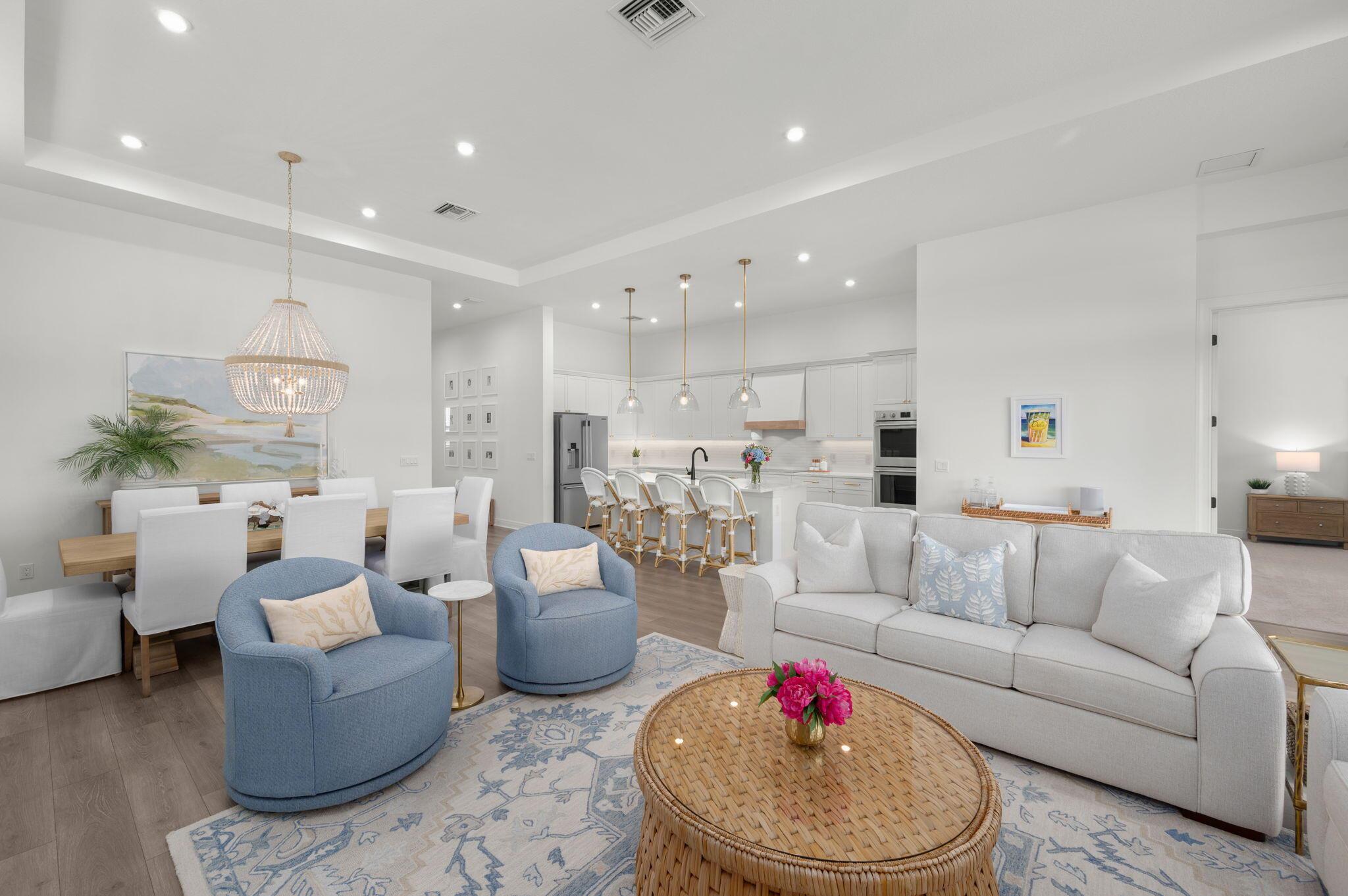 Stunning upgraded Madison model with sweeping lake views in PGA Verano. This meticulously maintained 3 bedroom, 3 bath pool home is designed for entertaining and everyday enjoyment. The chefs kitchen impresses with quartz countertops, oversized island, custom wood hood, double oven, abundant cabinetry, and a walk-in pantry with dual-zone wine fridge. The light-filled living area features high ceilings and wood flooring, seamlessly connecting the dining and family areas, anchored by a fireplace wall and 12-foot sliding doors that open to the outdoor retreat. Step onto the expansive marble pool deck and take in the serene, panoramic long-range lake view. The covered lanai boasts a 42'' BBQ grill, built-in fridge and leathered granite countertop,