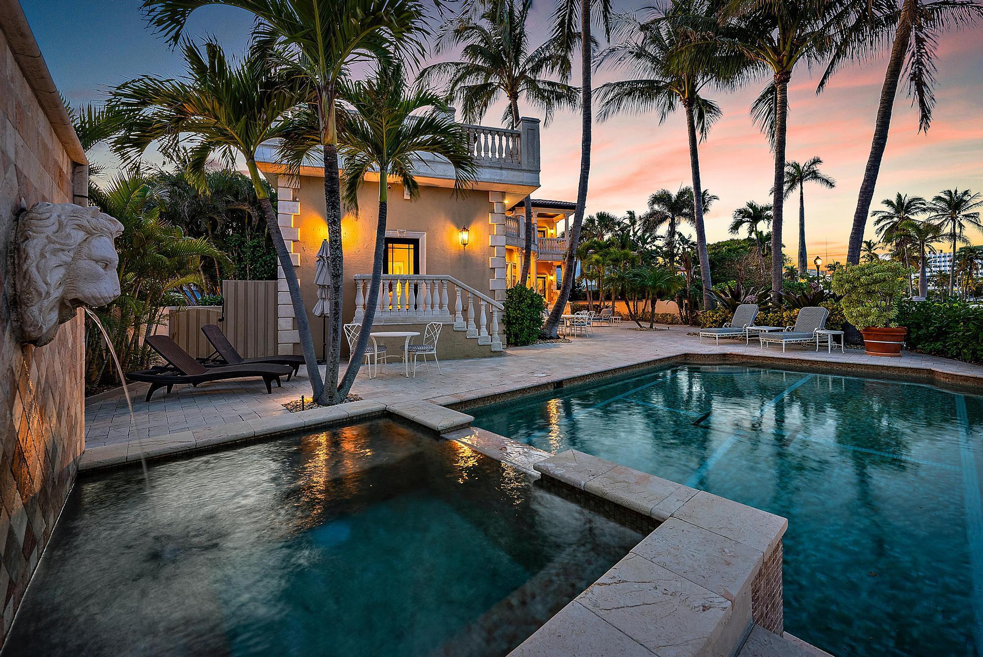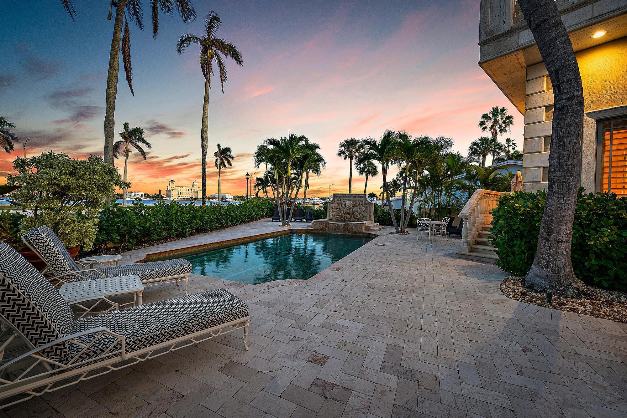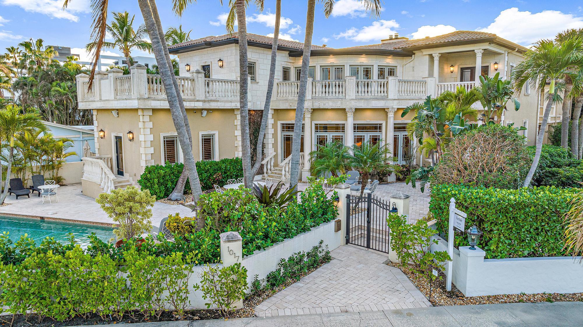 Waterfront Mediterranean home with fabulous water views of Palm Beach Island. This is a prime location near the new NORA entertainment district in West Palm Beach. This spectacular 6 bedroom, 6.1 bath residence and guest house has a spacious open plan, a luxury kitchen with a 6-burner gas stove, wine room, bar area with wine refrigeration & ice maker, dining area with fireplace, two offices/dens, & a full laundry room. The water-view Primary bedroom has a fireplace & two baths. With a luxurious pool area, several patios, & balconies the house provides an indoor/outdoor lifestyle. Includes a 1-bedroom, 1-bath guest house with a full kitchen & 2-car garage. A spectacular location across from the Palm Beach Yacht Club and close to NORAwpb, fine dining, luxury shops, marinas, & bike path.