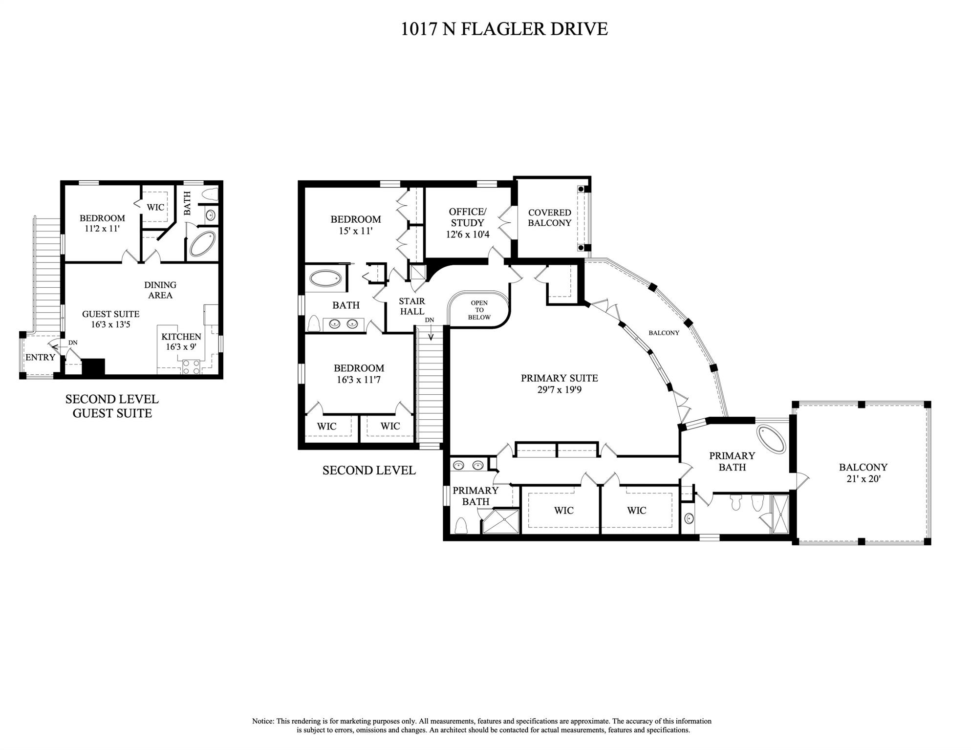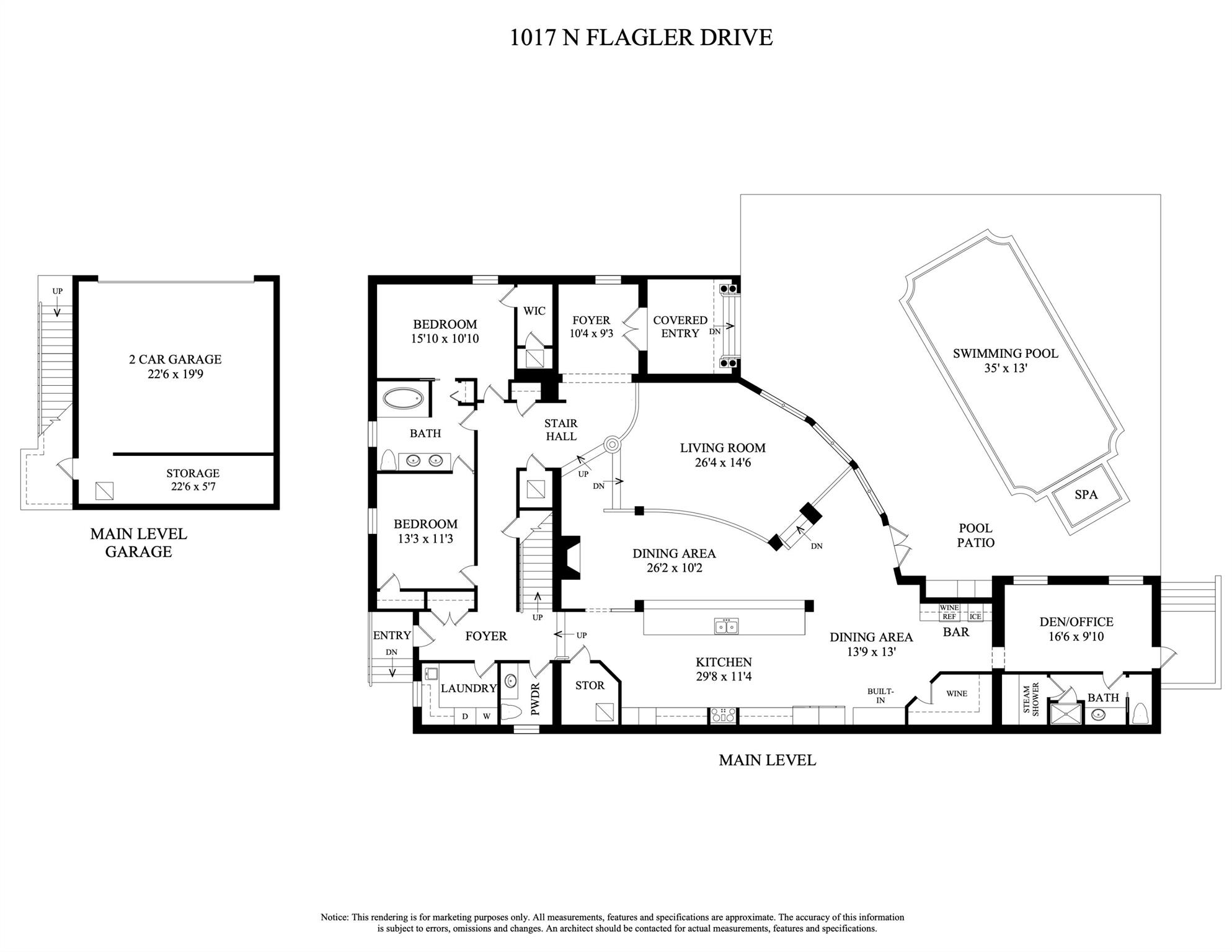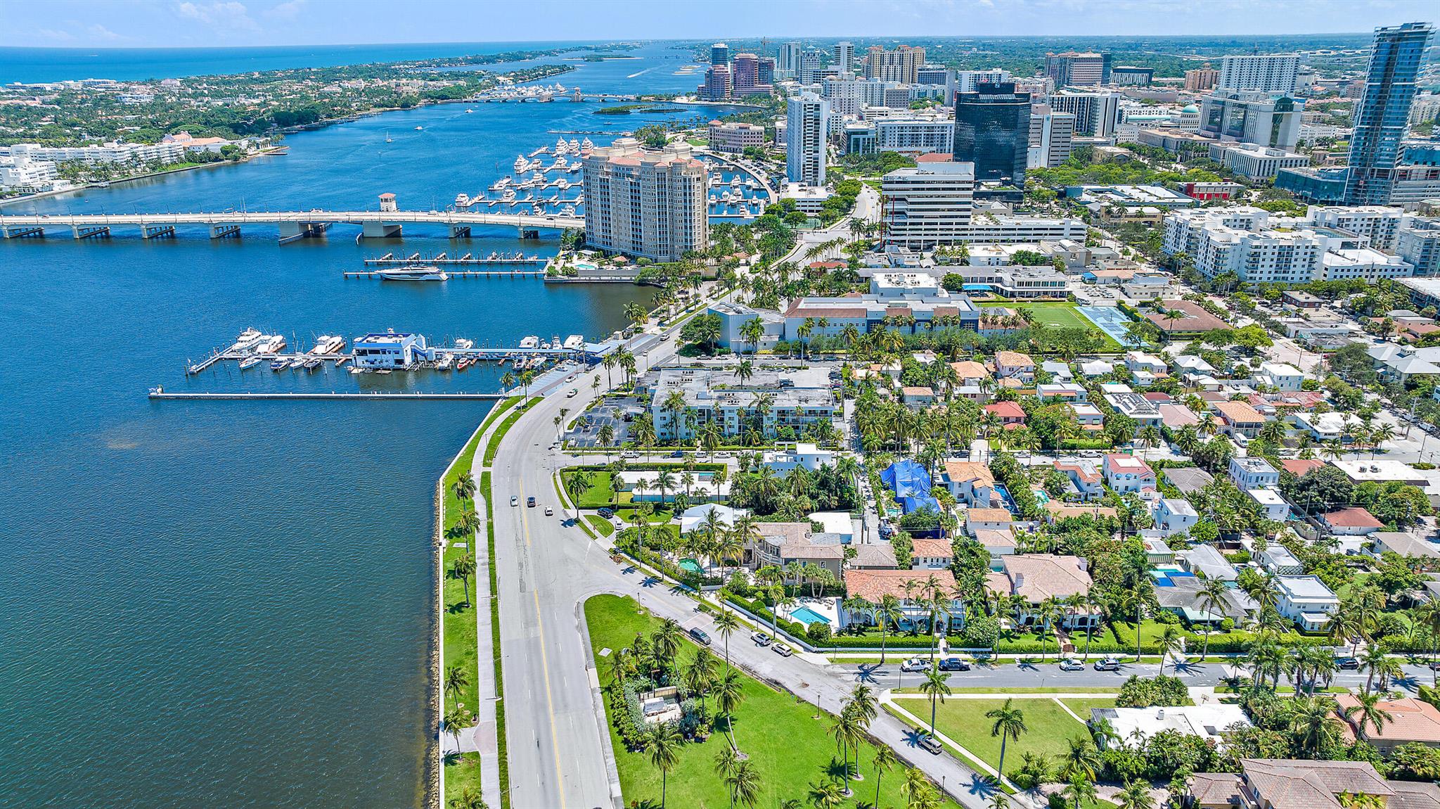 Waterfront Mediterranean home with fabulous water views of Palm Beach Island. This is a prime location near the new NORA entertainment district in West Palm Beach. This spectacular 6 bedroom, 6.1 bath residence and guest house has a spacious open plan, a luxury kitchen with a 6-burner gas stove, wine room, bar area with wine refrigeration & ice maker, dining area with fireplace, two offices/dens, & a full laundry room. The water-view Primary bedroom has a fireplace & two baths. With a luxurious pool area, several patios, & balconies the house provides an indoor/outdoor lifestyle. Includes a 1-bedroom, 1-bath guest house with a full kitchen & 2-car garage. A spectacular location across from the Palm Beach Yacht Club and close to NORAwpb, fine dining, luxury shops, marinas, & bike path.