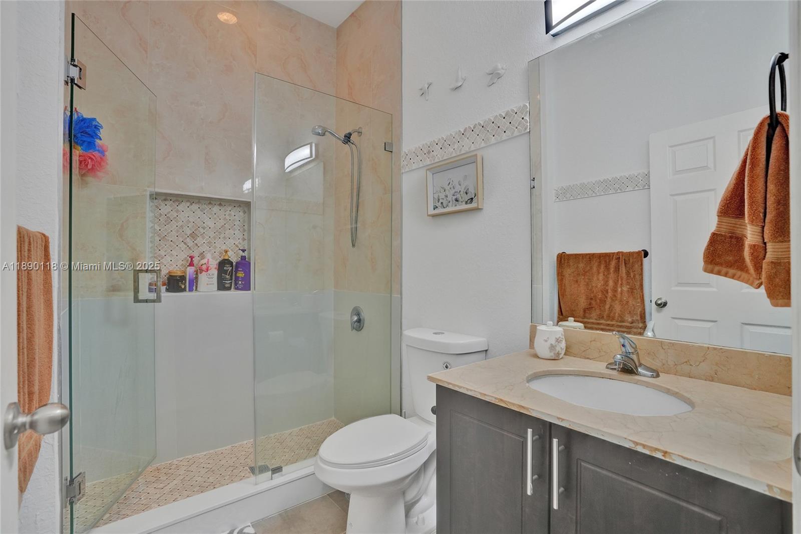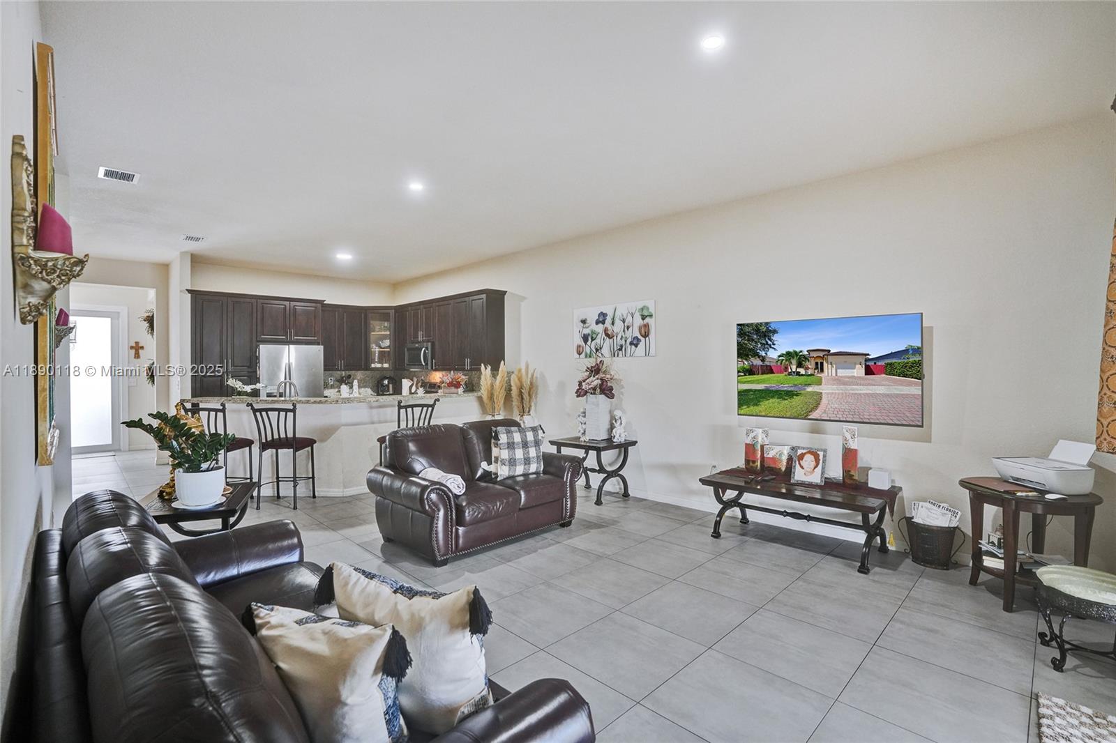 Very charm and cozy three bedrooms and three bathrooms home, built in 2018. Kitchen with stainless steal appliances, granite countertop and 42 inches cabinets and pantry, to provide plenty of space for storage. The house is protected with impact windows and doors. In the back yard under a big terrace with kitchen and TV, you will enjoy the view of a lake with your family and friends. On the sides you have room for a boat or RV. The garage is converted to a guess room with it own bathroom.