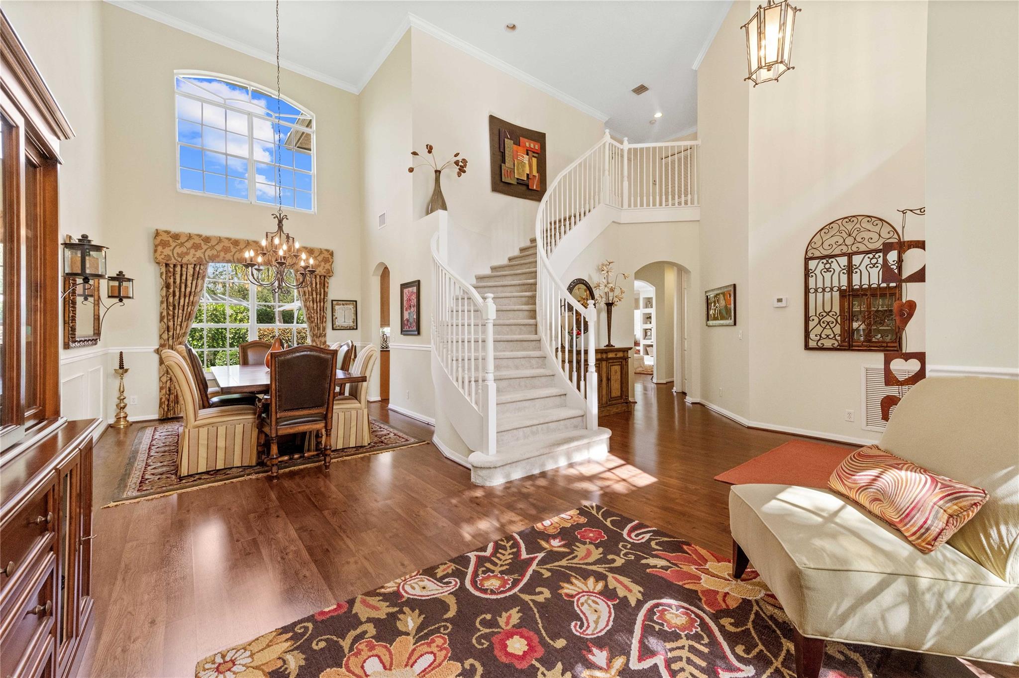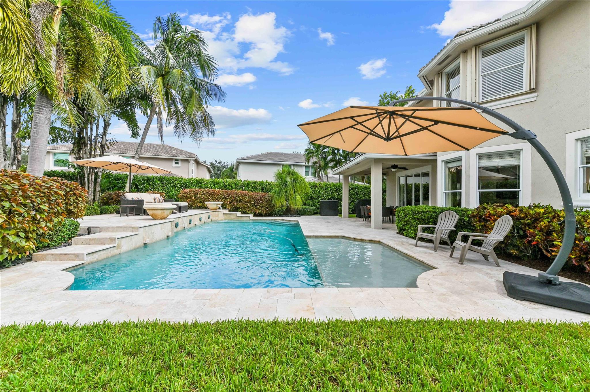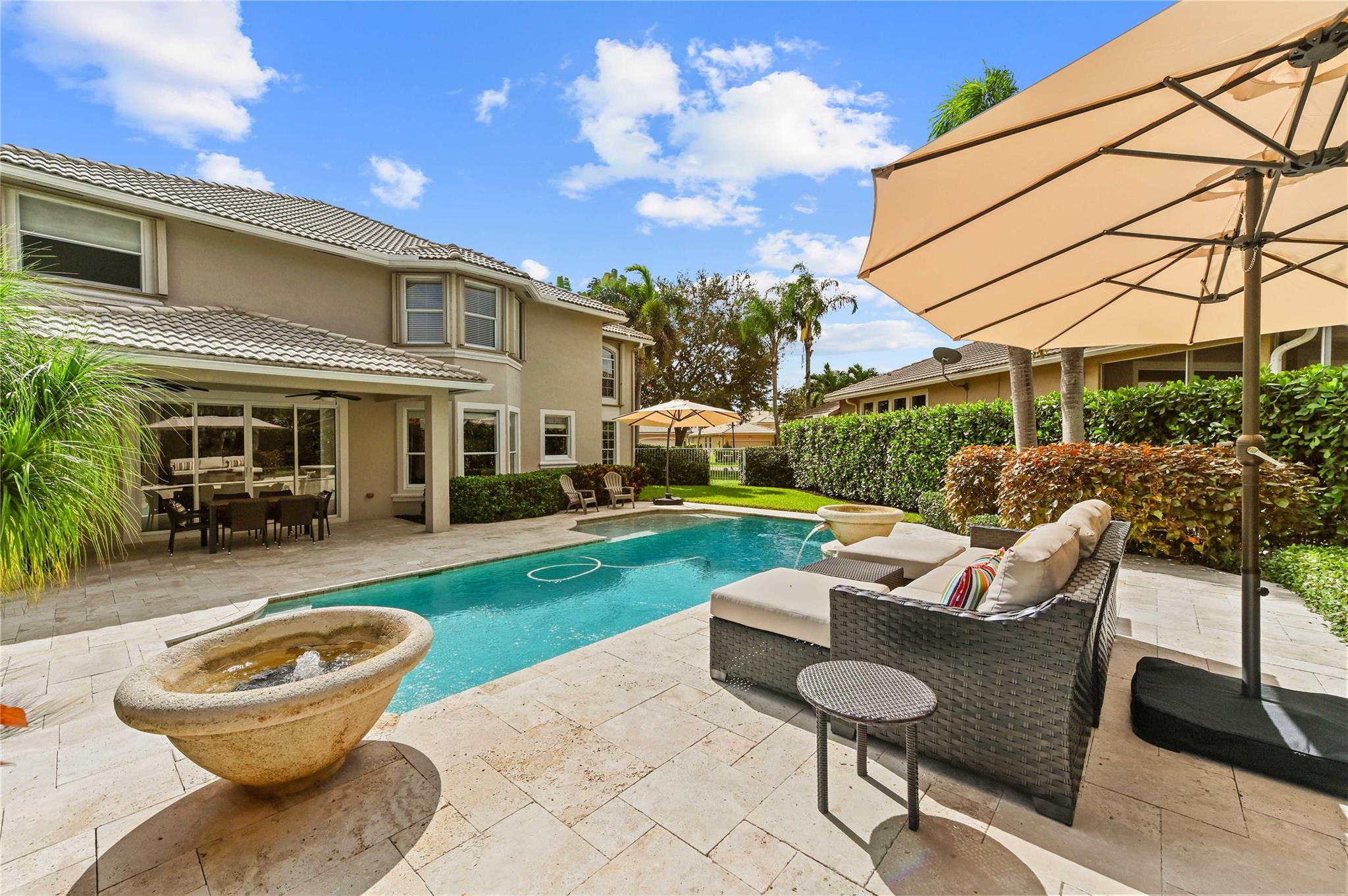 NEW ROOF 2025 on luxury pool home in 24 hr guard gated community 5 bdrm 3 ba 3 car garage on oversized 11,741 sq ft lot offering elegance,comfort&modern living Grand foyer entry to gourmet kitchen wood cabinets,designer glass accent door, dbl wall ovens &walk-in pantry w/custom organizer Breakfast area overlooking sparkling pool,spacious fam rm,Formal Din Rm,Formal Liv Rm wood style floors in liv area 1st fl bdrm being used as office & a full bath on main level Upstairs luxury primary suite w/double door entry,tray ceiling, sitting area & two custom walk-in closets Primary bath w/dual vanities, walk-in shower, whirlpool tub Lavish backyard has designer pool w/waterfall, marble patio & raised sitting area- clubhouse, billiard rm, gym, community pool, children’s pool & toddler play area