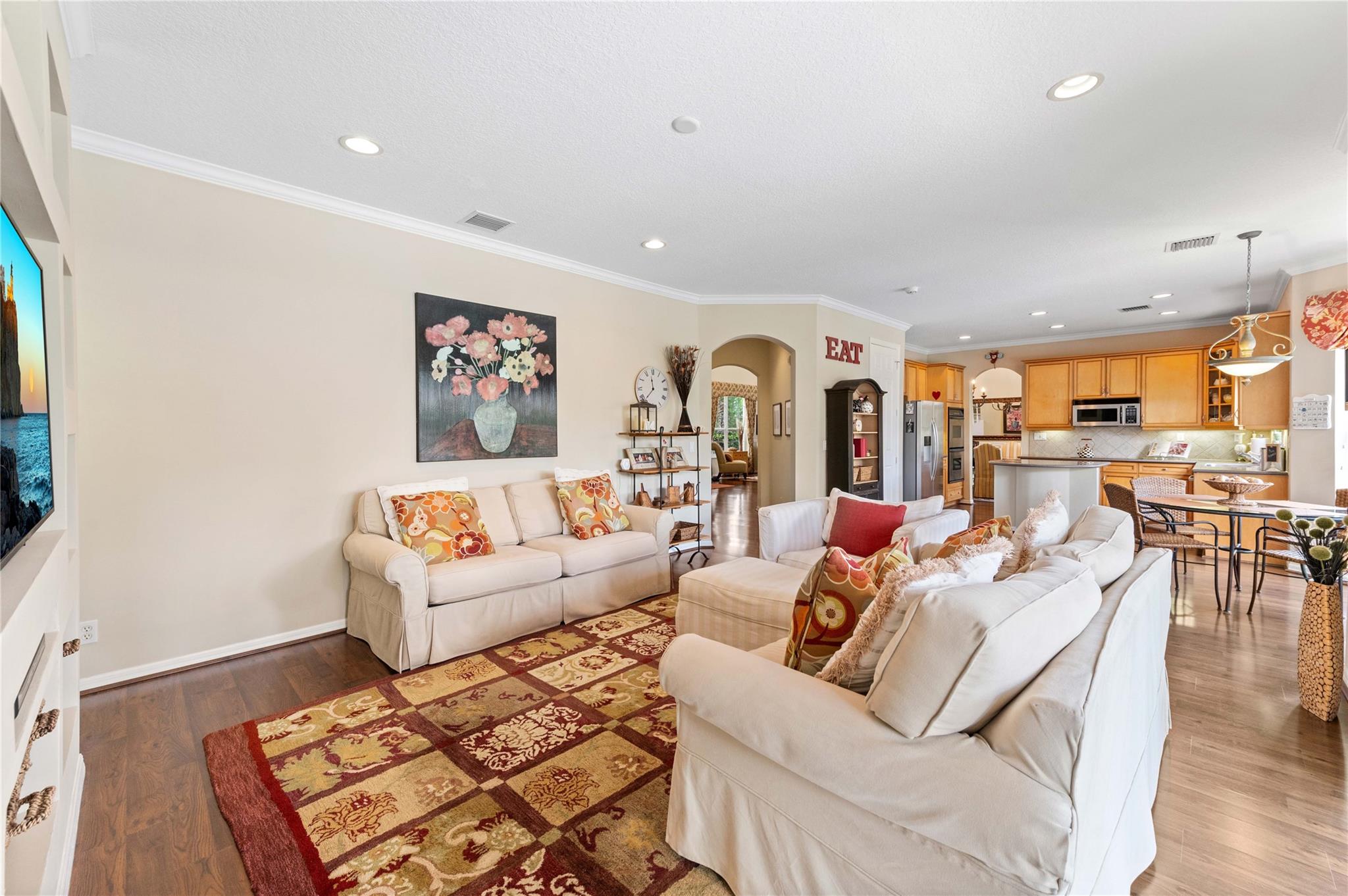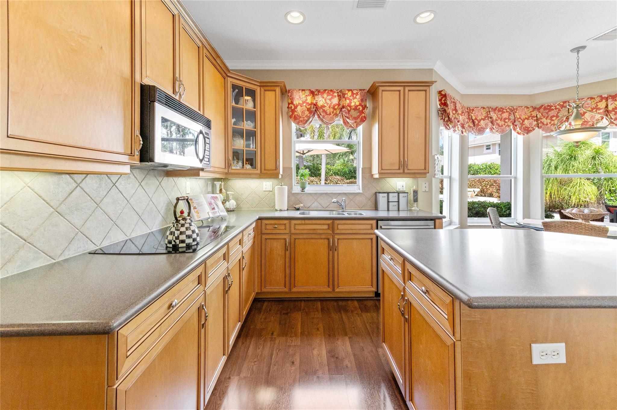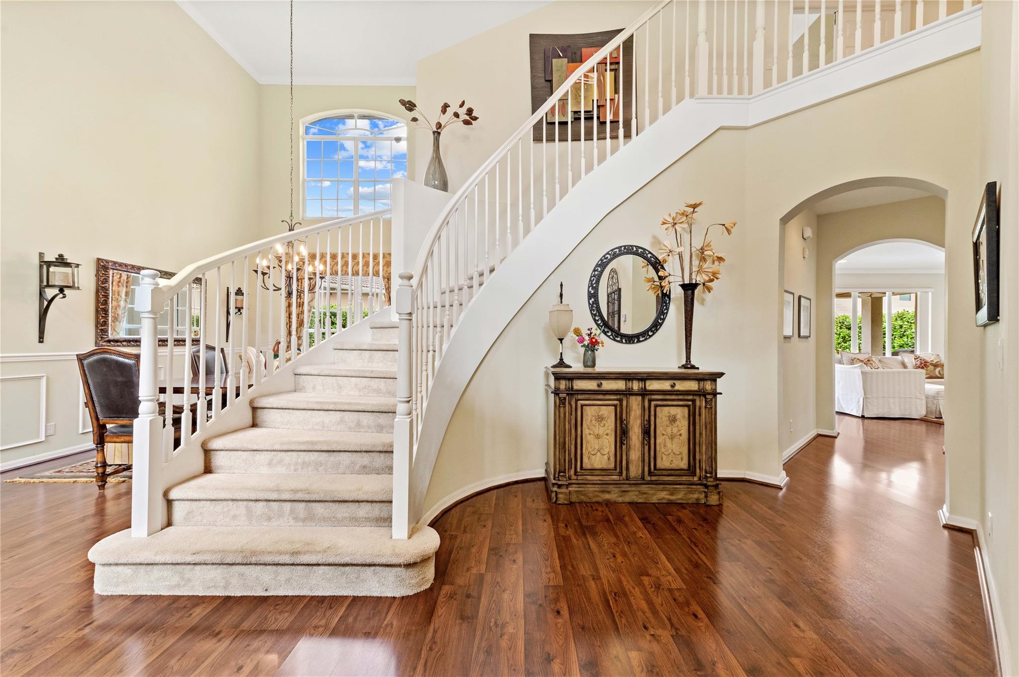 NEW ROOF 2025 on luxury pool home in 24 hr guard gated community 5 bdrm 3 ba 3 car garage on oversized 11,741 sq ft lot offering elegance,comfort&modern living Grand foyer entry to gourmet kitchen wood cabinets,designer glass accent door, dbl wall ovens &walk-in pantry w/custom organizer Breakfast area overlooking sparkling pool,spacious fam rm,Formal Din Rm,Formal Liv Rm wood style floors in liv area 1st fl bdrm being used as office & a full bath on main level Upstairs luxury primary suite w/double door entry,tray ceiling, sitting area & two custom walk-in closets Primary bath w/dual vanities, walk-in shower, whirlpool tub Lavish backyard has designer pool w/waterfall, marble patio & raised sitting area- clubhouse, billiard rm, gym, community pool, children’s pool & toddler play area