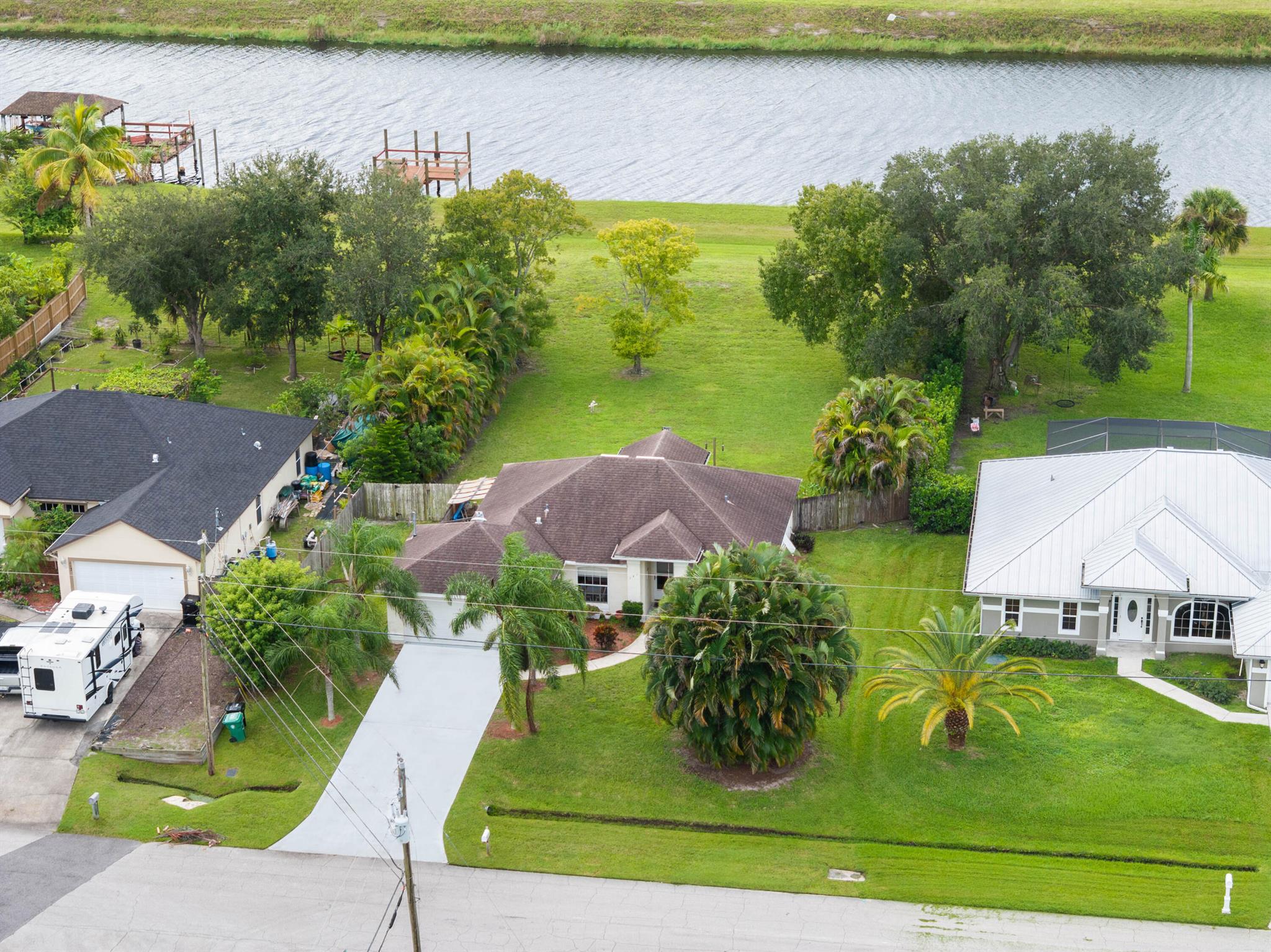 Looking for privacy and a larger lot? This 3-bedroom, 2-bath canal home offers an open floor plan with hardwood floors & an updated kitchen featuring granite counters. Spacious primary bedroom includes double walk in closets, the split floor plan allows for extra privacy from the other 2 bedrooms. A screened patio opens to an oversized yard with access to the C-23 canal, perfect for fishing or kayaking. Recent updates include a 2019 roof and newer water heater. NO HOA- bring your toys & enjoy flexibility and peace of mind. Located off Becker Rd with and close to Tradition's shopping &, dining new . New hospital located down the street plus easy access to I-95 and the Turnpike for easy commuting. Just 25 minutes to the beach, this home combines comfort, lifestyle, and accessibility.
