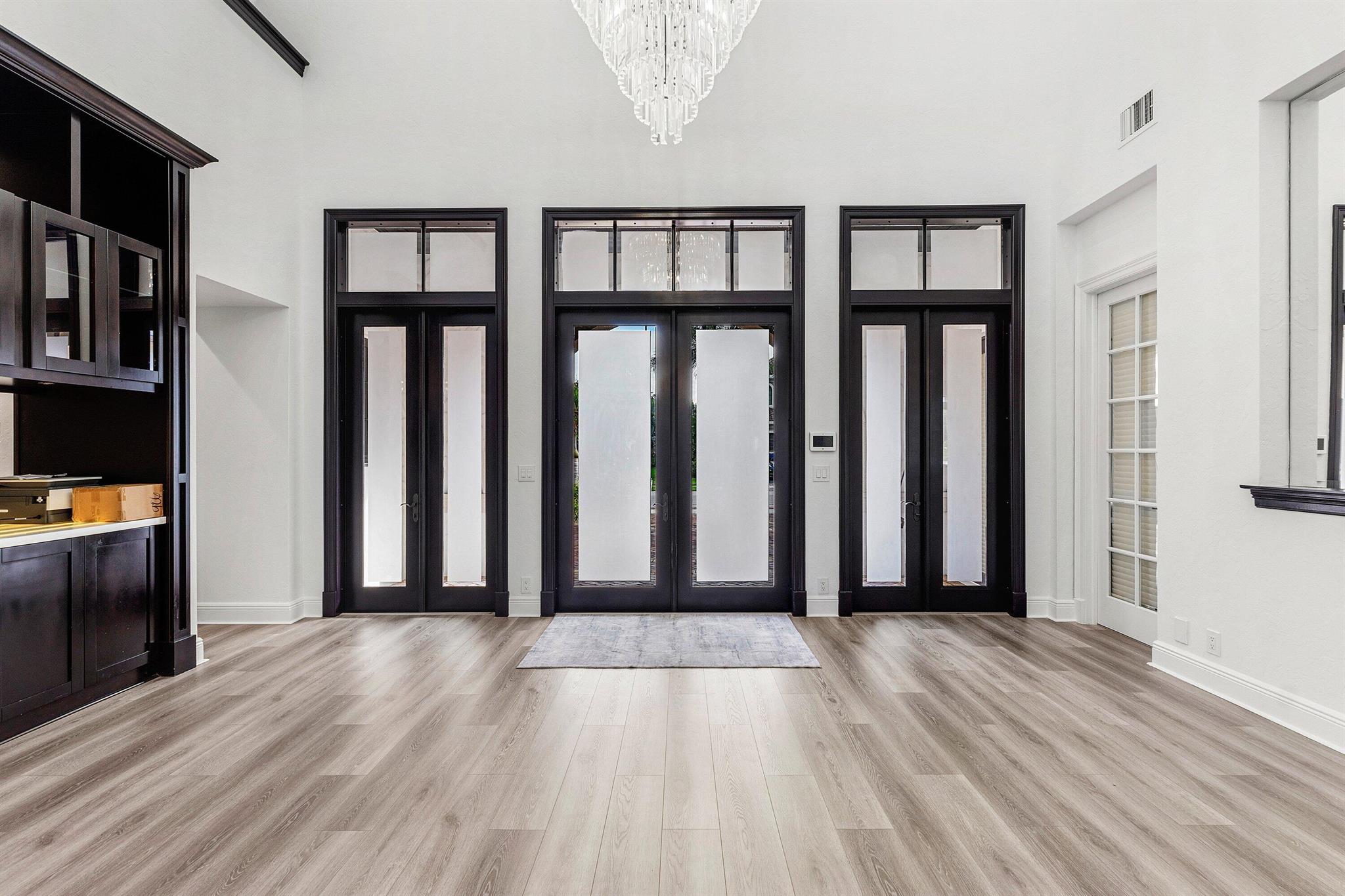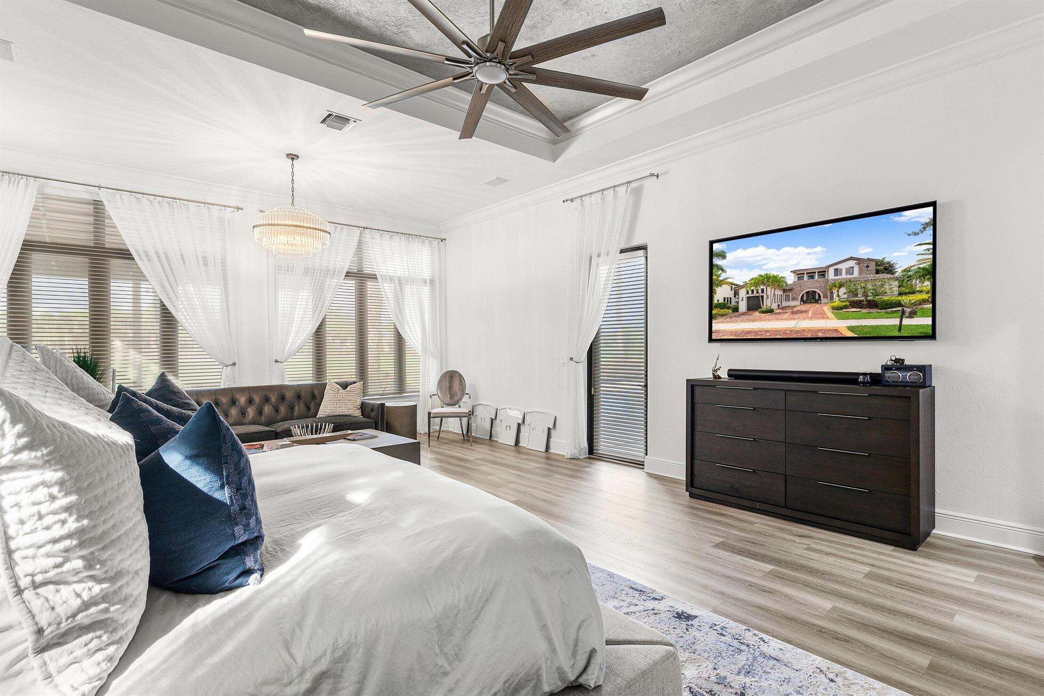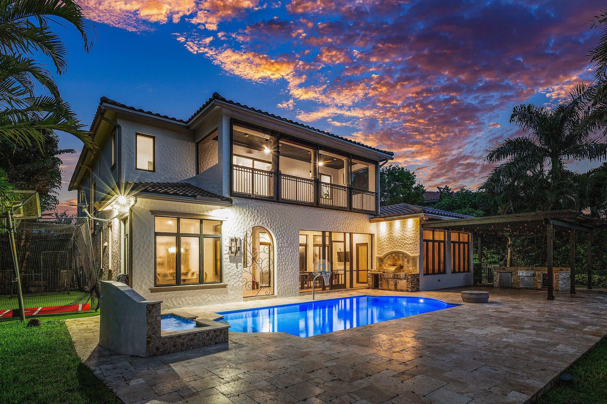 ONE-OF-A-KIND ESTATE IN PARKLAND GOLF & CC W/ STUNNING FAIRWAY & LAKE VIEWS. Expanded Minorca model featuring 6BD, 4/2BA on oversized lot. Primary on main floor w/oversize closet. Remodeled & upgraded. new quartz kitchen counters, double oven, white cabinetry, SS appliances, custom wood wall unit, marble in family room, built-in bar, new flooring in main living areas, contemporary fixtures & window treatments, coffered wood ceilings, wood stairs w/ wrought iron rails, & 2 balconies.Resort-style outdoor living w/ remodeled pool & patio, marble pavers, fire pit, summer kitchen. 6th bedroom doubles as game room or 2nd Primary. Generator &NEW ROOF. Parkland Golf & CC offers world-class amenities: 10 tennis courts, 3 restaurants, full-service fitness, child care, pickle, basketball,& 3 pools