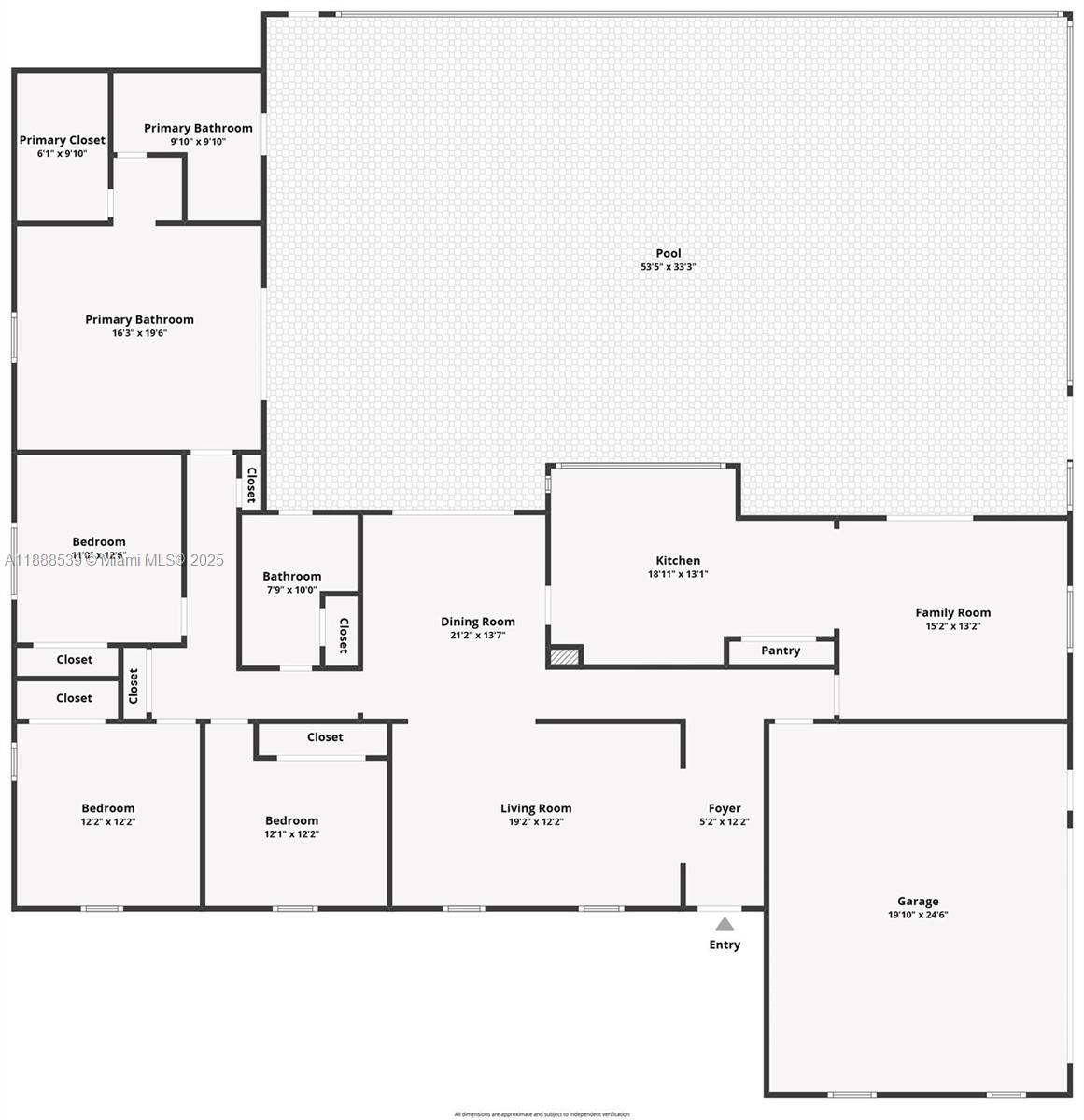 Incredible Falls area home is nicely situated on a quiet corner lot. Buyers will love this neighborhood away from the busier streets and off the beaten path. Impact windows throughout. Spanish tile roof and arched detailed entry into a courtyard give the house a hacienda feel. The foyer follows up with a softly rounded arched entry into the living room. The flowing layout and generously-sized bedrooms offer a comfortable lifestyle. Sunny eat-in kitchen overlooks the pool as well as the family room. The spacious primary bedroom offers patio access, walk-in closet, and cabana bath. Great outdoor space with covered patio, pool, and garden. A perfect opportunity to live in The Falls Area!