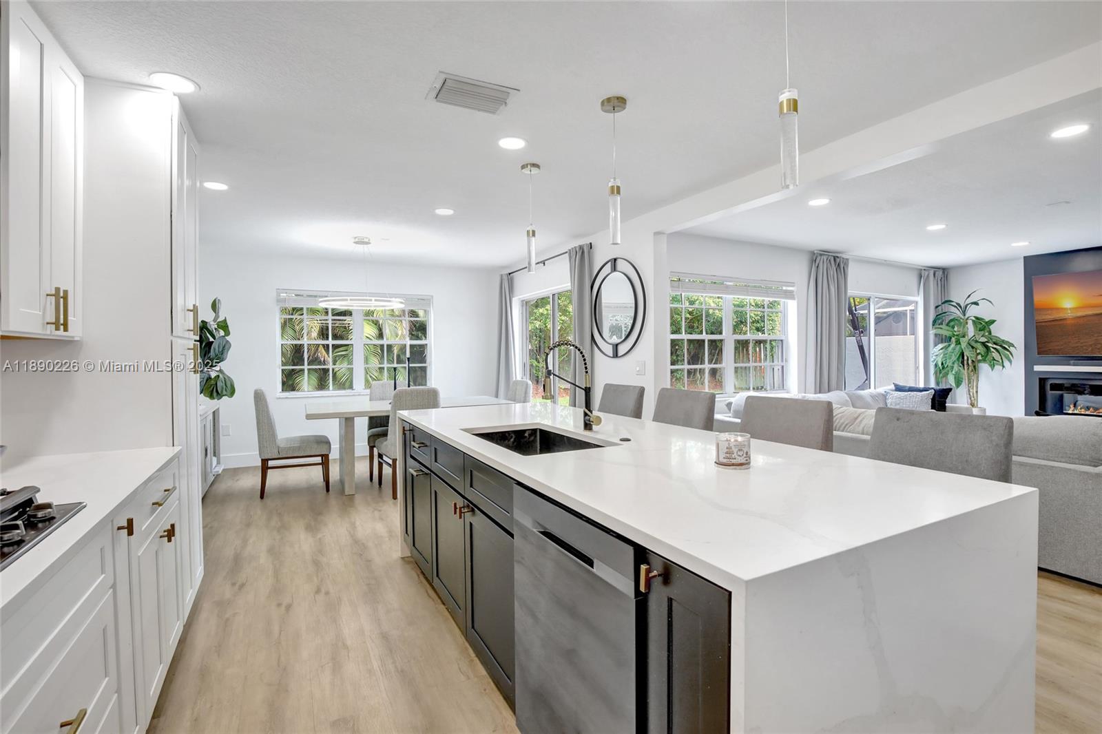 Cozy and spacious 4-bedroom, 2.5-bath home in Sawgrass Plantation offering a welcoming layout and modern updates. The chef-inspired kitchen is the centerpiece of the home with a 10-ft island, gas cooktop, and stainless appliances (all replaced in 2022). A custom fireplace adds warmth to the open main floor, while the upstairs layout provides four comfortable bedrooms including a primary suite with dual sinks, soaking tub, and shower. Recent upgrades include a new AC (2022) and washer/dryer (2024, under warranty). The fenced backyard creates a private retreat, perfect for relaxing or entertaining. Conveniently located near I-595, Sawgrass Mills, IKEA, and American Heritage School. Low HOA fee of $290/quarter.
