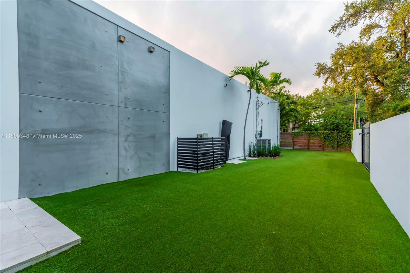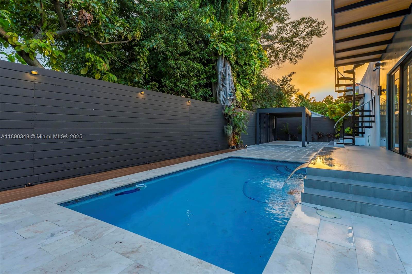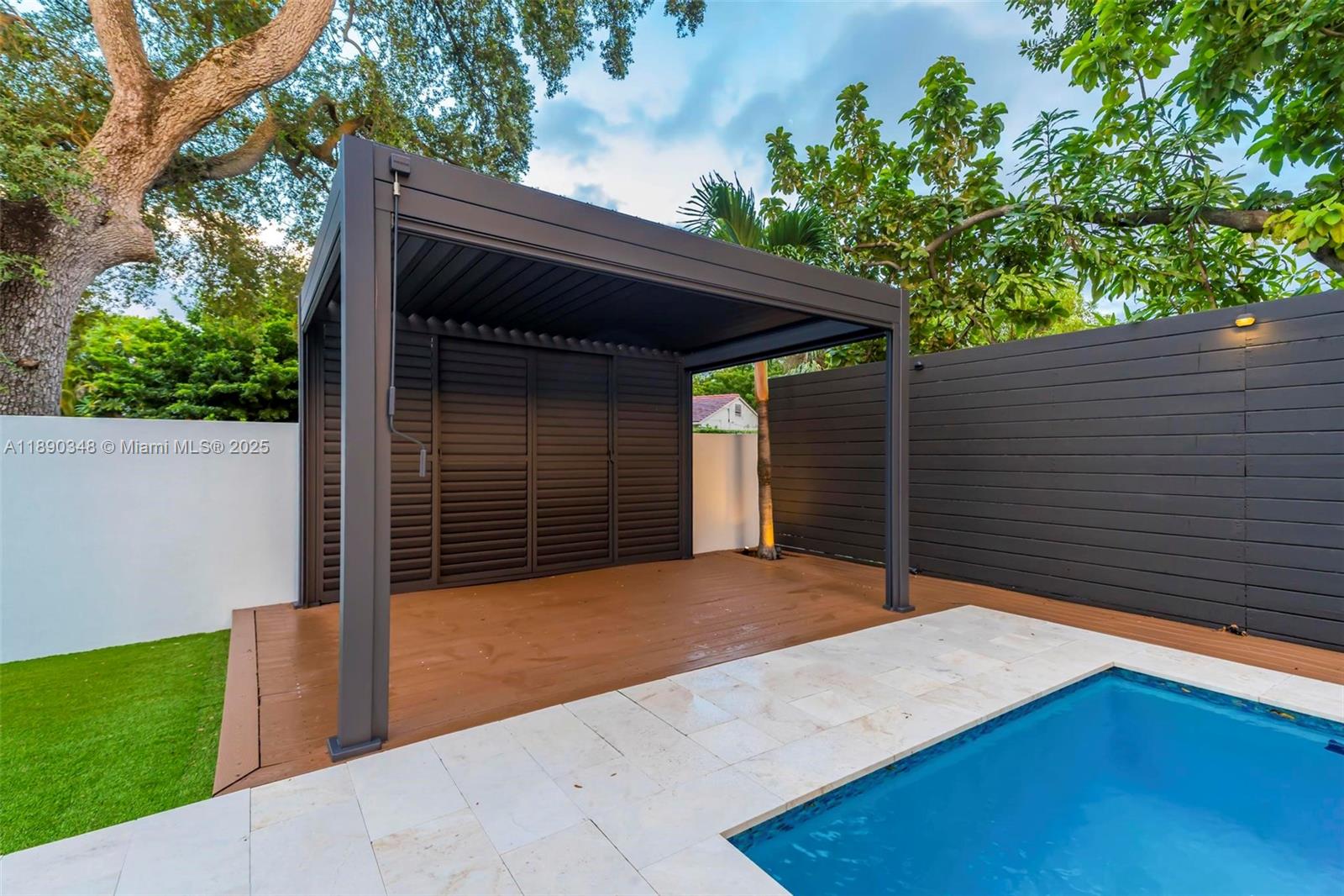 Modern, energy-efficient 5-bed, 4-bath smart home, fully renovated and move-in ready. Close to Coral Gables and minutes from Coconut Grove & Brickell. Open layout, high ceilings, coffee bar, Bosch appliances, wine cooler, quartz countertops. App and Alexa-controlled music, lights, gates, and shades. Luxe primary suite with double vanity, large shower, walk-in closet. One-car garage with EV charger + 4 additional parking spaces. Fenced yard with lush landscaping, artificial grass, saltwater pool, pool shower, and two pergolas. Features include Aquasana water filtration, UV reflective roof, UV-equipped HVAC & garage, and 1200W off-grid solar panels. Includes laundry room, projector & screen, surveillance, and rental-ready efficiency.