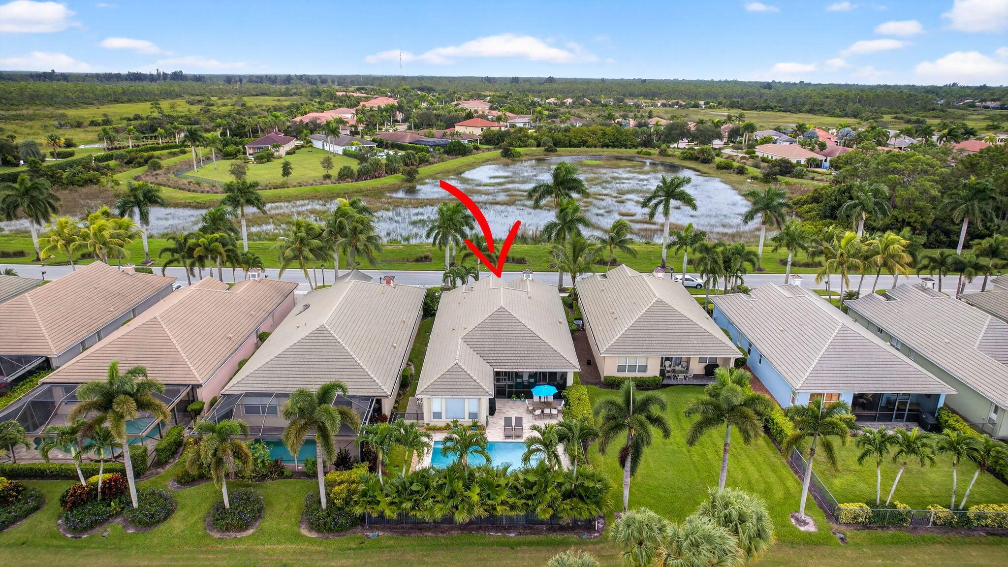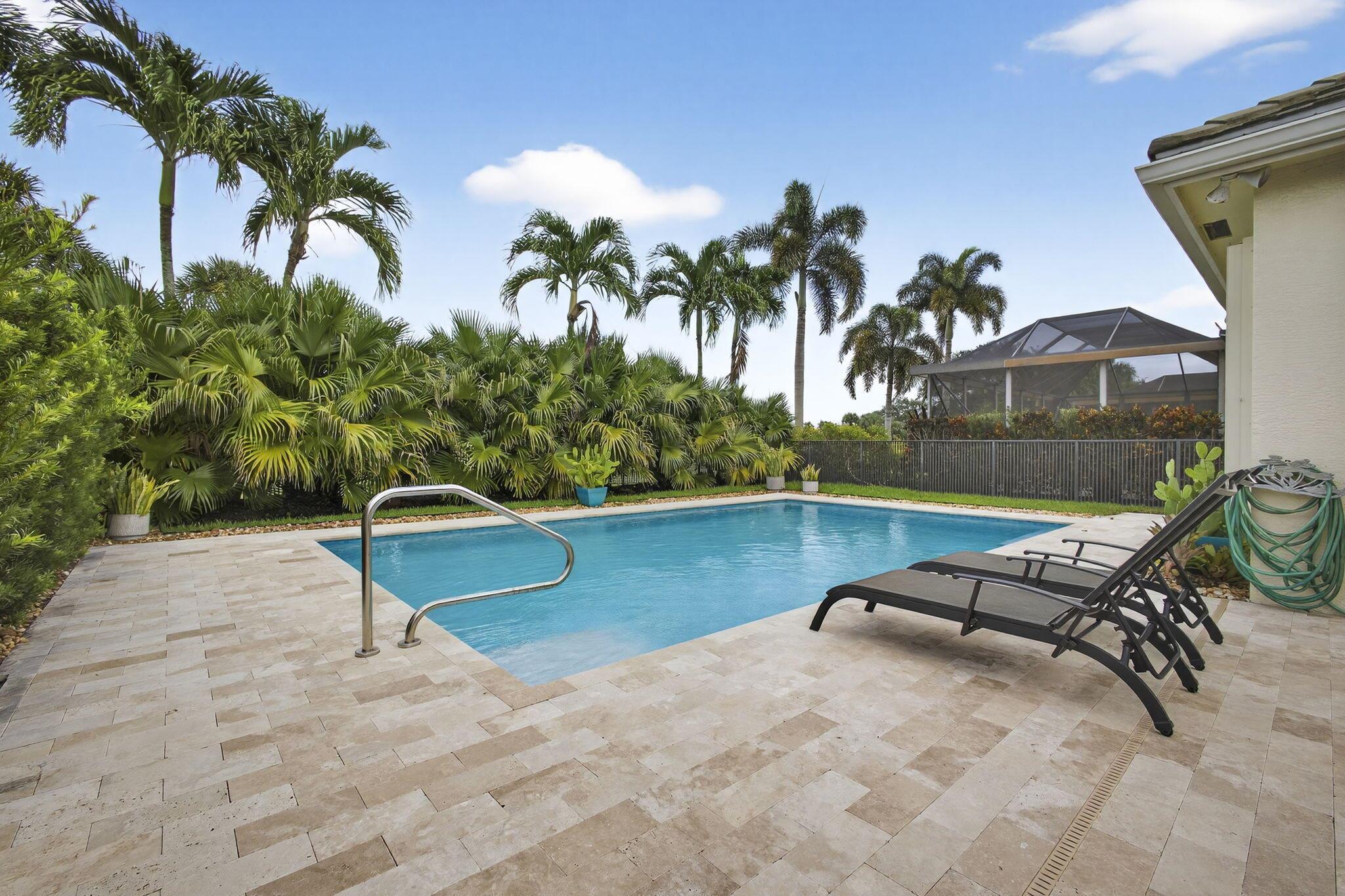 Enjoy Indoor/Outdoor living in this 3 Bed/2 Bath home filled with natural light. It faces the beautiful preserve in the front and the 9th hole of the Tradition golf course in the back. Special features include a 17X 28 saltwater pool (2020) travertine tiles and professional landscape for complete privacy. Pool pump (2025). The 3 bedrooms have hard wood floors, custom closets, new ceiling fans. GE refrigerator (2023), GE washer/dryer (2025). Hot water heater (2021). Hurricane protection. HOA includes cable/internet/security. Dog friendly community. The Club at Ibis is an award-winning community that boasts a 90,000 sq. ft. clubhouse, three 18-hole Nicklaus-family Championship golf courses, five restaurants, a world-class fitness complex and spa, tennis pickleball, bocce.