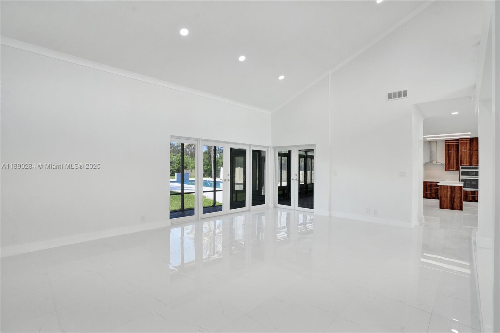Fully remodeled home with luxury finishes. Modern kitchen with new LG appliances, built-in oven/microwave combo, cooktop, range hood, and quartz countertops. Open layout with porcelain floors, double-height ceilings, LED lighting, and modern stairs with metal, wood, and glass design. All bedrooms feature new closets; the master suite includes a walk-in closet and a jacuzzi bathroom. Renovated pool, new landscaping, paver driveway, new washer & dryer. Impact windows/doors. Plenty of parking space for multiple vehicles. Surrounded by lush vegetation in an exclusive and secure neighborhood.