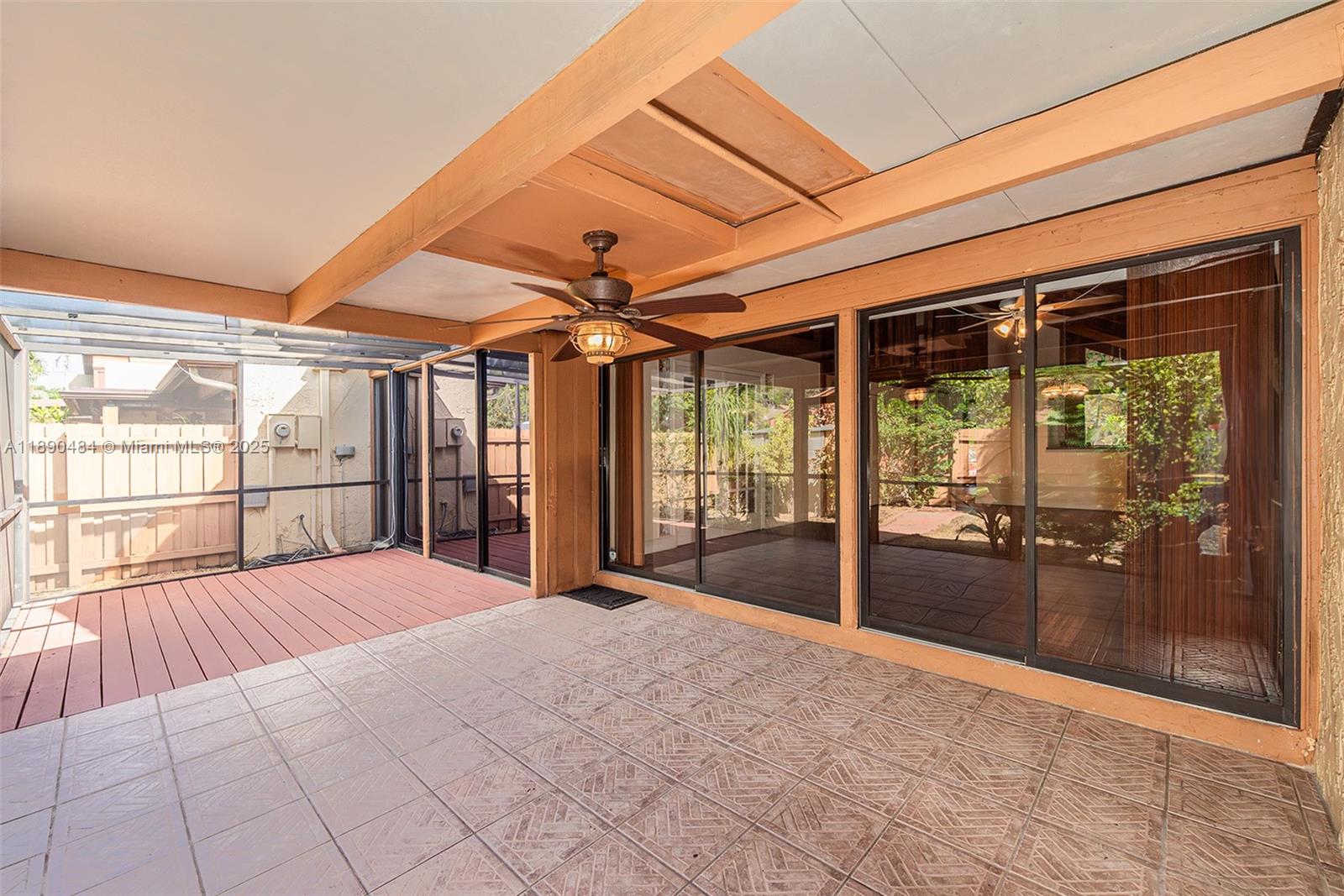 Rarely available 2BR/2BA townhome in the highly sought-after Lofts of Palm Aire - must be seen to be appreciated! This home features vaulted ceilings with wood beams, a loft, open layout, kitchen with granite countertops, 2023 AC, washer & dryer, a private driveway, underground powerlines & fenced backyard. The primary suite is spacious and includes a walk-in closet and updated bathroom. Enjoy a private patio and yard with a large shed for extra storage. Amenities include community pool in tropical setting, with solar heating for year-round use, tennis courts, dog park & more. Located minutes from the FL executive airport, beaches, highways, restaurants, shopping & more. Only $100/monthly maint.