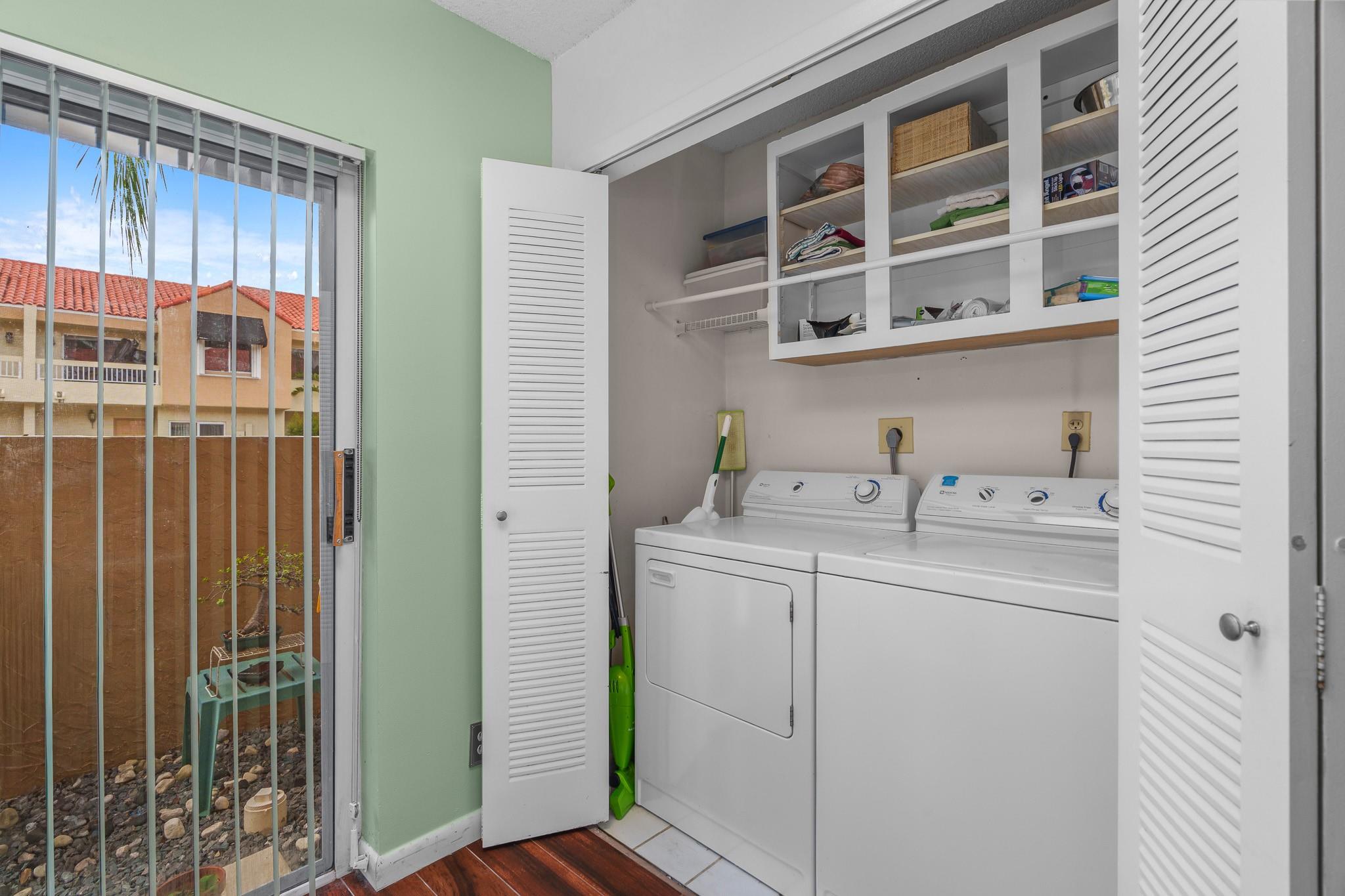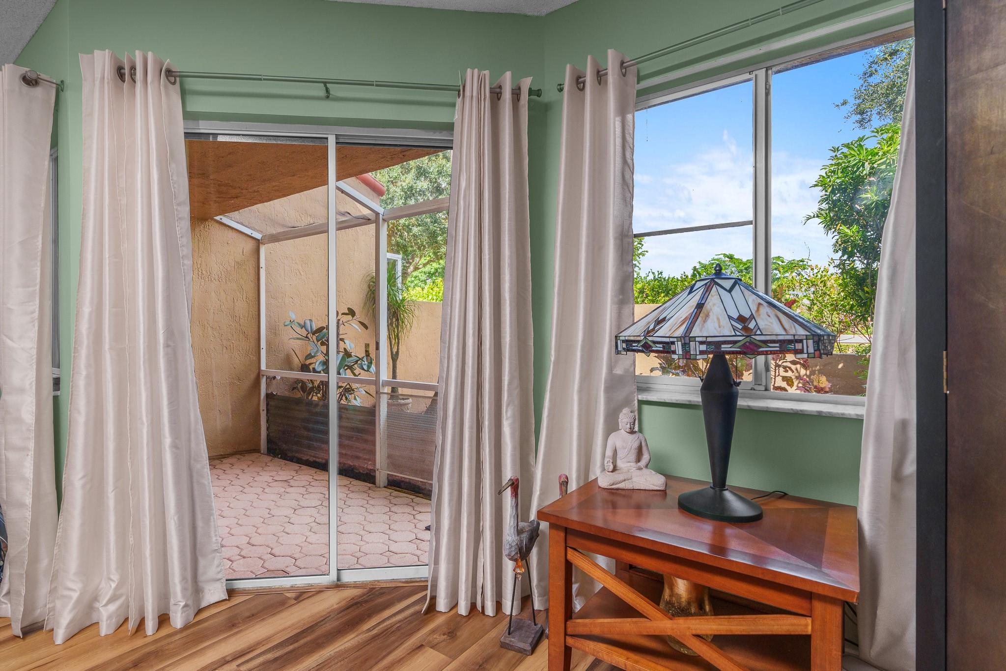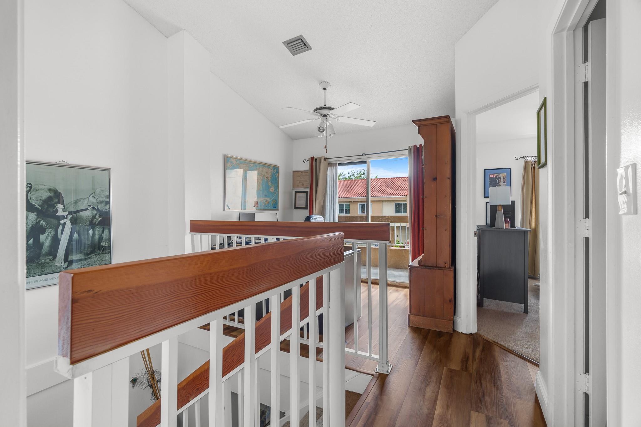 DAHLIA TOWNHOMES 2/2.5 + loft awaits you in desirable Plantation. Ideal floor plan with 2 bedrooms and 2 baths upstairs and a powder room downstairs for guests. Light floods the first floor with a warm feel for a gracious living space. Gourmet eat-in remodeled kitchen, peaceful & serene back patio overlooking a lush garden. Exterior storage room. Hardwood floors throughout the first floor and loft area upstairs. Accordion storm shutters throughout; 2 designated parking spaces at your front door; playground; low monthly maintenance $400. Pet friendly community. NEW ROOF 2026 pre-paid in full by Seller; Minutes to Central Park, shopping, restaurants, Sawgrass Mall, movie theatres, hospital, houses of worship etc. Easy drive to the airport and more.