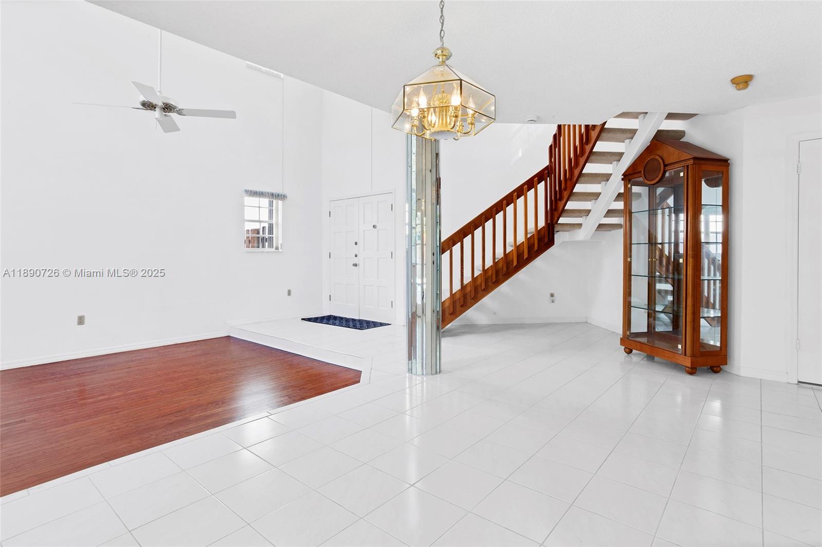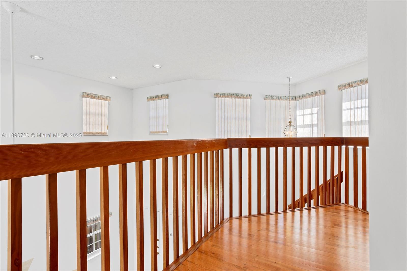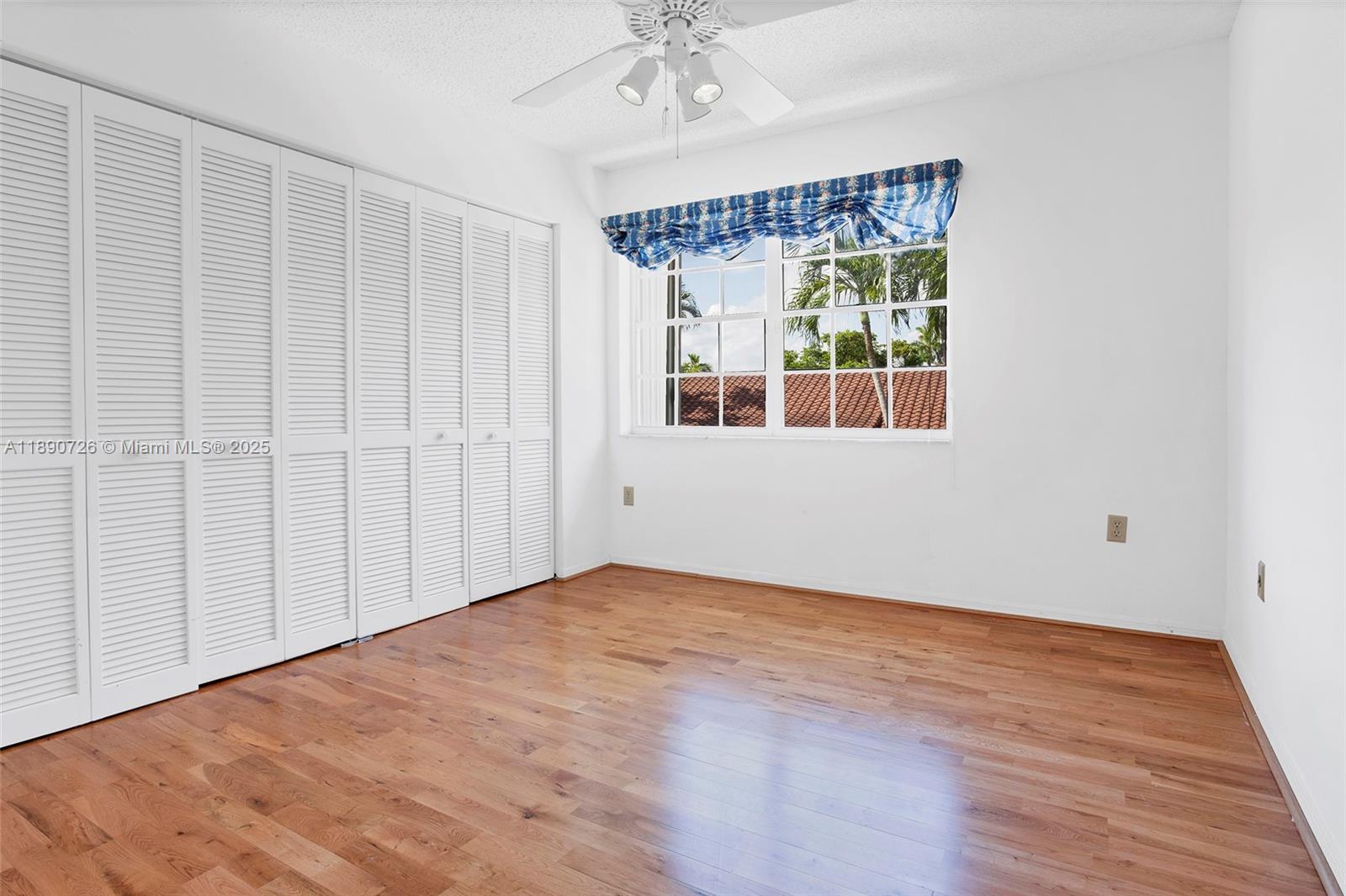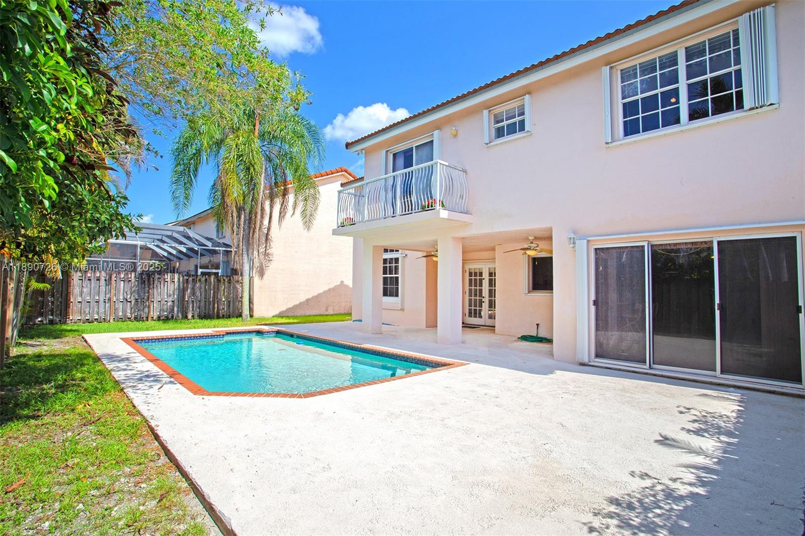 Step through the front door into a soaring, voluminous ceiling and grand arched window that invites natural light to pour in, creating an instant sense of spaciousness. French doors and sliders open to a private pool and patio - ideal for entertaining. Storage abounds: 2 walk-in closets in two bedrooms and 1 wall-to-wall closet in the third. The primary suite has a private balcony. Additional features include a laundry room with a sink, a 2-car garage, a Roman tub, wood floors in the upstairs & living room, and hurricane shutters for all windows & doors, including the garage. All on a quiet street with friendly neighbors in a family-friendly community. Great schools, restaurants & shopping nearby.