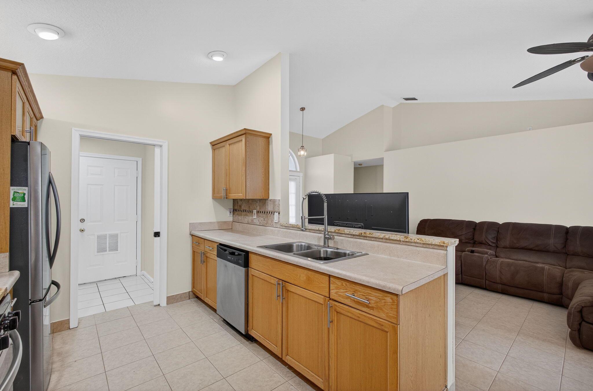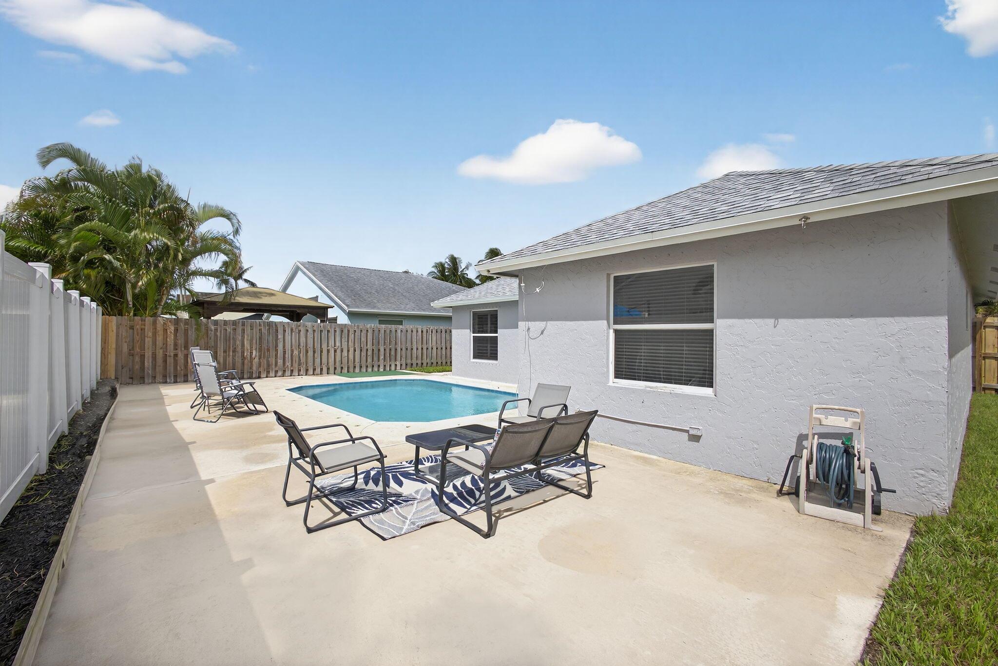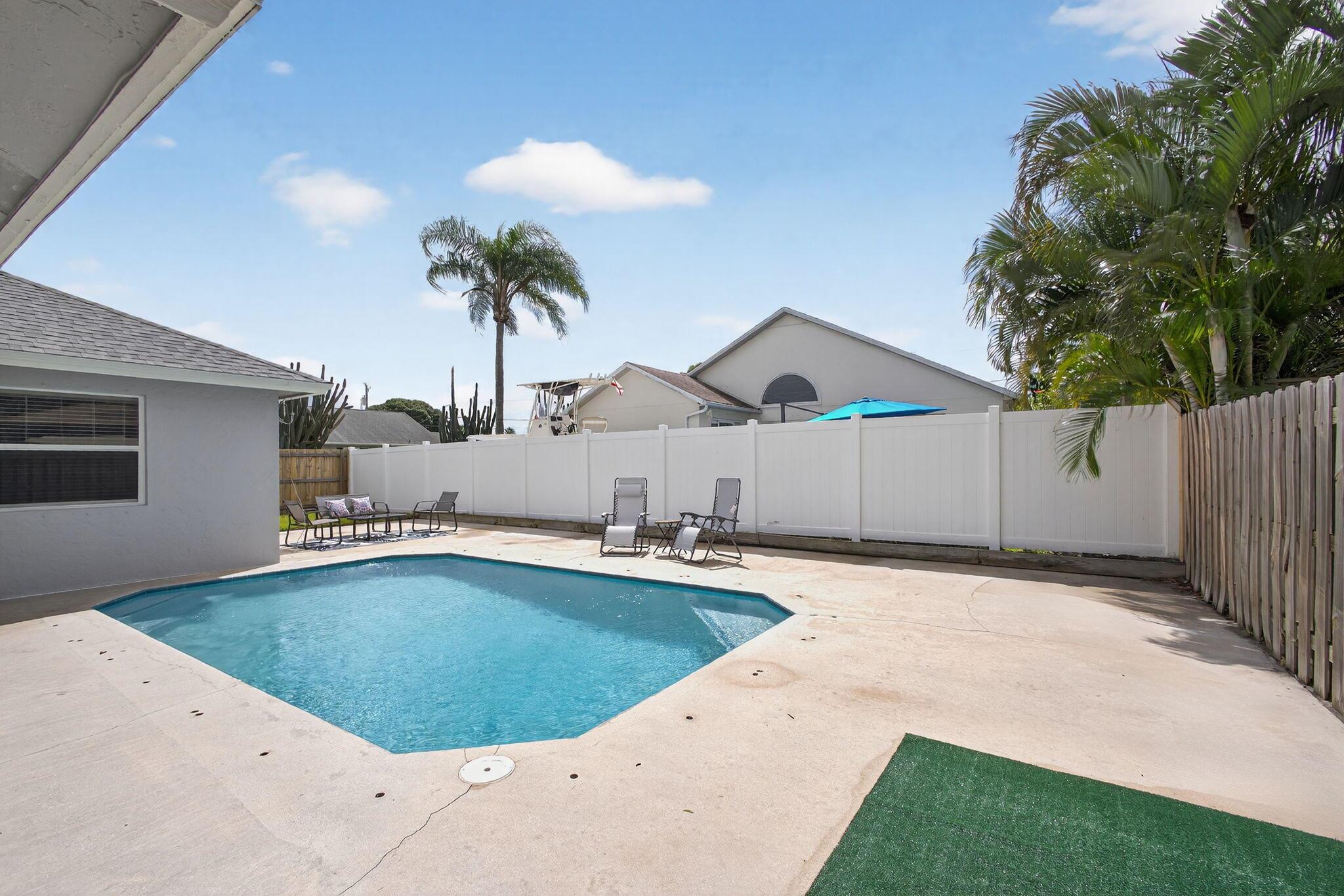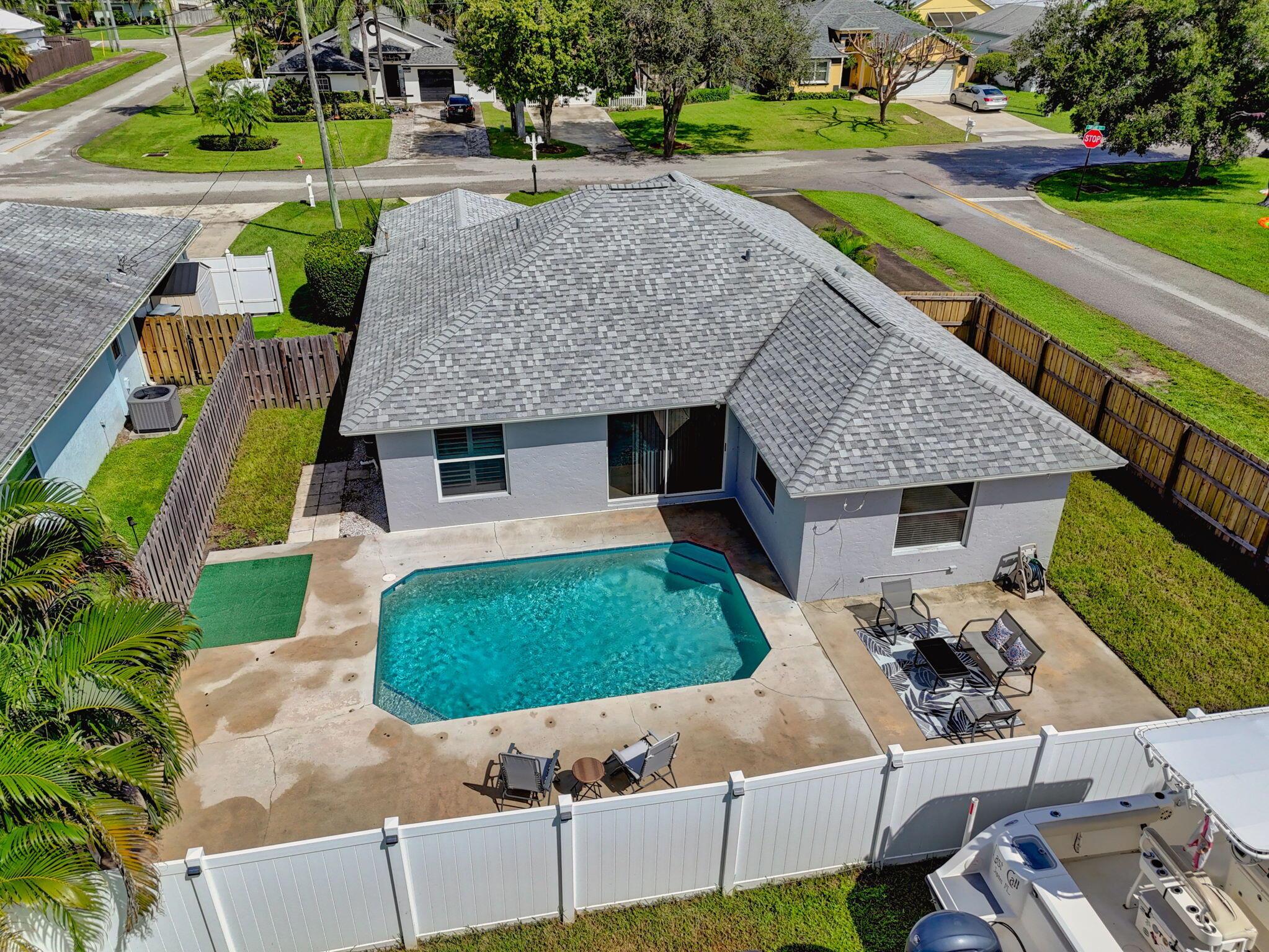 Welcome to this beautifully maintained pool home in the heart of Jupiter's sought-after North Palm Beach Heights!This 3-bedroom, 2-bath single-story home blends comfort, convenience, and classic Florida living. Step through the covered entry and into a bright, open floor plan where natural light flows across tile flooring throughout. The spacious living and dining areas feature vaulted ceilings and plantation shutters, creating an inviting atmosphere ideal for relaxing or entertaining.The kitchen sits at the center of it all -- equipped with stainless steel appliances, plenty of cabinet storage, and a long breakfast bar overlooking the living area, perfect for gathering with friends and family. The primary suite offers a quiet retreat