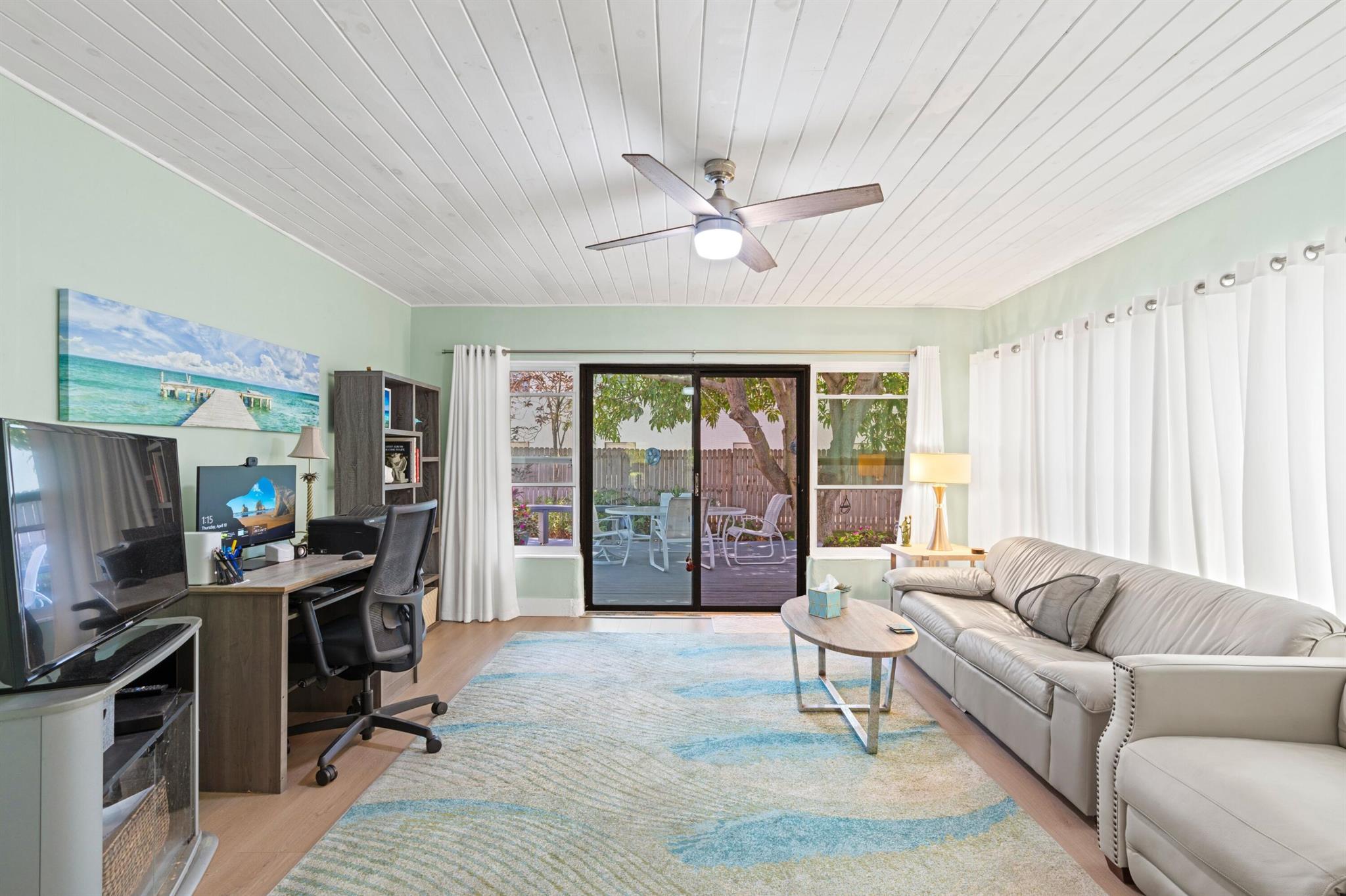 Lovely mid-century ranch style home with 3 bedrooms, 2 baths, and a 1 car garage. The home has new wood-grain flooring throughout, replaced windows, with accordion shutters, and updated kitchen. The Florida room opens up to the recently landscaped yard with new artificial turf, and deck. Citrus, and Mango trees, make for a tropical setting. The home is in move-in-condition, CBS construction, new A/C system, and not in the flood zone.