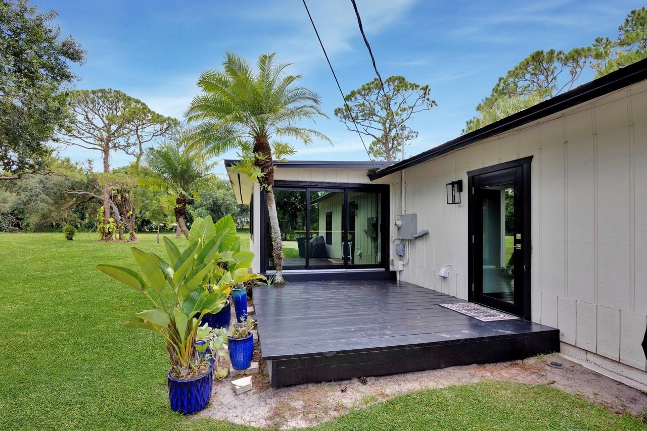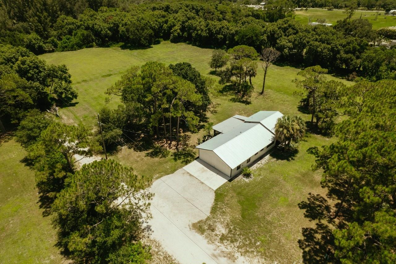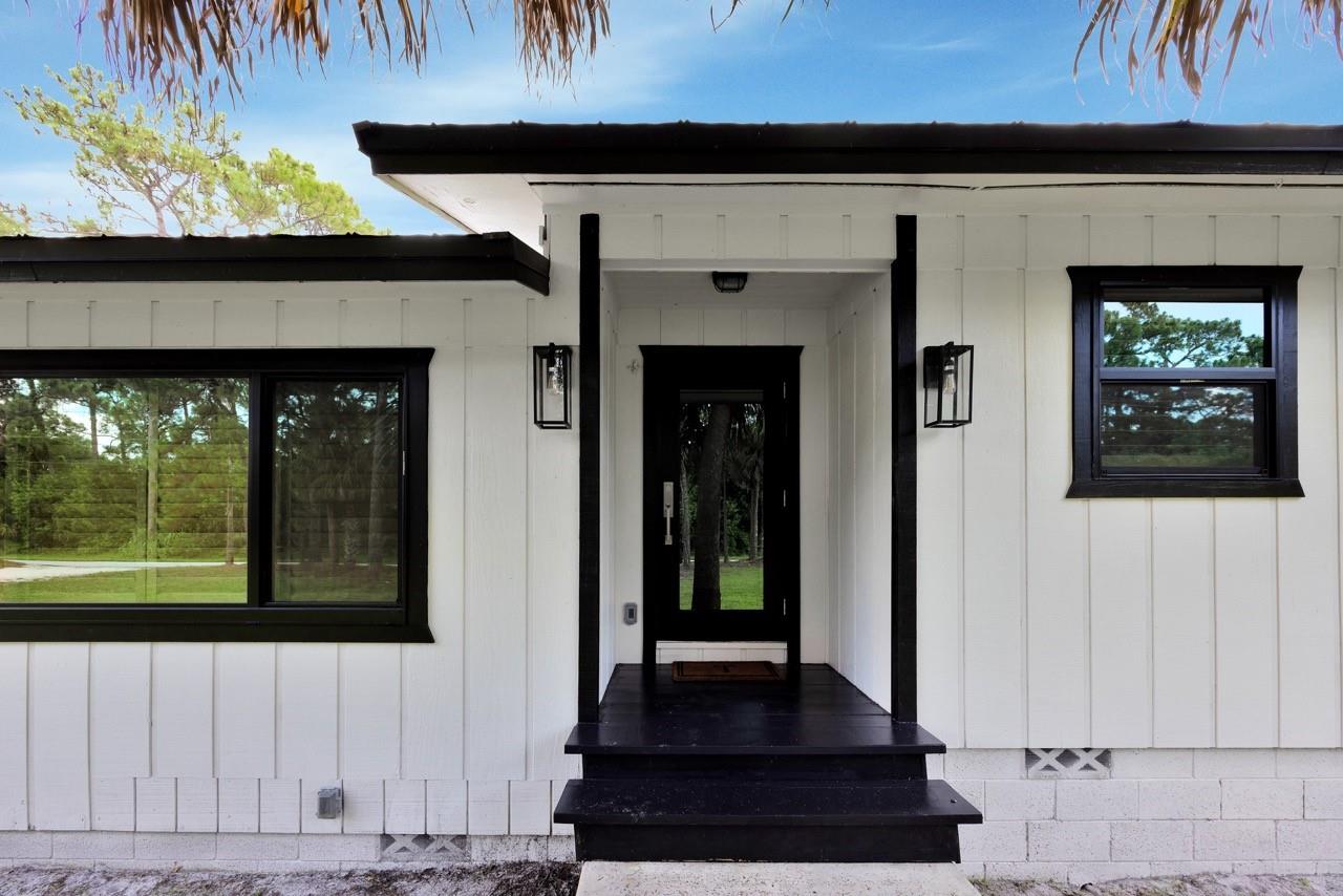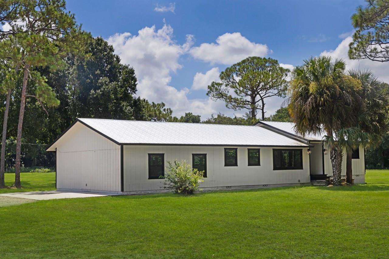 This cozy, newly remodeled three bedroom, two bath home is situated on 5 acres in the farms of Palm City. The rustic modern interior is an open plenum delight sporting high ceilings, exposed joists, a generous kitchen island, and a rec room. The sliding barn doors make the most of every inch. New roof (2023), New windows & doors (2024), repaired siding with fresh paint both inside and outside (2024), New water system & septic (2023), New appliances, re-fortified the sub-flooring, and completely cleared lot make this property & house almost unrecognizable from what it was 15 long months ago! There is also RV hook up which is attached to an outdoor shower & separate stand alone patio.