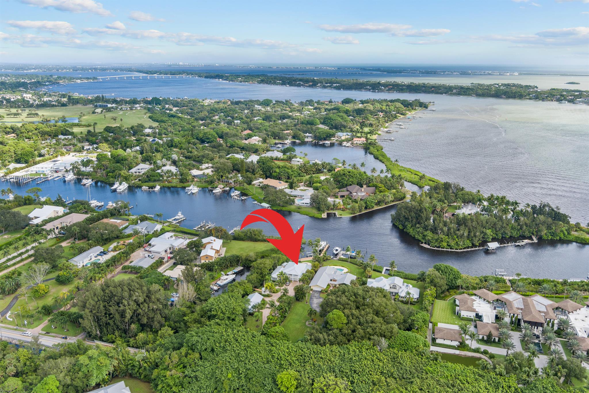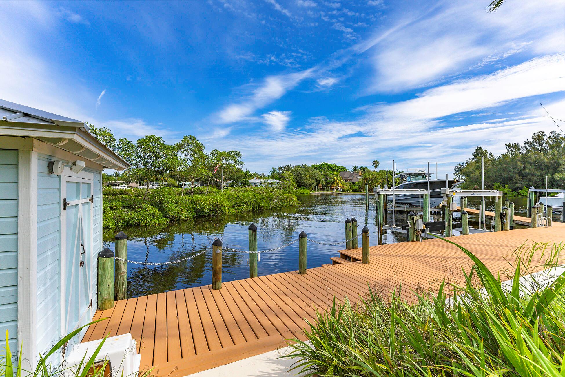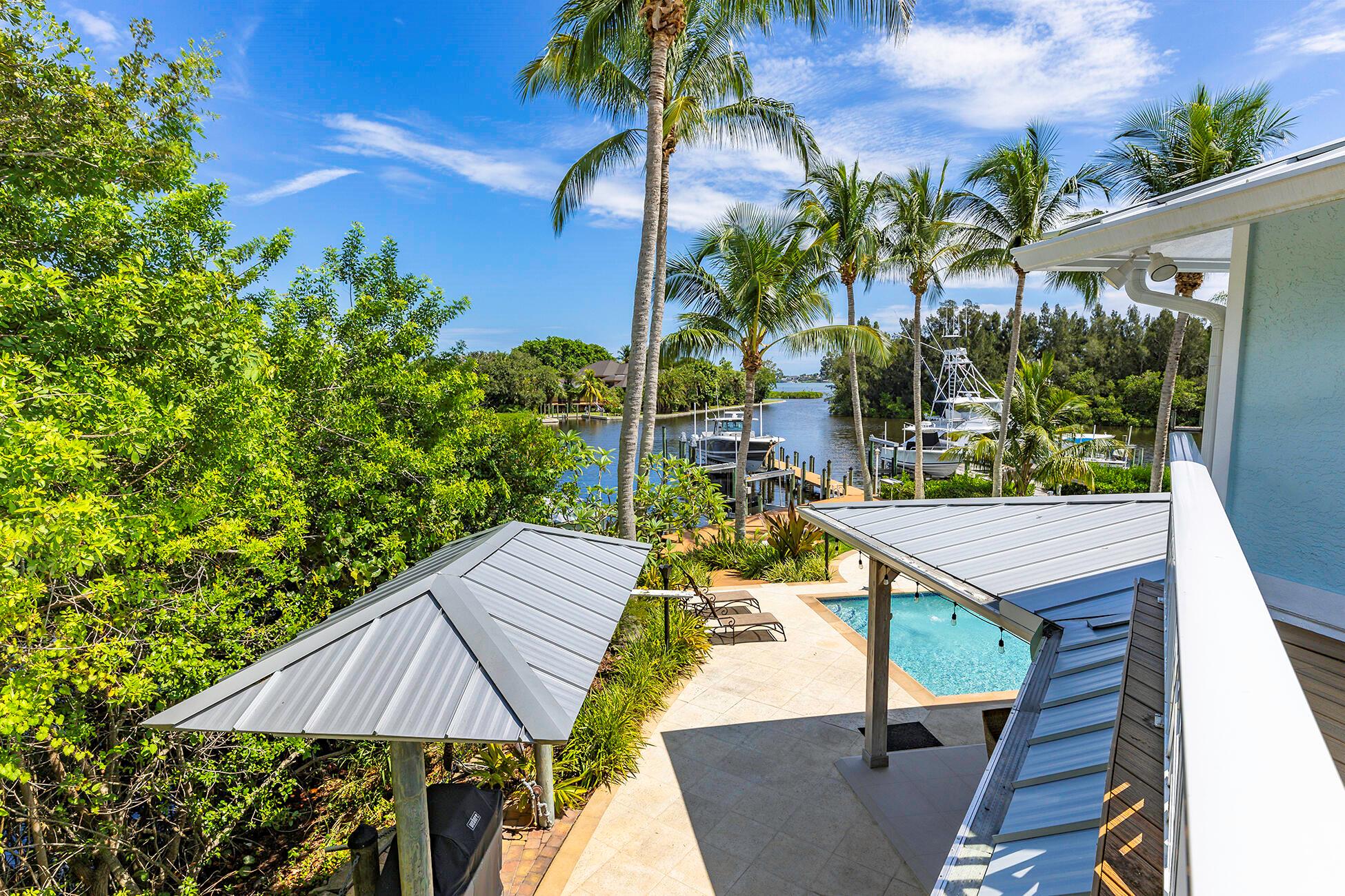The banyan tunnel leads you to a rare trophy WATERFRONT estate, so homes like this do not last. At the end of Stuart's most photographed road, your gated drive opens to nearly an acre of PRIVACY & 500' of protected shoreline with sweeping views toward the INLET and ''The Crossroads.'' Enjoy true deepwater dockage with multiple docks two lifts, room for an 80' yacht, & quick ocean access. Reimagined in 2023/2024 with a new standing-seam metal roof, full impact glass, whole-house generator, & new garage doors. The home blends timeless Key West architecture with modern coastal design. Perfect for true boaters and entertainers alike, with media room, balcony suite, heated saltwater pool, tiki bar, lush landscaping, guest house, no HOA, minutes from downtown Stuart, & not in a flood zone.