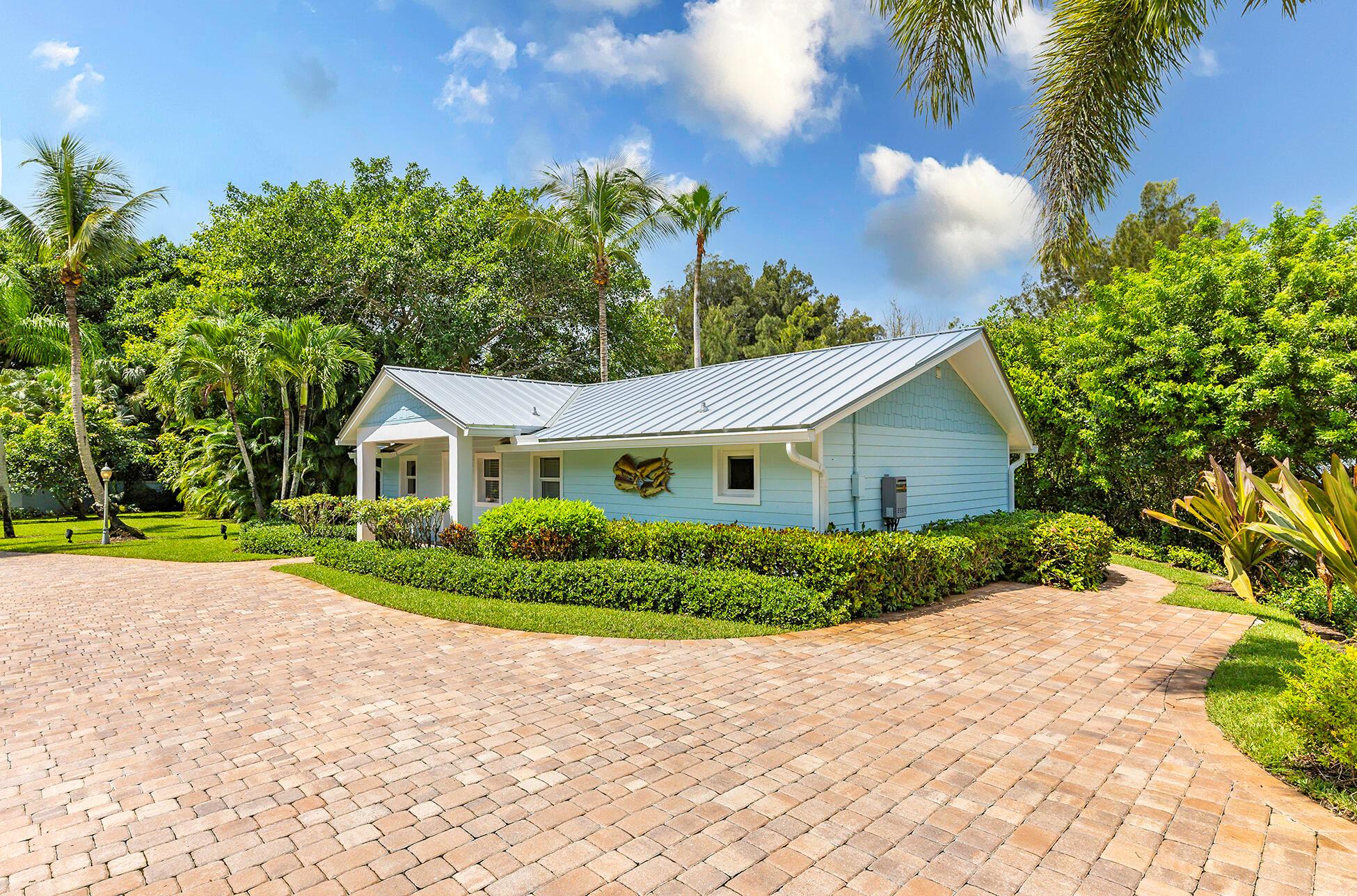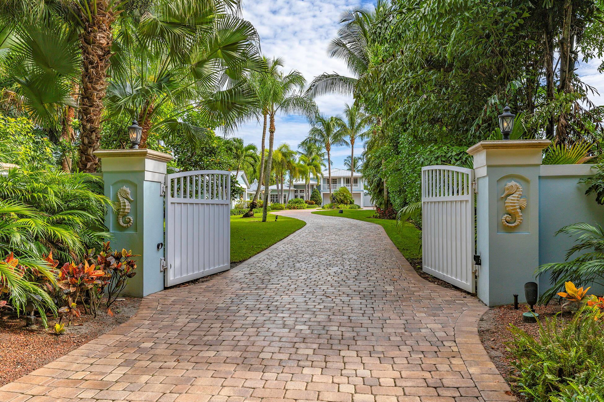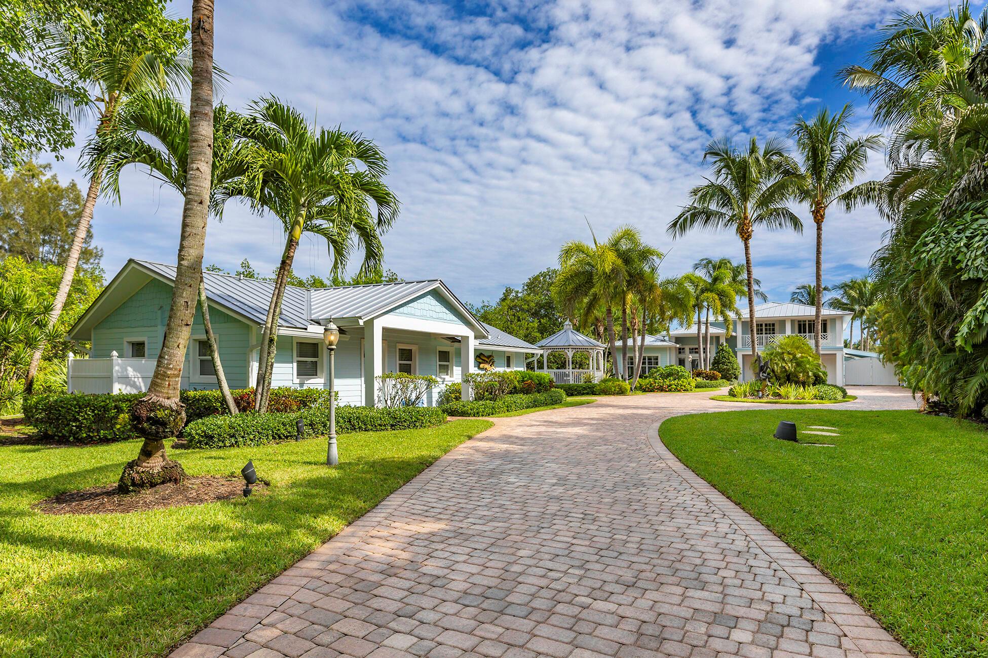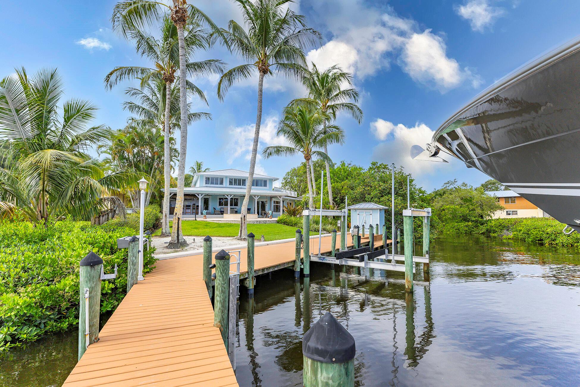 The banyan tunnel leads you to a rare trophy WATERFRONT estate, so homes like this do not last. At the end of Stuart's most photographed road, your gated drive opens to nearly an acre of PRIVACY & 500' of protected shoreline with sweeping views toward the INLET and ''The Crossroads.'' Enjoy true deepwater dockage with multiple docks two lifts, room for an 80' yacht, & quick ocean access. Reimagined in 2023/2024 with a new standing-seam metal roof, full impact glass, whole-house generator, & new garage doors. The home blends timeless Key West architecture with modern coastal design. Perfect for true boaters and entertainers alike, with media room, balcony suite, heated saltwater pool, tiki bar, lush landscaping, guest house, no HOA, minutes from downtown Stuart, & not in a flood zone.