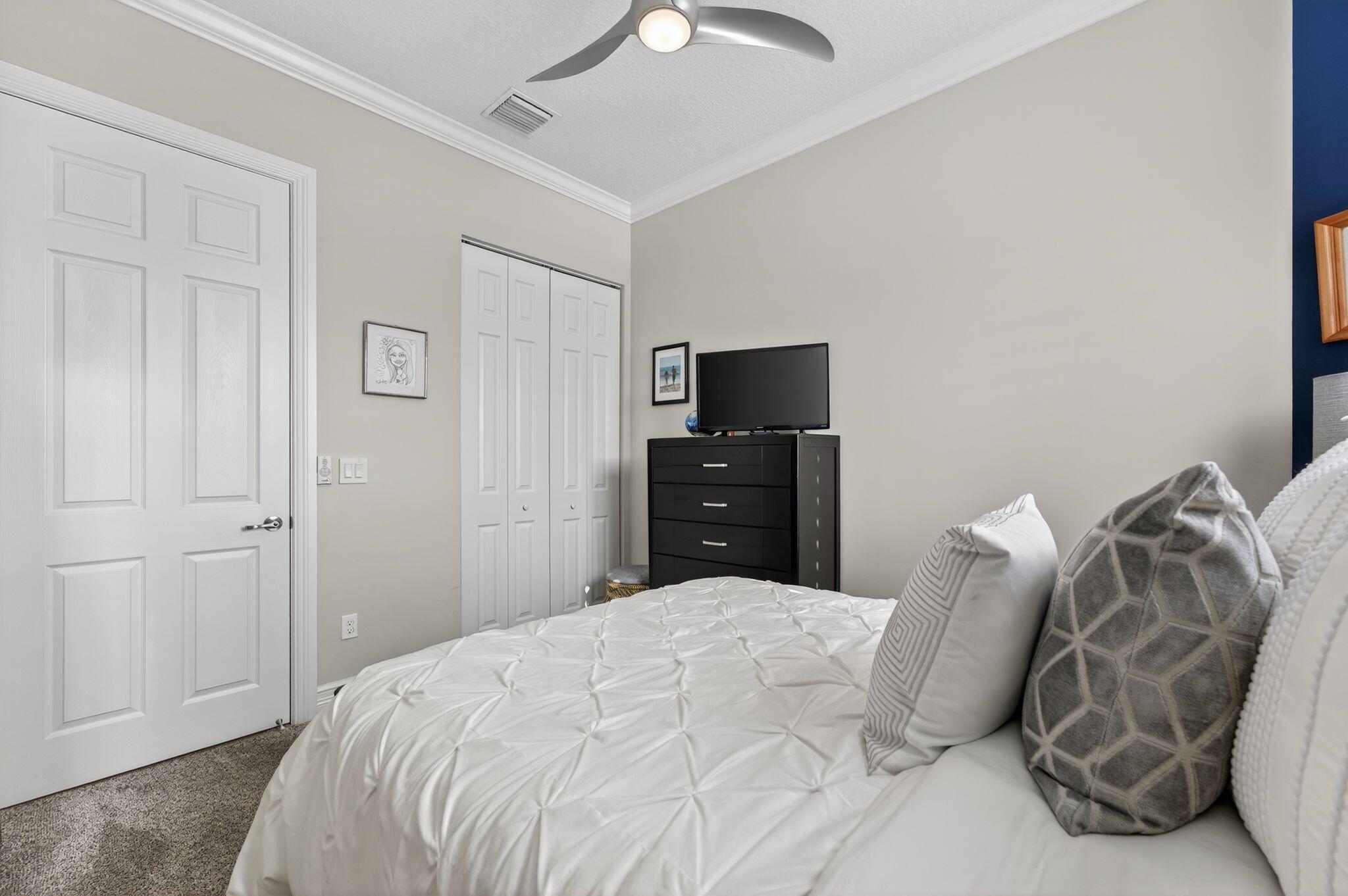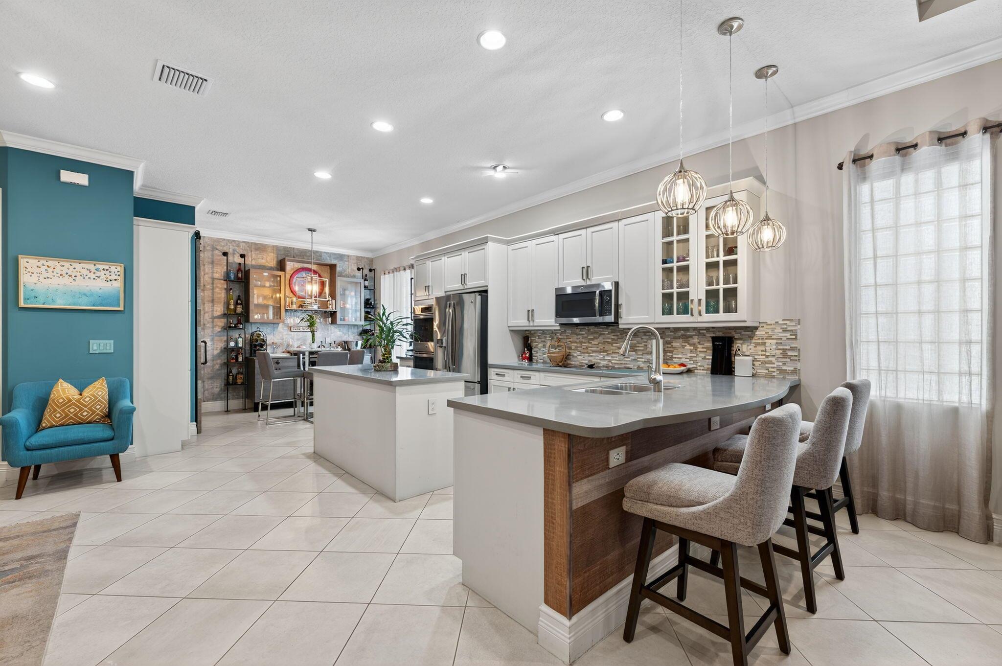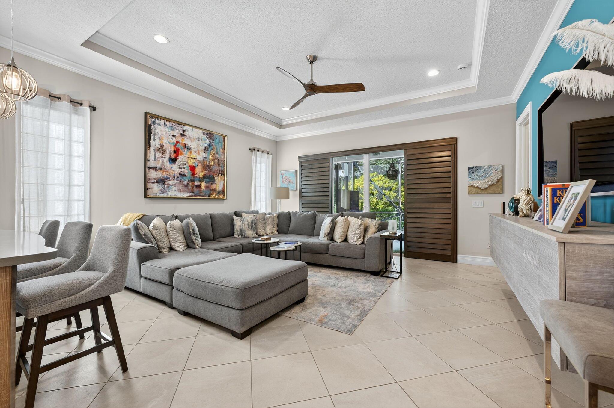 Welcome to Villaggio Reserve, one of Delray Beach's most desirable active lifestyle communities. This beautifully maintained home is filled with thoughtful upgrades and designed for comfort, style, and easy living.The interior features an open, light-filled layout with crown molding, plantation shutters, and elegant finishes throughout. The living area includes custom built-ins and upgraded lighting and fans, while the den offers flexibility with a full library wall, built-in cabinetry, and a queen-size Murphy bed for guests. The primary suite showcases two custom walk-in closets and beautifully upgraded bathrooms with modern bidet toilets. Additional highlights include a Bosch dishwasher, a bar with wine fridge, and a barn-style door leading to the laundry room.The backyard