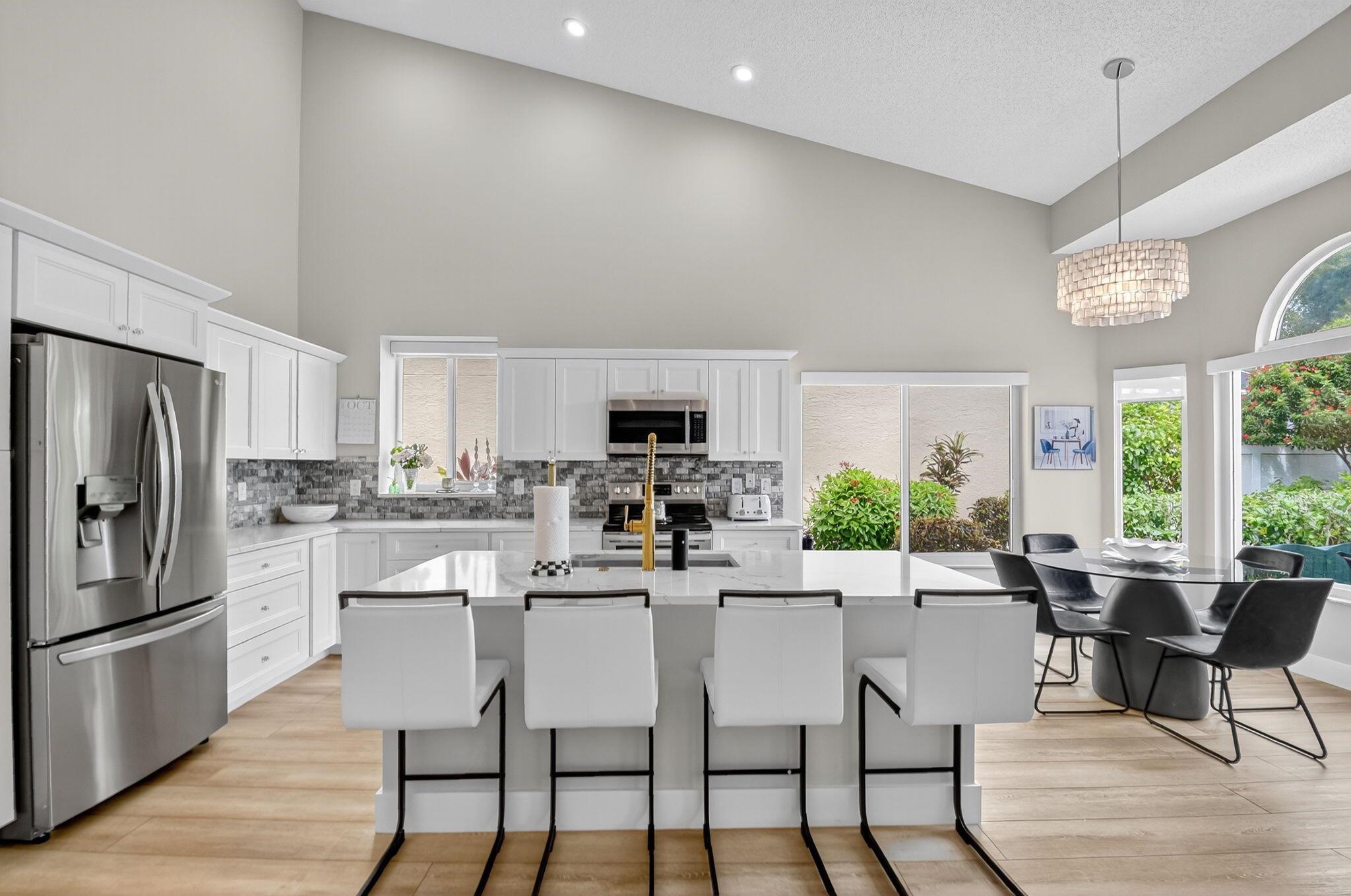 Welcome to this beautifully updated 3-bedroom, 2-bathroom home in the desirable Bermuda Isle community of Aberdeen Golf & Country Club. Featuring an open, spacious floor plan with stylish new luxury vinyl flooring, this move-in-ready residence is perfect for both relaxing and entertaining.Enjoy the serenity of your professionally landscaped, private backyard complete with lush greenery and new turf. The expansive glass-enclosed lanai offers the perfect spot to take in the view year-round. The modern eat-in kitchen, nearly brand new, boasts sleek finishes and opens seamlessly to the large family room, ideal for hosting gatherings. Both bathrooms have been remodeled adding a touch of luxury to everyday living.