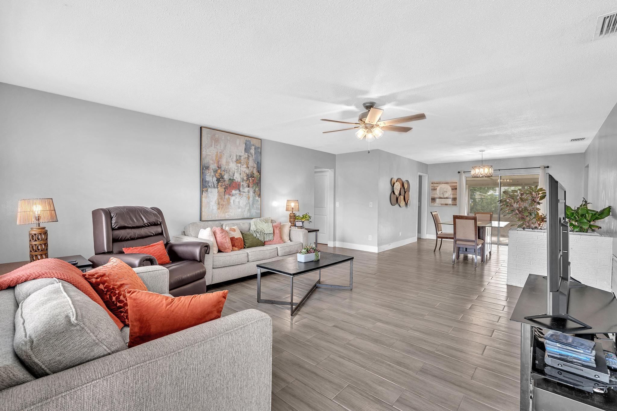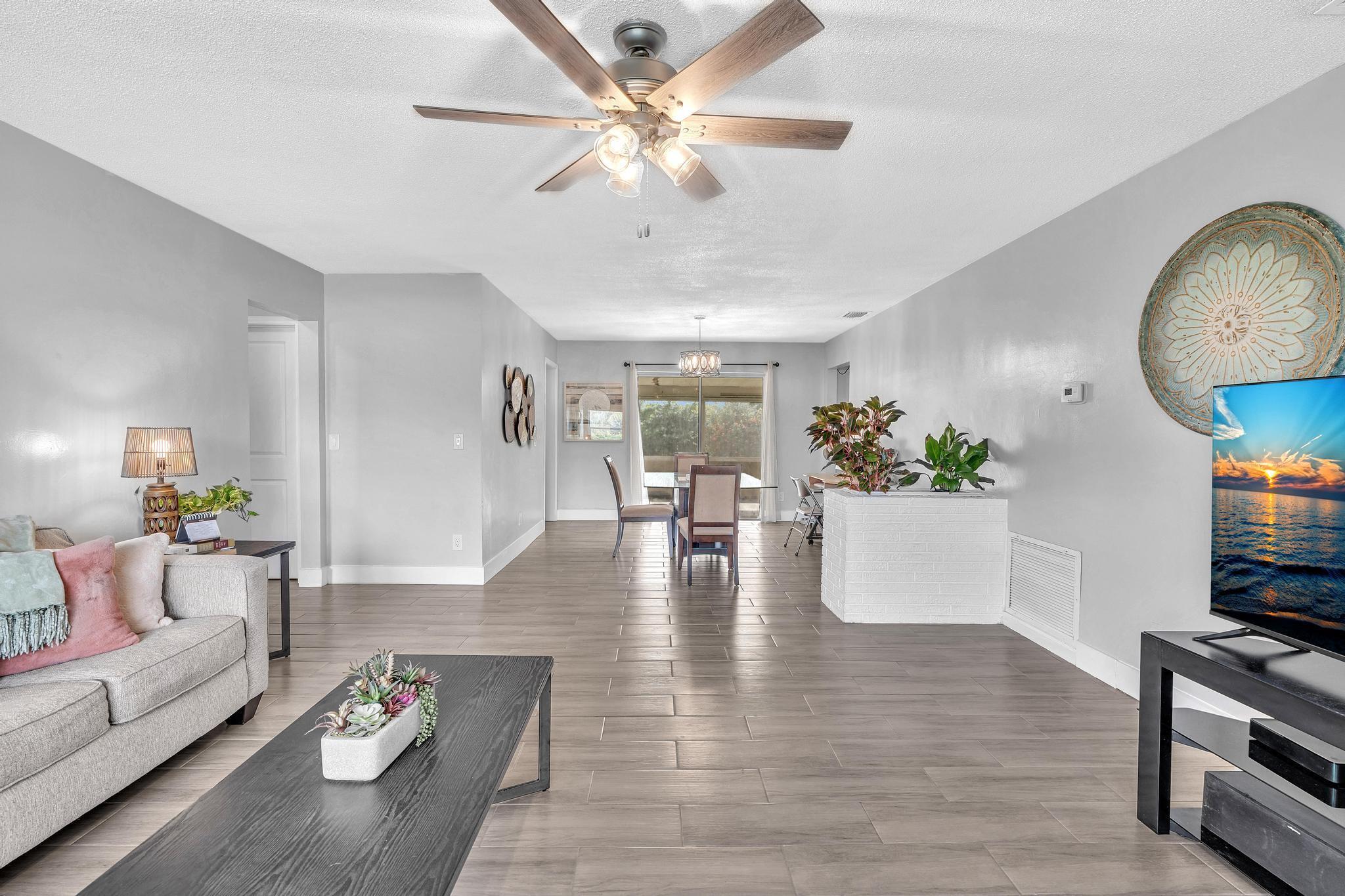Step into this beautifully updated single-family home offering 3 bedrooms and 2 full bathrooms in the desirable Roosevelt Estates community. Bright, inviting, and thoughtfully refreshed, this residence is perfect for modern living, whether you're relaxing, hosting friends, or creating lasting family memories. Inside, you will find a spacious open-concept layout filled with natural light, featuring fresh interior and exterior paint, newer flooring throughout, and a tastefully remodeled bathroom. The modern kitchen is equipped with stainless steel appliances, ample cabinet space, and a functional design that makes cooking and entertaining effortless. Each bedroom is comfortably sized, ideal for a family, guests, or a dedicated home office.