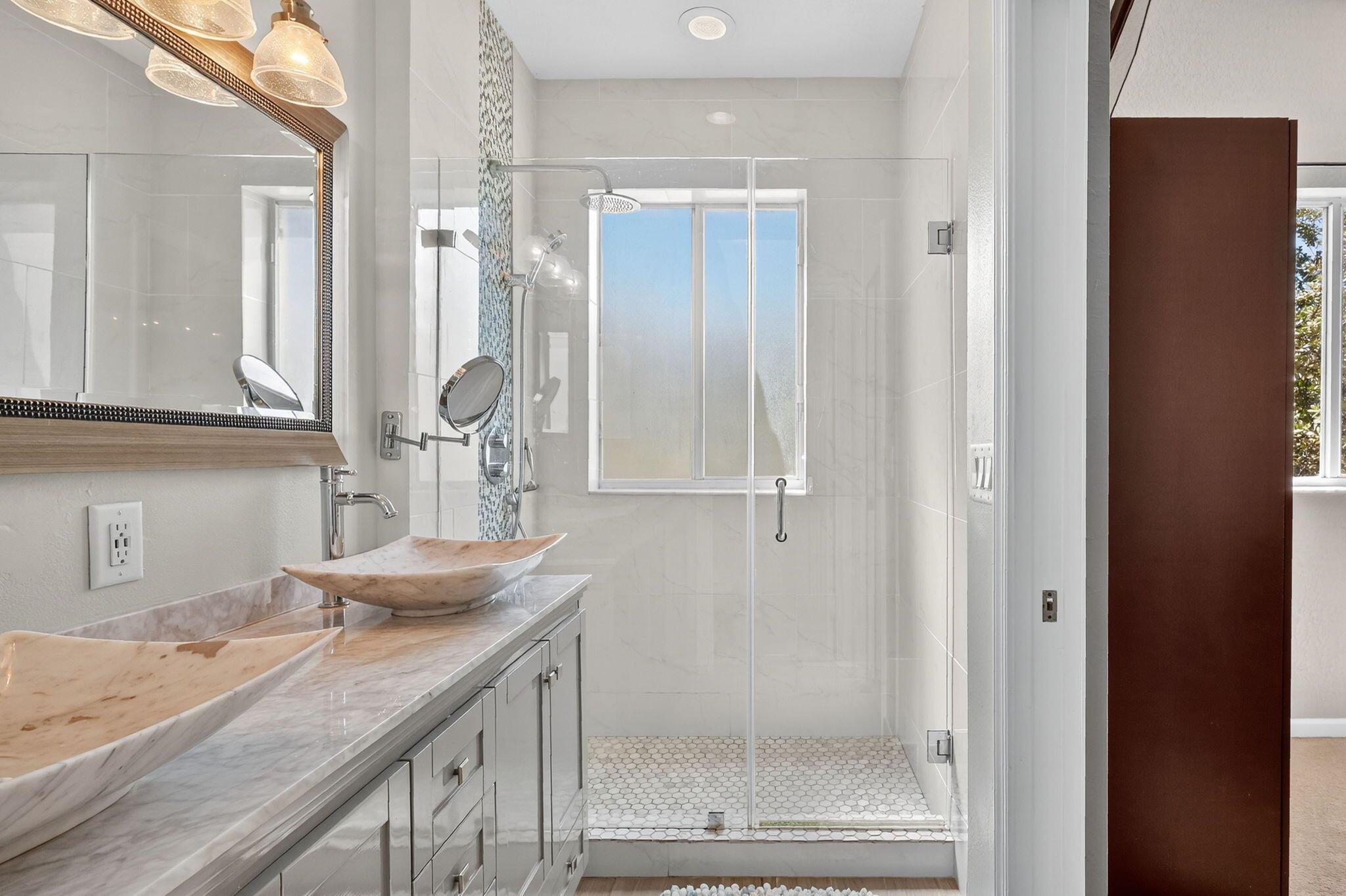 This clean and well-maintained townhome in the gated Villa Rosa community has been meticulously cared for and upgraded by its original owner. In addition to a newer A/C, stainless steel kitchen appliances and front-loading Maytag washer and dryer, this pristine residence also has a recently renovated primary bathroom complete with dual vessel sinks and walk-in rainfall shower with frameless glass enclosure. Relax at the community pool or on your private patio. Convenient location close to great shopping and food. Valuable HOA covers roof maintenance, pool, building insurance, lawn care, pest control and more. Schedule your private showing today and experience the comfort and upgrades this home can offer you!