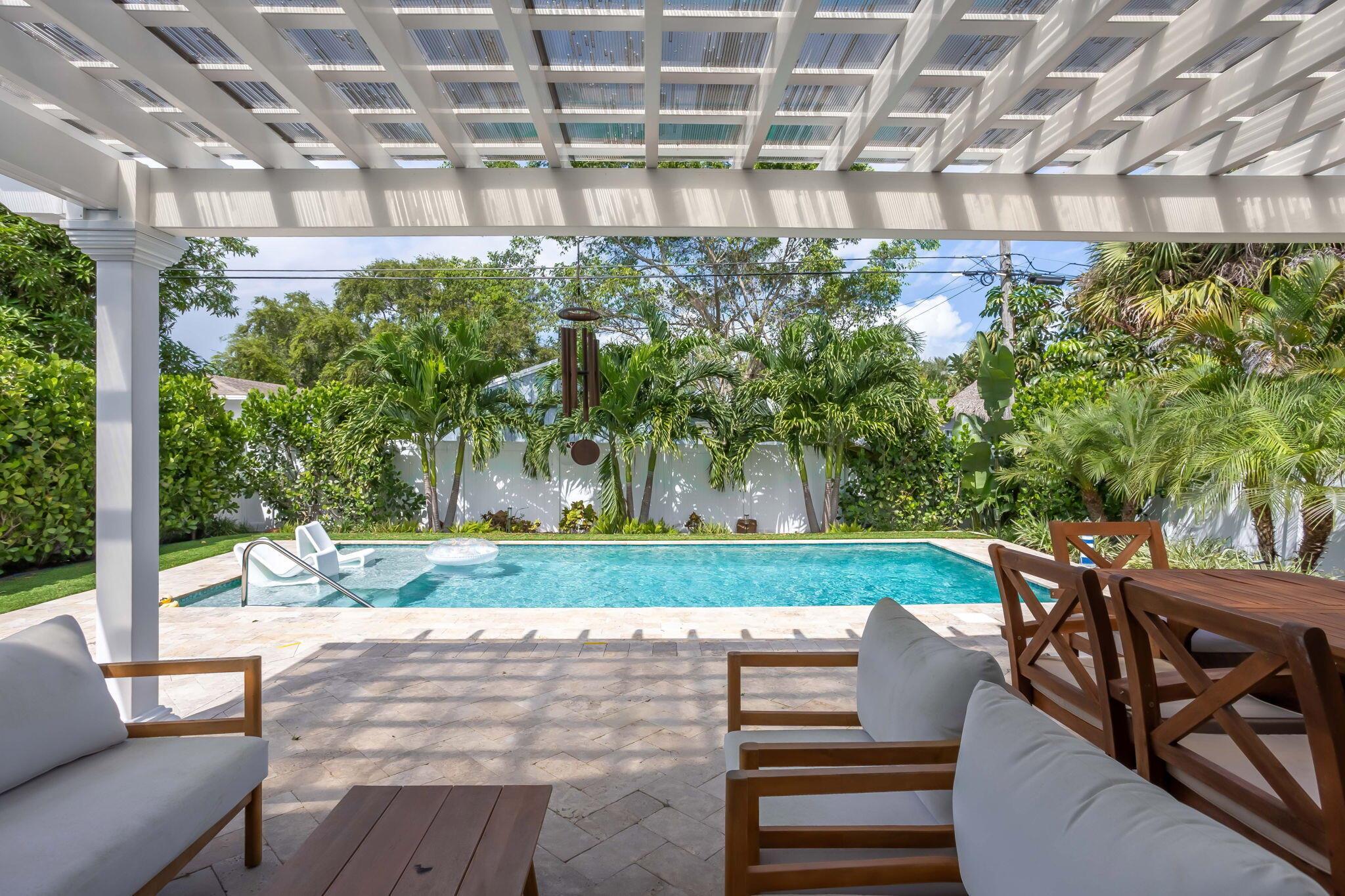 A private retreat just steps from Atlantic Avenue, Pineapple Grove, and the beach, this exquisitely updated single-story residence captures the essence of refined coastal living. Blending timeless charm with modern sophistication, the home offers a rare opportunity to enjoy Delray's most coveted lifestyle--walkable, vibrant, and effortlessly elegant.Inside, soaring ceilings and an open, light-filled layout create a sense of space and flow. Thoughtful updates throughout--including premium flooring, sleek fixtures, and beautifully reimagined kitchen and baths--bring a fresh, contemporary edge while honoring classic style.The backyard is a sanctuary of its own, anchored by a resort-style pool (2022) with travertine deck and sun shelf, framed by lush, mature landscaping for ultimate