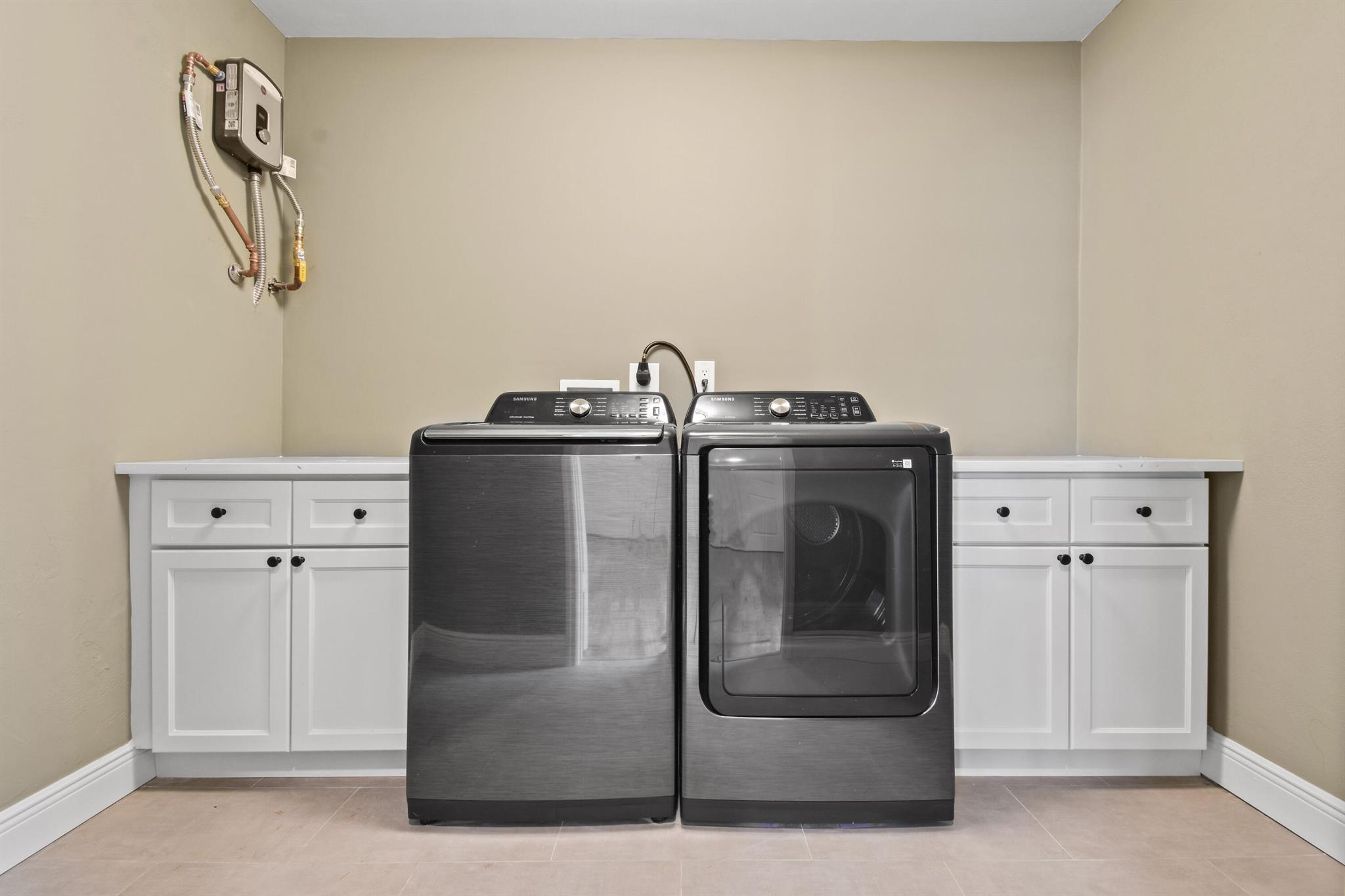 Thoughtfully designed and expertly curated fully remodeled 4-bedroom, 2-bath pool home in one of Palm Beach Gardens' most desirable NO HOA communities. Easy to show and move-in ready! Features a brand-new shingle roof (2025), PGT impact windows and doors (2025), tankless water heater, new sod, irrigation, and landscaping. Inside offers new waterproof LVP flooring, designer finishes, West Elm lighting, custom trim, and a stunning arched dry bar with Taj Mahal counters and white oak cabinetry. The kitchen features Samsung stainless appliances, Taj Mahal tops, a 5-ft island, and all-wood soft-close cabinetry. Includes a LARGE LAUNDRY ROOM with two quartz counter, resurfaced pool, screened patio, and fenced yard. Exceptional location near PGA Blvd, parks, golf, dining, shopping, and beaches.