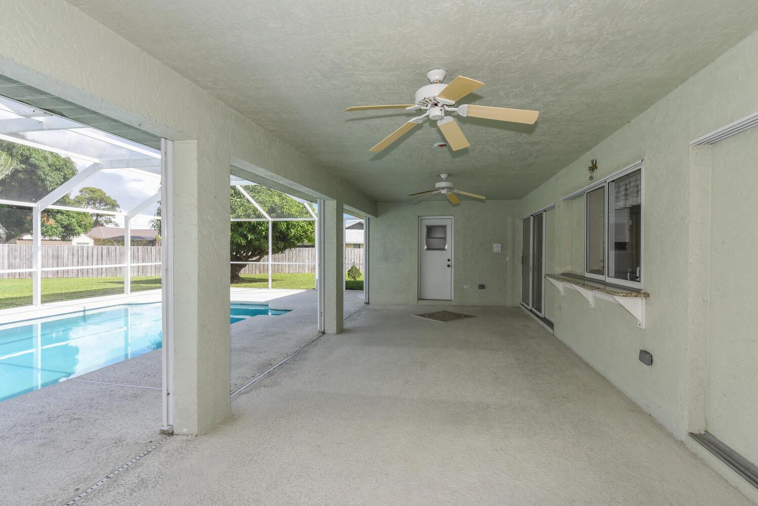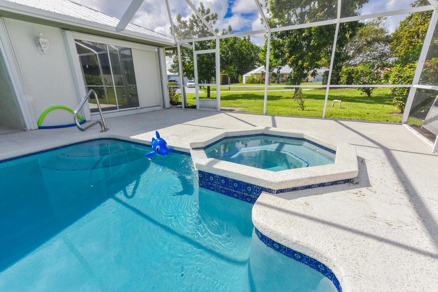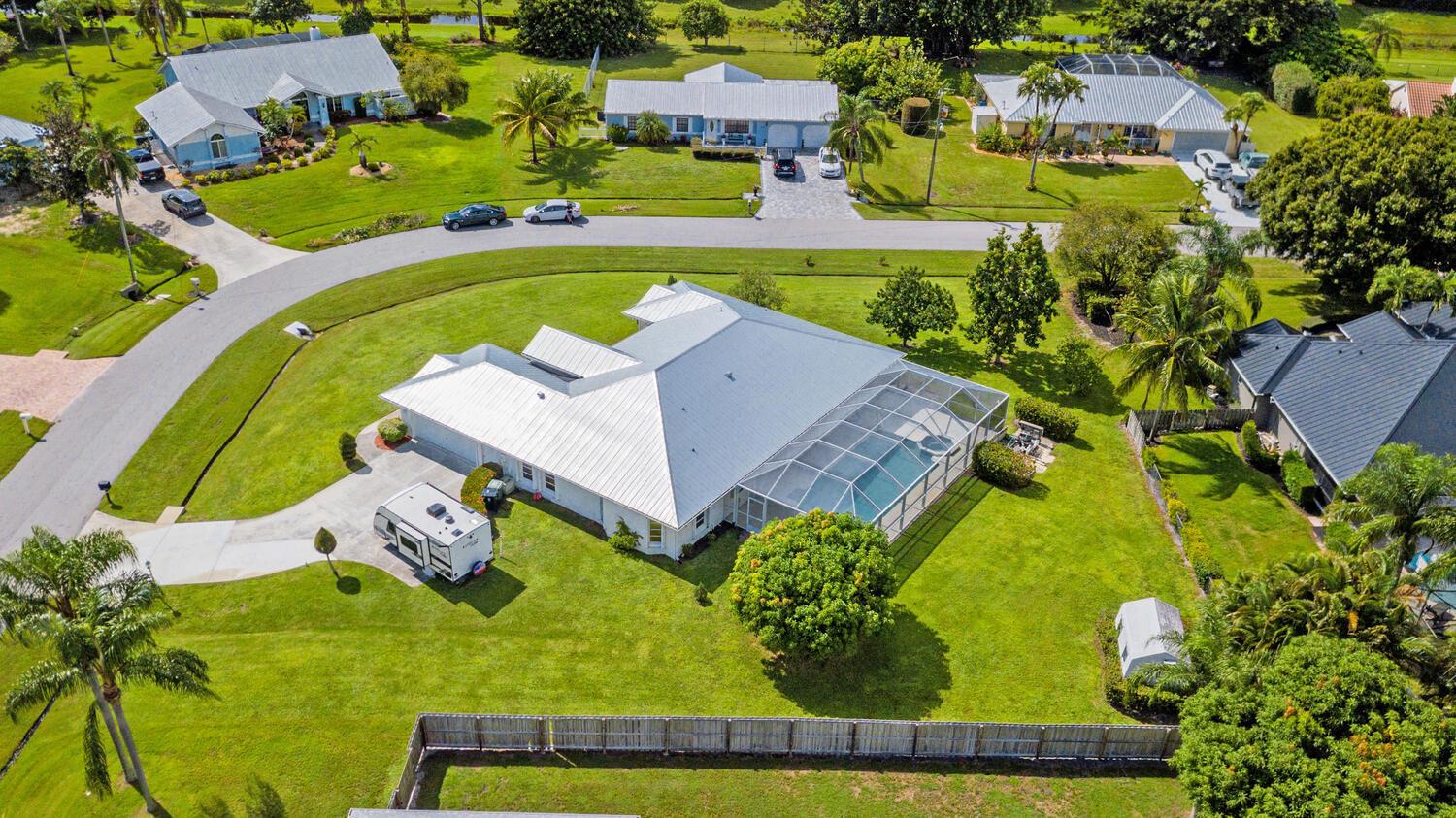 Sandpiper Bay- Home of the Saints Golf Club & St. Lucie Botanical Gardens. NO HOA FEES! Well-maintained CONCRETE BLOCK HOME with 2,600 sq. ft. under A/C, Sunny , bright & happy. 2019 Metal Roof, Accordion shutters Etc. This impressive residence features 4 bedrooms, enormous country kitchen that boasts granite countertops and new appliances ,formal dining room, family room w/ pool view and a spacious living room.Set on over half an acre of beautifully landscaped land, this home features a full-length covered lanai overlooking a recently resurfaced pool with spa, measuring 37 feet by 19 feet. Boat/Truck/RV parking OK . Enjoy the tranquility of this community, which has only one road in and out, conveniently located near beaches, shopping, hospitals, top-notch schools & Treasure Coast Mal