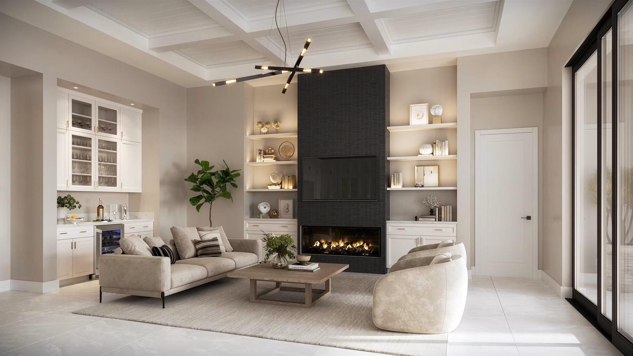 Gourmet kitchen including stacked cabinets, a gas cooktop, and presents a 42-inch built-in refrigerator. The great room features a cozy gas fireplace with tile surround. Throughout the home, you'll find porcelain tile flooring and wood trim details, including a tongue-and-groove ceiling in the great room, dining room, and foyer, as well as square recessed lighting and linear vents. Currently under construction, this home is slated to be completed in time for the Season! Call for more details.