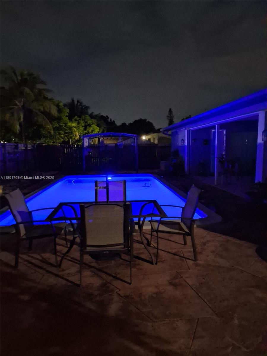 EXCELLENT Opportunity - PRICED TO SELL FAST. NO HOA. This home comes Equipped with Home Theatre system completely wired for speakers and Monitor, CCTV 16 cameras plus monitor with 3 months of rewritable storage. Large Olympic size pool home with 3 bedrooms 2 baths Family room and large Living room on a huge lot 75X100. The spacious fully fenced includes Gazebo and outdoor furniture. New roof Shingle, plus new attic insulation for comfort and efficient utility. Accordion shutters on main Entrance and large Patio opening. All openings have hurricane rated wood panels. Includes an explosion proof Diebold Co. Safe.