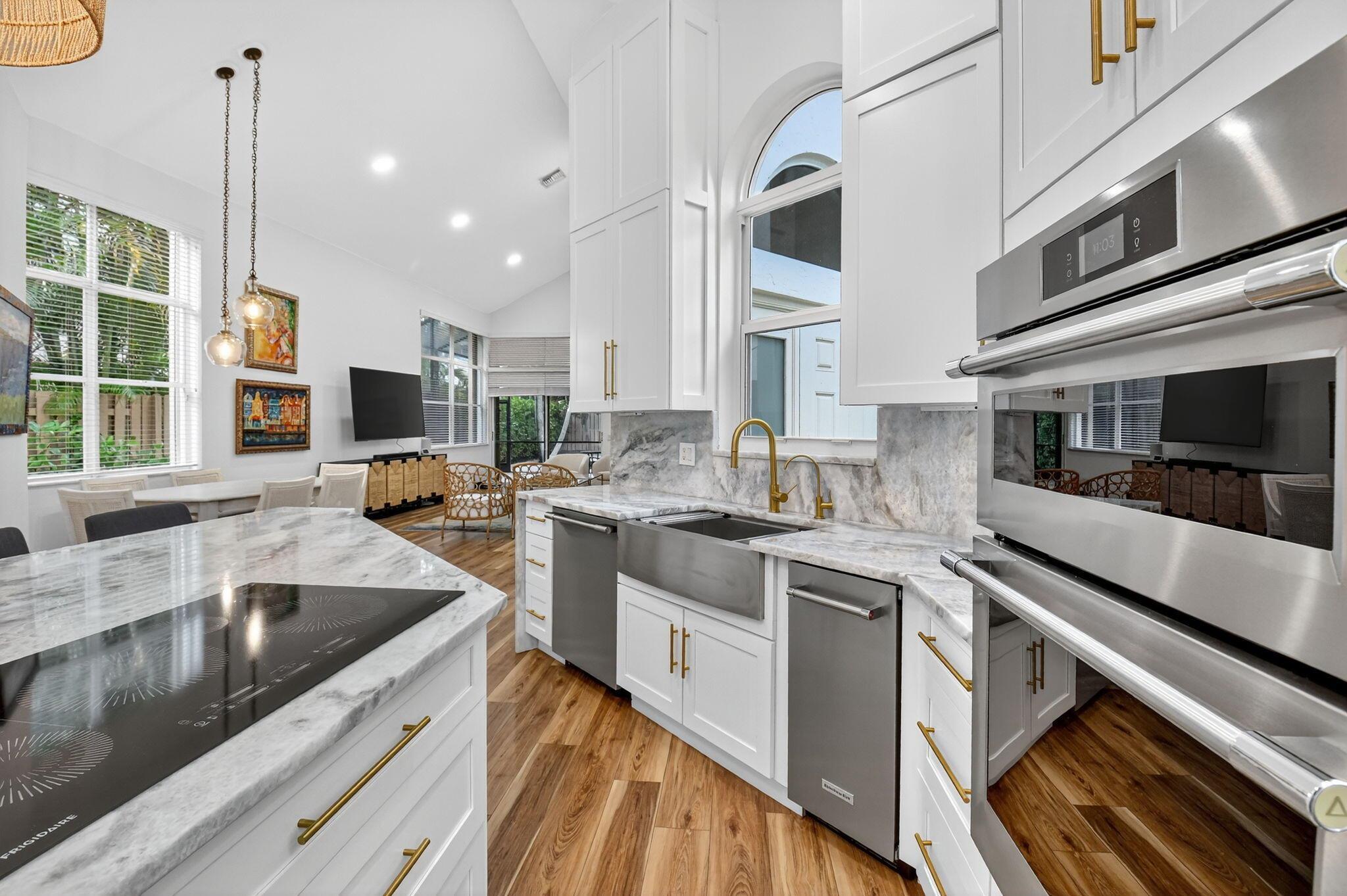 Welcome to your dream home in the prestigious Banyans Village of Broken Sound! This stunning single-story, residence has been meticulously renovated to offer modern luxury and comfort. Step inside to discover an open and inviting floor plan featuring three spacious bedrooms and three elegantly appointed bathrooms. The heart of the home is the gourmet kitchen, boasting a large marble center island that's perfect for entertaining and culinary adventures. High-end stainless steel appliances, custom cabinetry, and exquisite finishes complete this chef's paradise. The living and dining areas are bathed in natural light, creating a warm and welcoming atmosphere.
