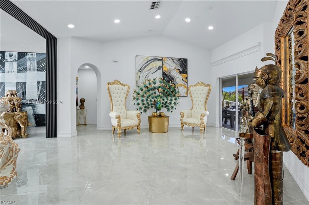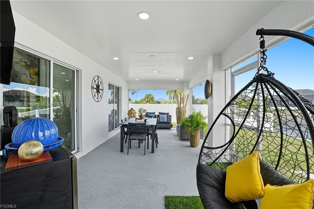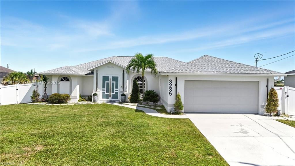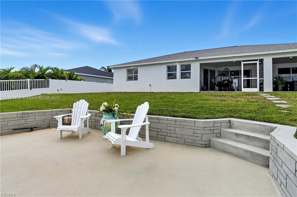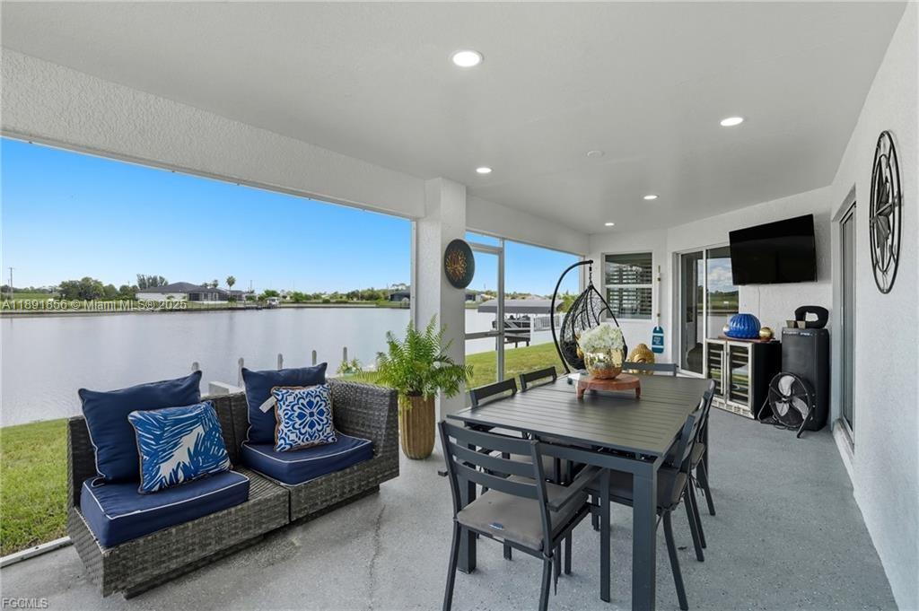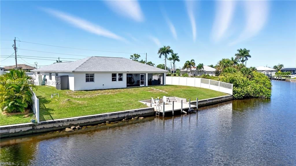 Welcome to your Cape Coral waterfront retreat! This beautifully 3bed/2 bath sits on a saltwater canal with direct Gulf access. Open-concept design, high ceilings, natural light, and elegant finishes, Stainless steel appliances, granite countertops, and a spacious island perfect for entertaining. The master suite features a walk-in closet and a spa-inspired bathroom. Outdoor living is a highlight to enjoy water sports. Enjoy the covered lanai. Ample backyard for adding a pool or customizing your waterfront oasis. Furnished and move-in ready, ideal for Airbnb or seasonal rentals. Extra room for exercise or studio in the garage. Located in the desirable NW Cape Coral. Minutes from beaches, dining, and shopping. NEW ROOF 2023, 2021 fence. Music production and media equipment do not convey.