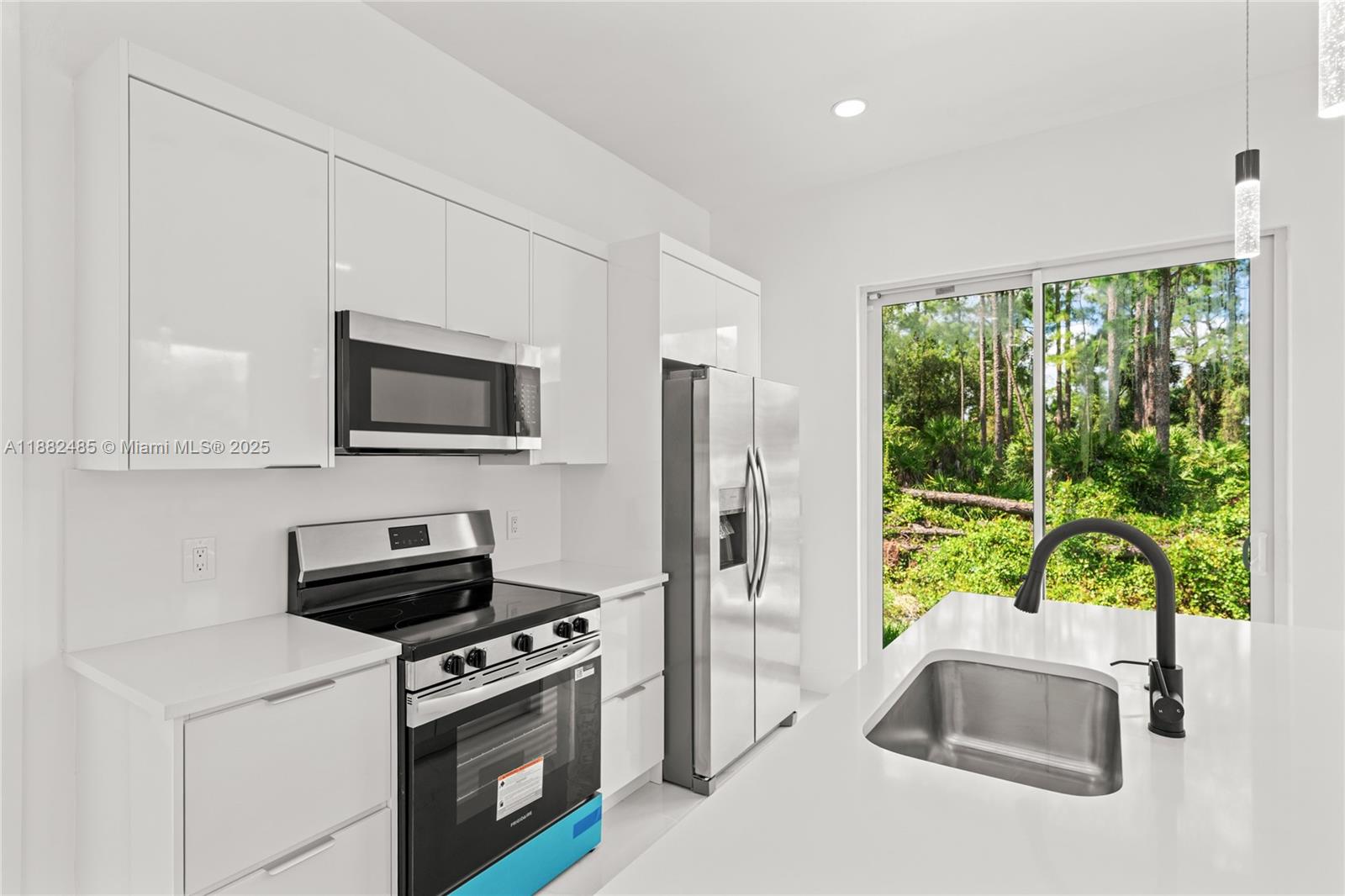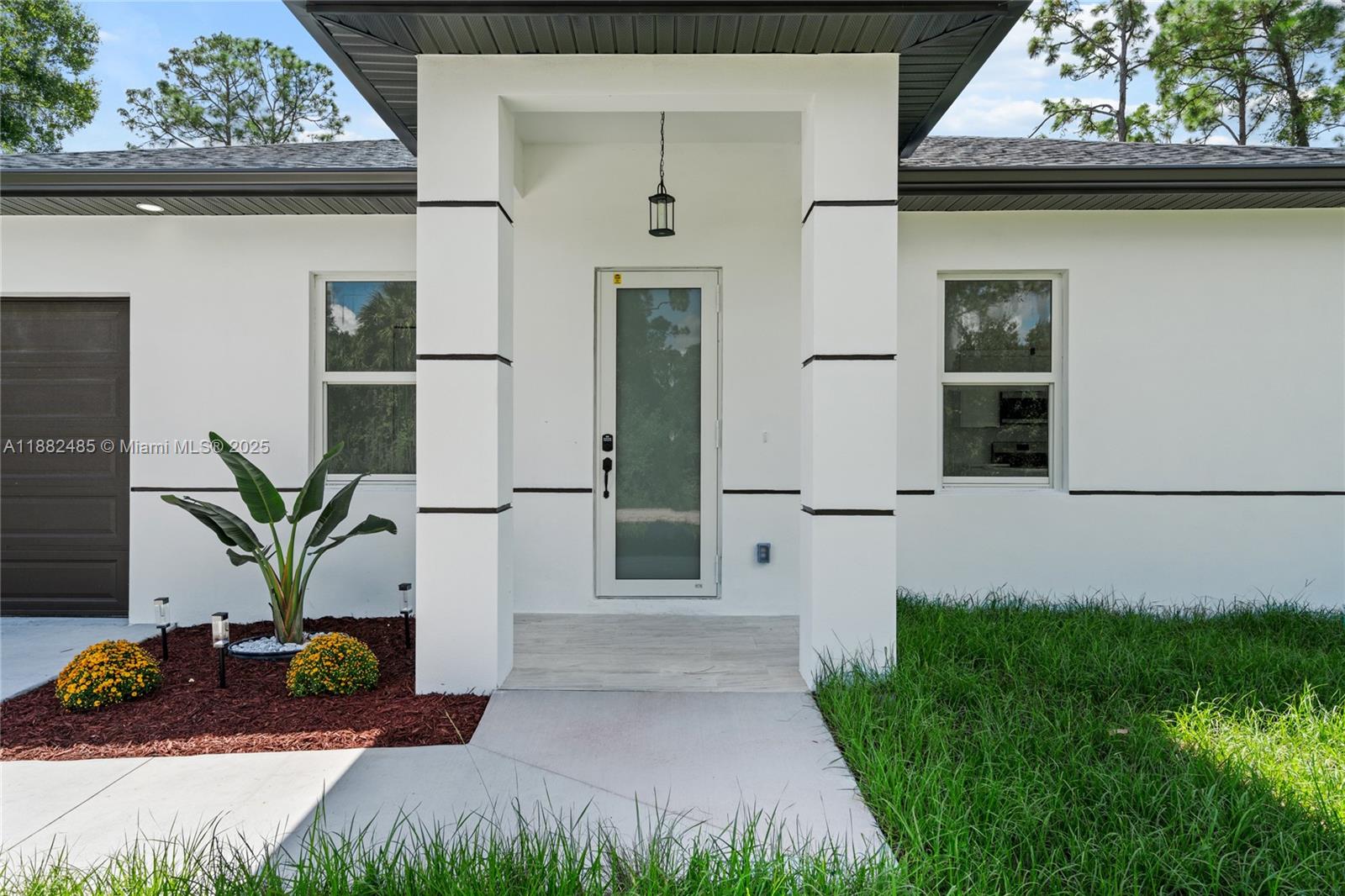Come and visit this new construction in Lehigh Acres. Beautiful brand new home featuring impact windows and doors, elegant glass shower doors, modern ceiling fans with lights, and high ceiling that create a spacious and. bright atmosphere. The kitchen boats quartz countertops, sleek cabinetry, and a stylish open layout perfect for entertaining family and friends. Seller is offering $10,000 contribution towards closing costs. Don't miss this opportunity to own a move in ready new construction in a growing community.