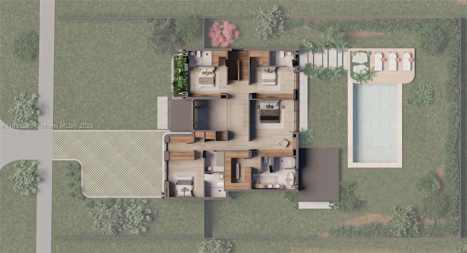 New construction two-story single-family home featuring 5 bedrooms and 6 bathrooms, offering 3,904 SF of living space and a two-car garage. Built with concrete block construction, 9' ceilings on both floors, and high-impact windows. The home features a gourmet Italian kitchen with Pompei Quartz countertops and backsplash, Sub-Zero/Wolf appliances, 24" x 48" porcelain tile flooring, and refined finishes throughout. All bedrooms include en-suite baths, highlighted by a luxurious primary suite. Enjoy a covered terrace, 44” Bull summer kitchen, outdoor shower, and a sleek 8.5’ x 31’ pool ideal for entertaining. Conveniently located minutes from Coral Gables, Coconut Grove, Brickell, and major highways.
