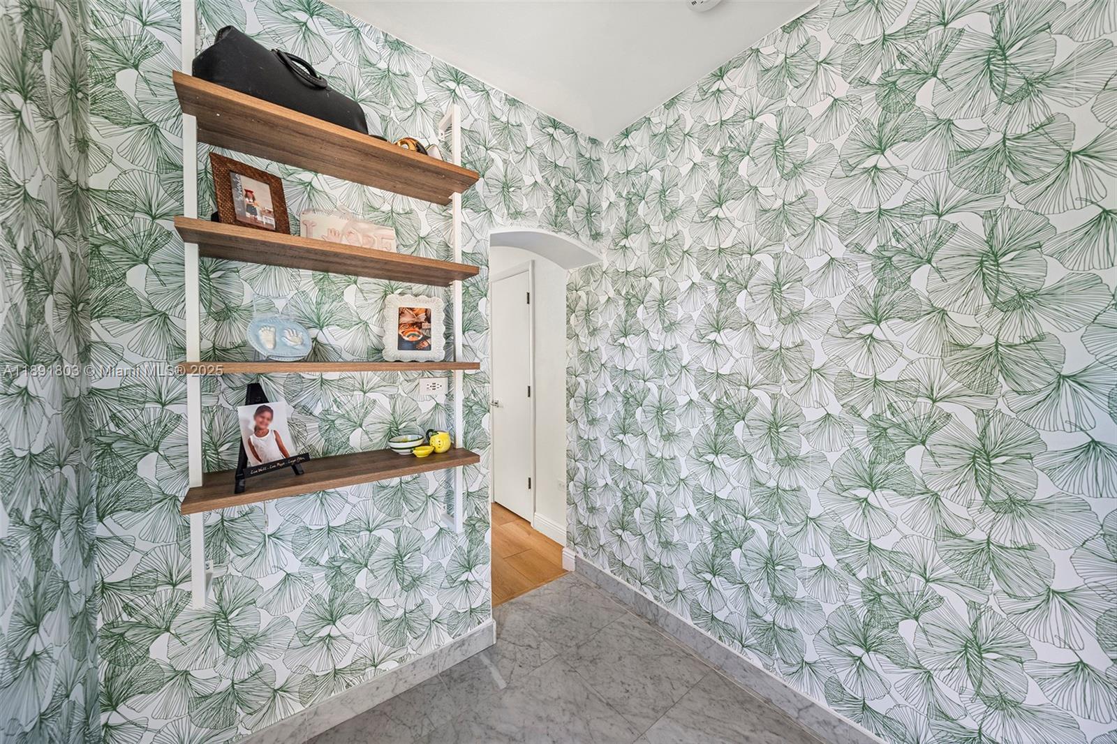 Impeccably renovated, this home in Miami Beach nestled amongst palm trees and 20-ft clusia hedges on prestigious North Bay Road, was designed in the Modern Deco style. This property features a massive living room with a bar, a master suite with 15-ft ceilings, a loft, electric shades, walk-in closets, and a spa bathroom with a steam shower, & a chef's kitchen with a Bertazzoni stove, Sub-Zero fridge, & marble counters. This 6 bed, 6.5 bath house includes walnut hardwood floors, impact windows, a smart home system, a formal dining room, & a separate guest suite. The backyard boasts a heated, mosaic 40-ft long pool, a covered outdoor kitchen and dining area, plus a spacious lawn. This home comes with parking for 10 cars in total. This private oasis is a must-see!