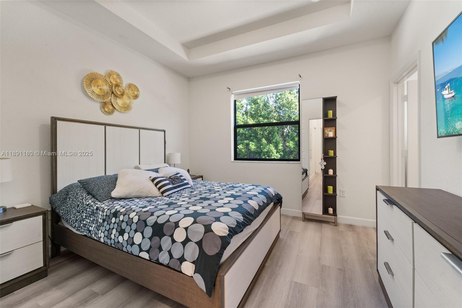 Stunning 3-bed, 3-bath townhouse in the desirable gated community of Aquabella, Hialeah! This home features a bedroom and bath on the first floor, an open-concept layout with a spacious kitchen, upgraded wood cabinets, stainless steel appliances, and pantry. Tile flooring downstairs and elegant laminated floors upstairs. The large primary suite offers a walk-in closet and private en-suite bath. Enjoy a landscaped patio perfect for entertaining. Resort-style amenities include 2 clubhouses, pools, gym, playground, and green spaces. Conveniently located near major highways and top schools. Property is currently rented through March 2026—great investment opportunity! HOA requires at least one applicant with a 680+ credit score. Sellers offer a $2k credit towards closing costs to the buyers!!