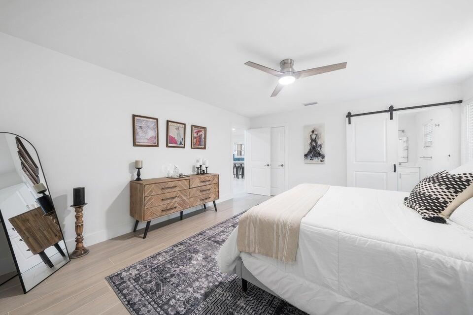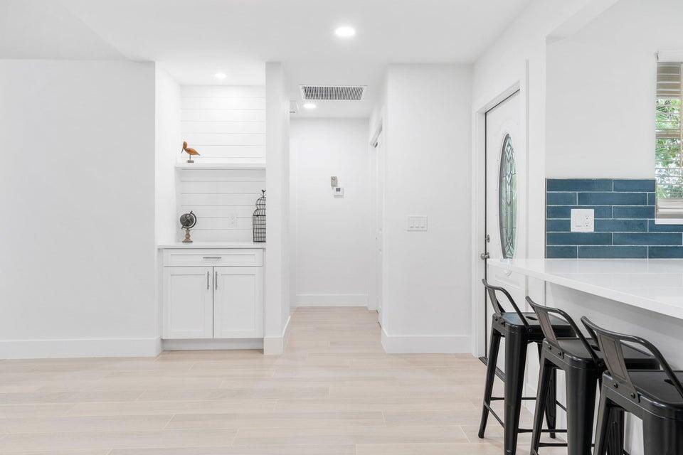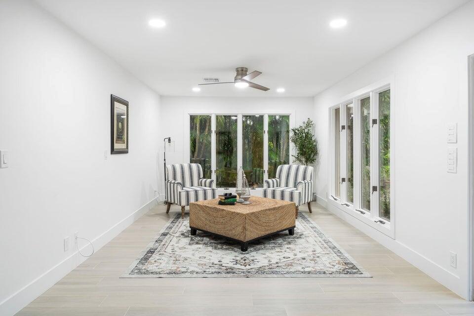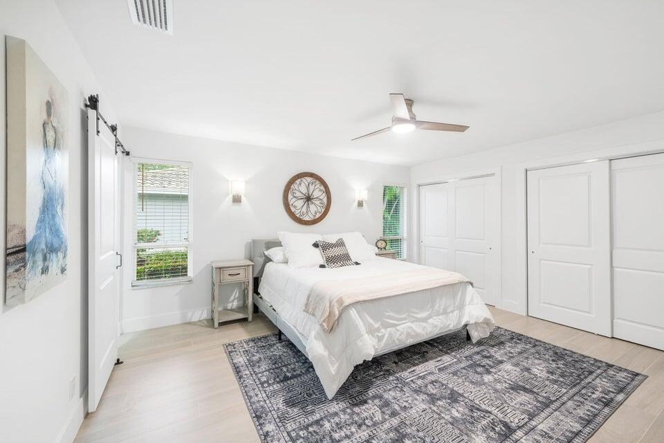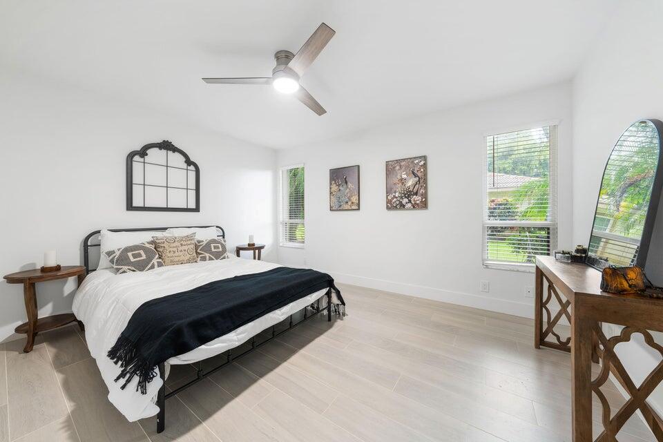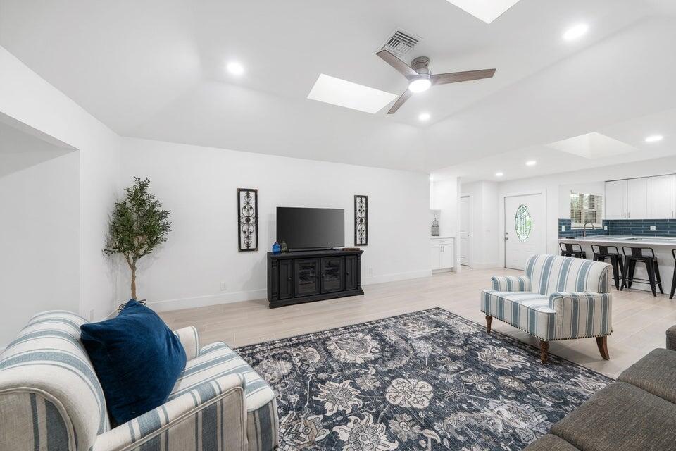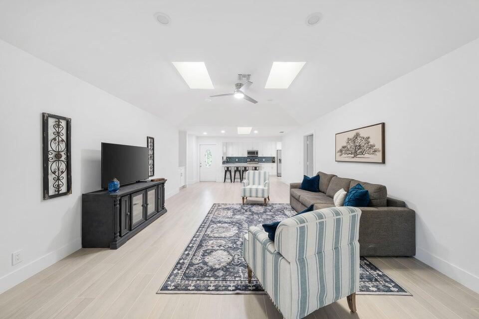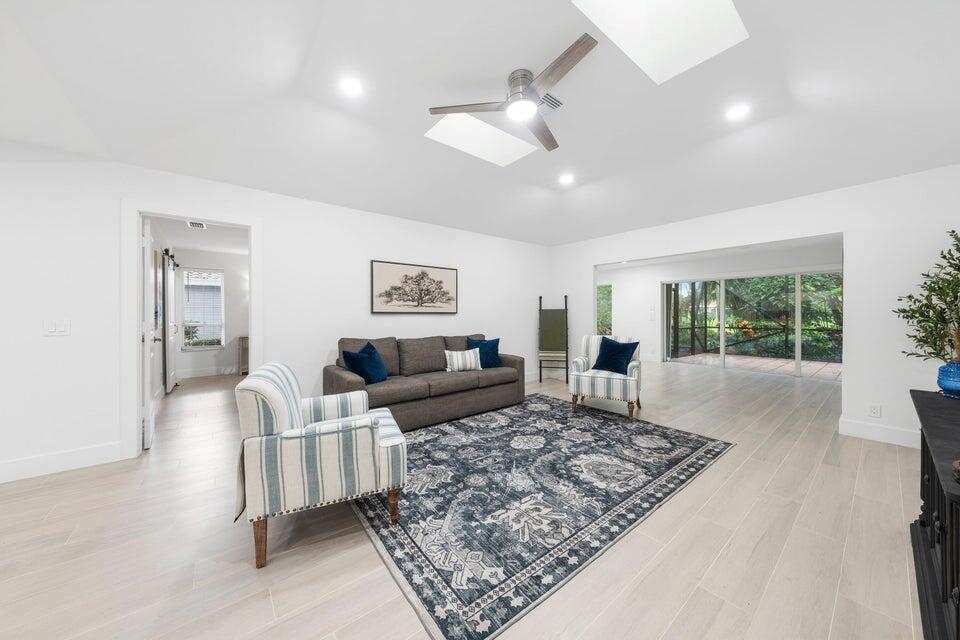 Priced to sell fast! Country Club living at its finest! Discover your dream home in the exclusive Eastpoint Country Club! This stunning 3-bedroom home has been fully renovated from top to bottom. Step into a designer kitchen featuring quartz countertops and brand-new appliances, perfect for your culinary adventures. You'll love the gorgeous new flooring and stylish lighting throughout, along with beautifully redone bathrooms. The home boasts abundant natural light, adding warmth and vibrancy to each room. An extra-large garage provides plenty of storage, and accordion shutters offer peace of mind. Roof has 14+ years of life left per 4 pt inspection, replaced in 2008. 2023 HVAC. Don't miss out on this gem!