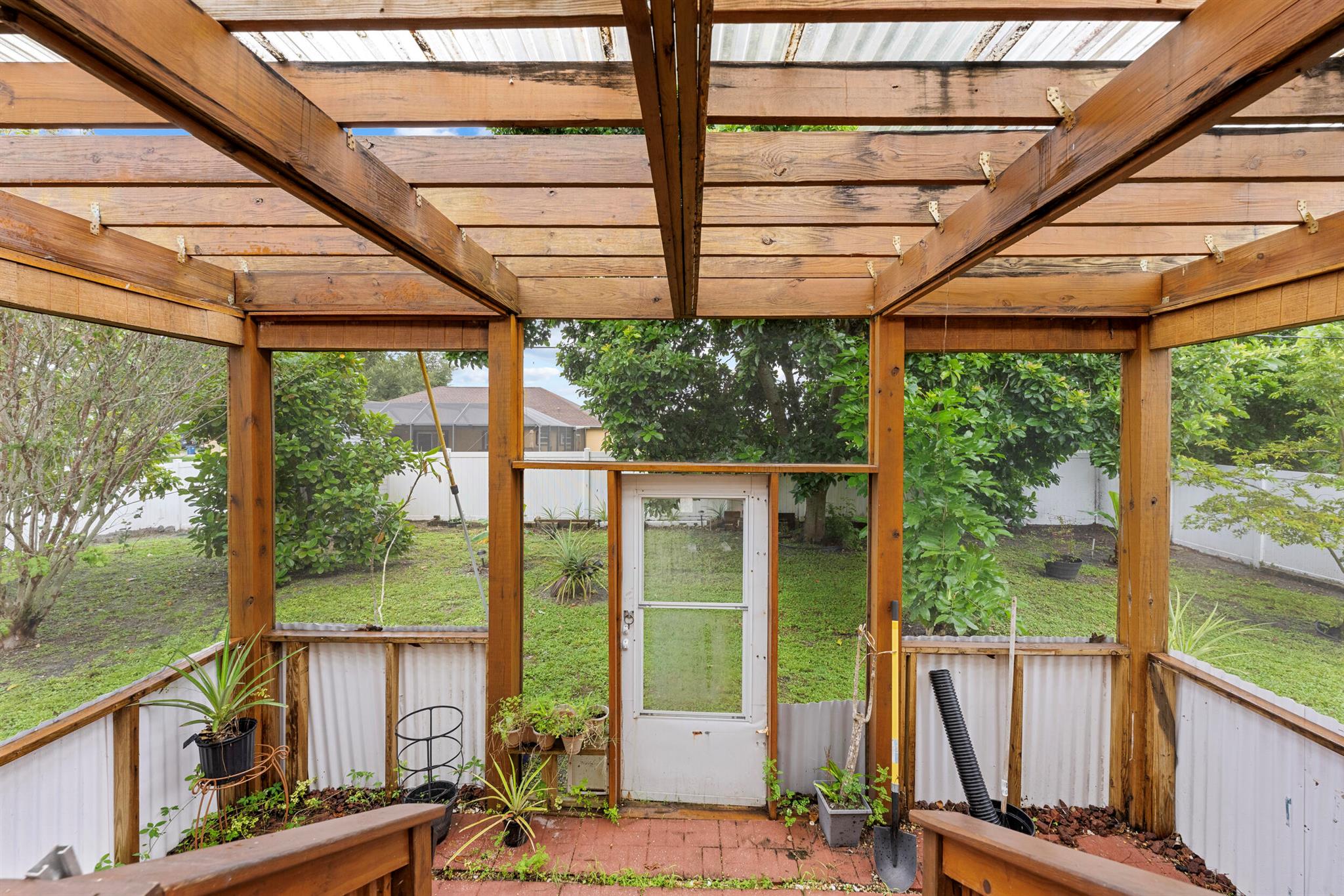 Welcome to 1651 Alpha St NE, Palm Bay, FL 32907 -- a beautifully updated 3-bedroom, 2-bath home featuring an open floor plan with high ceilings throughout. Enjoy peace of mind with a new roof (2023), AC (2019), and newer water heater. The stunning renovated kitchen boasts granite countertops, modern cabinetry, and flows seamlessly into spacious living areas with laminate and tile flooring. The primary suite offers direct access to the backyard, a large bathroom with a tub and separate shower, and his-and-hers closets. Step outside to a gorgeous patio perfect for entertaining, surrounded by lush fruit trees including pear, ackee, banana, pineapple, jackfruit, lychee, orange, mango, and coconut--your own tropical paradise!