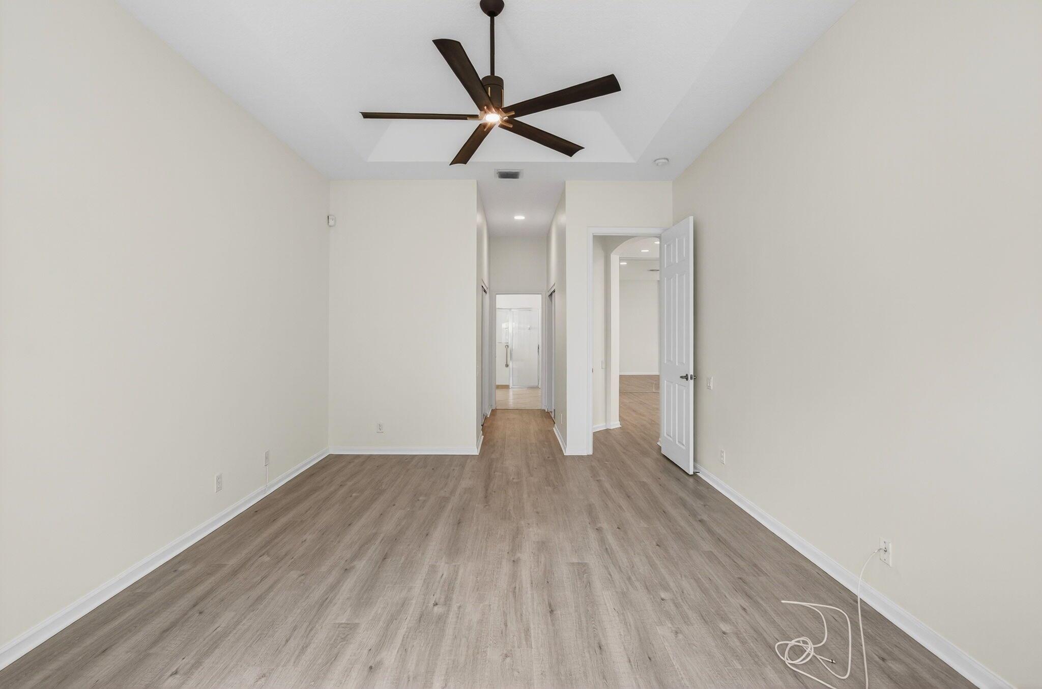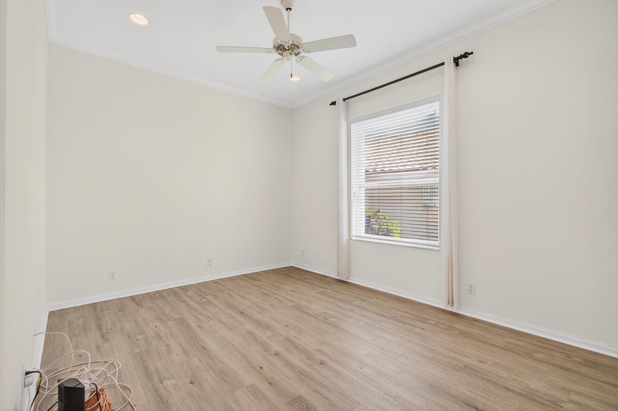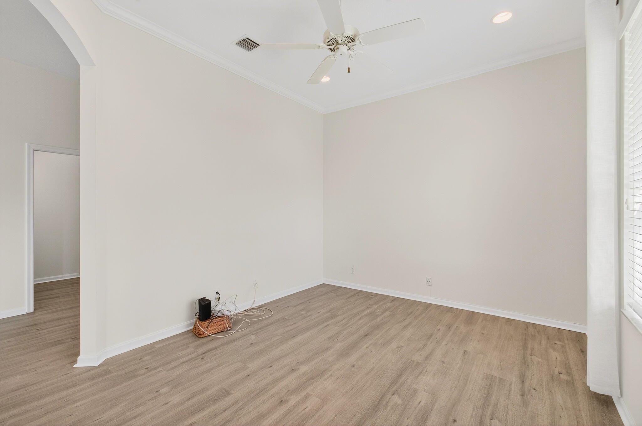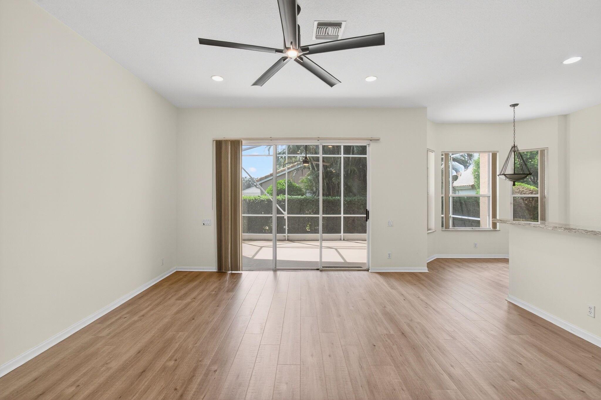 This Granville model in Cascades has been beautifully transformed with BRAND NEW Nature Tek laminate flooring installed throughout the home, offering a seamless and elegant look that enhances every room. With 2 bedrooms plus a den, 2 bathrooms, and over 2,000 square feet of living space, this residence sits on a larger lot with an extended side yard. Freshly painted in neutral Sherwin-Williams tones with wallpaper thoughtfully removed, the interiors are ready for your personal touch. The spacious kitchen offers white 42'' cabinetry, sleek granite countertops, stainless steel appliances--including an LG Stainless Steel refrigerator, a KitchenAide new dishwasher, and a brand new disposal. It opens to both formal and casual living areas, perfect for entertaining or relaxing.